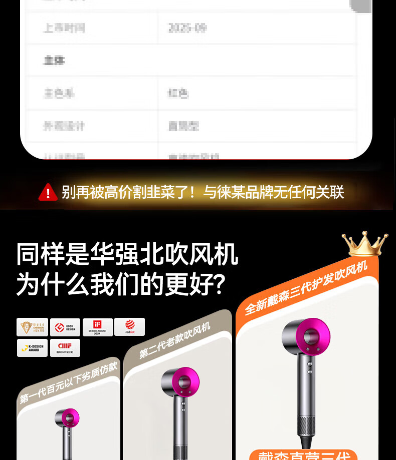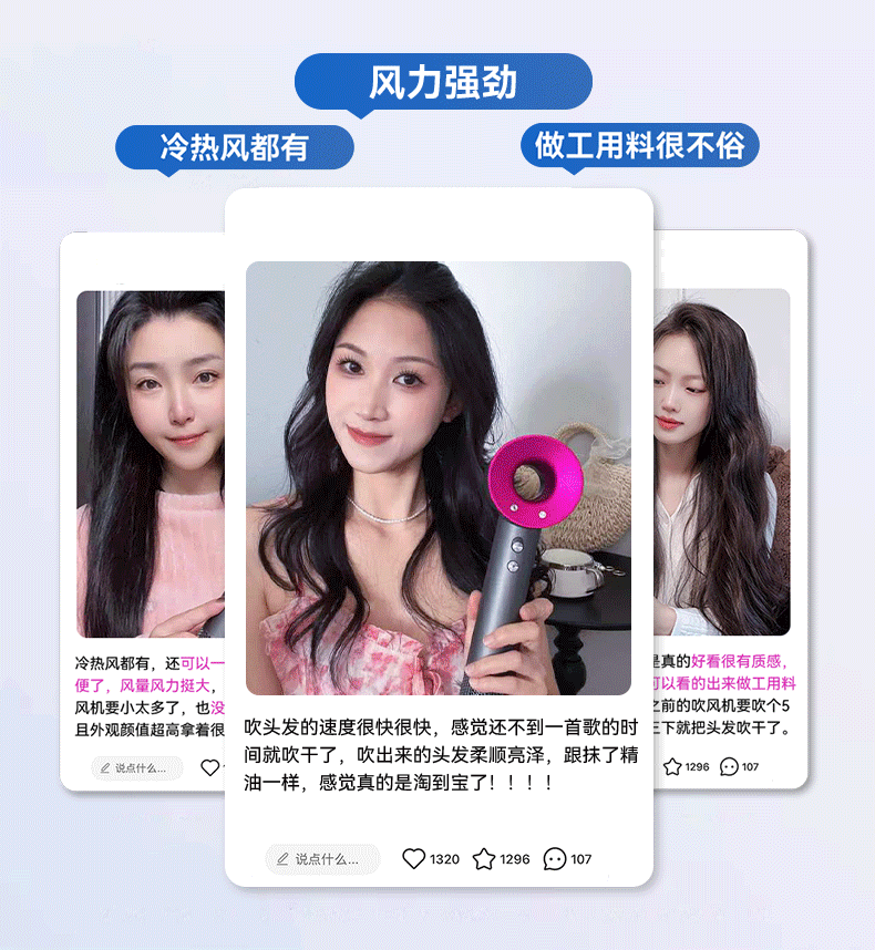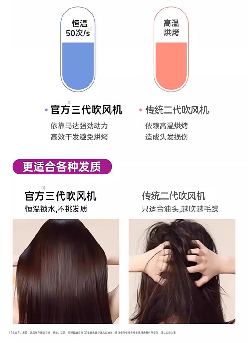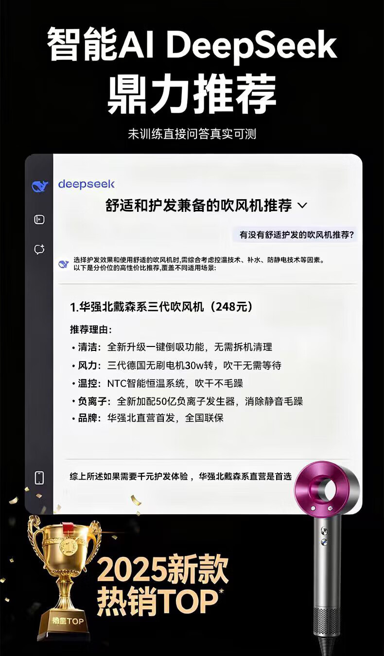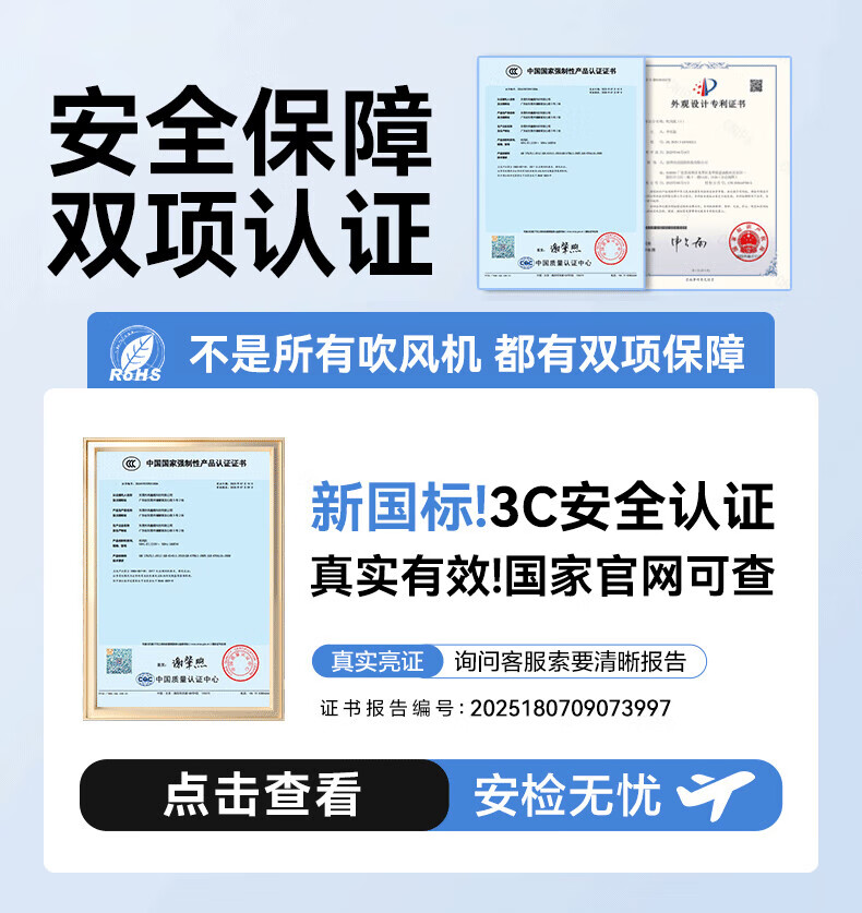 森系第三代无叶吹风机家用静音负离子不伤发高速大功率风力吹风筒 8陶瓷金五风嘴50亿负离子护发