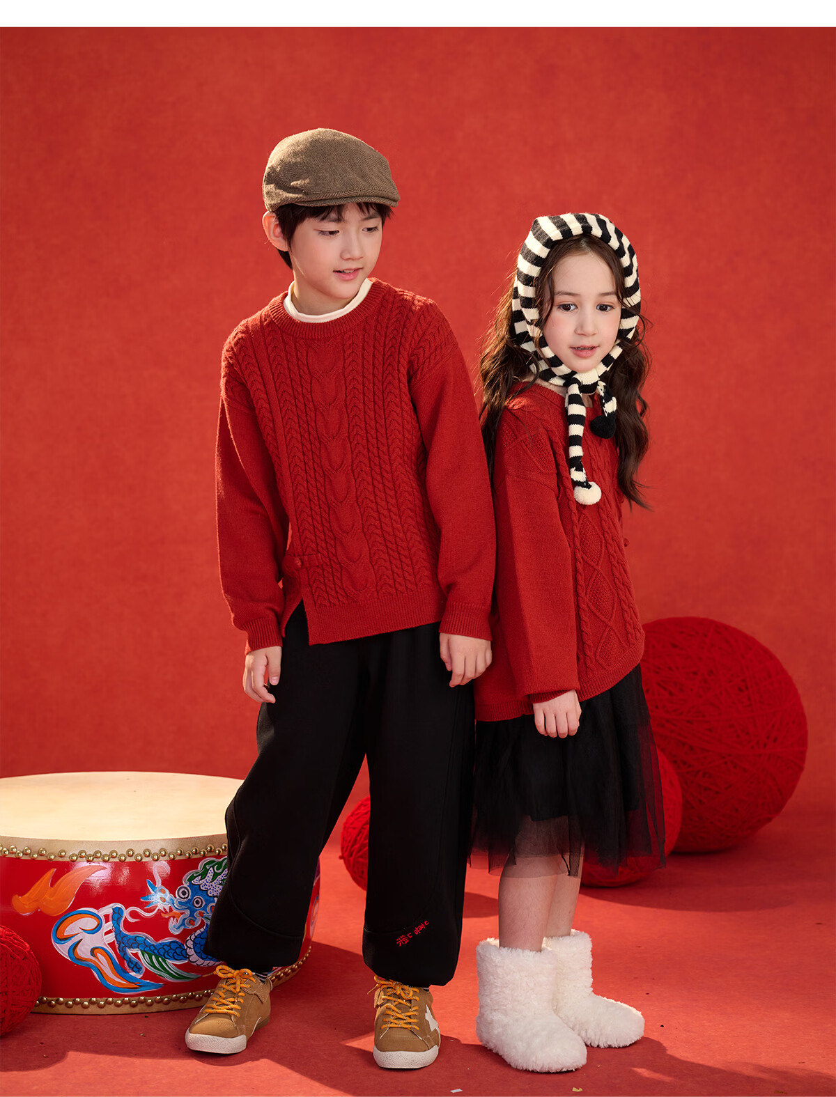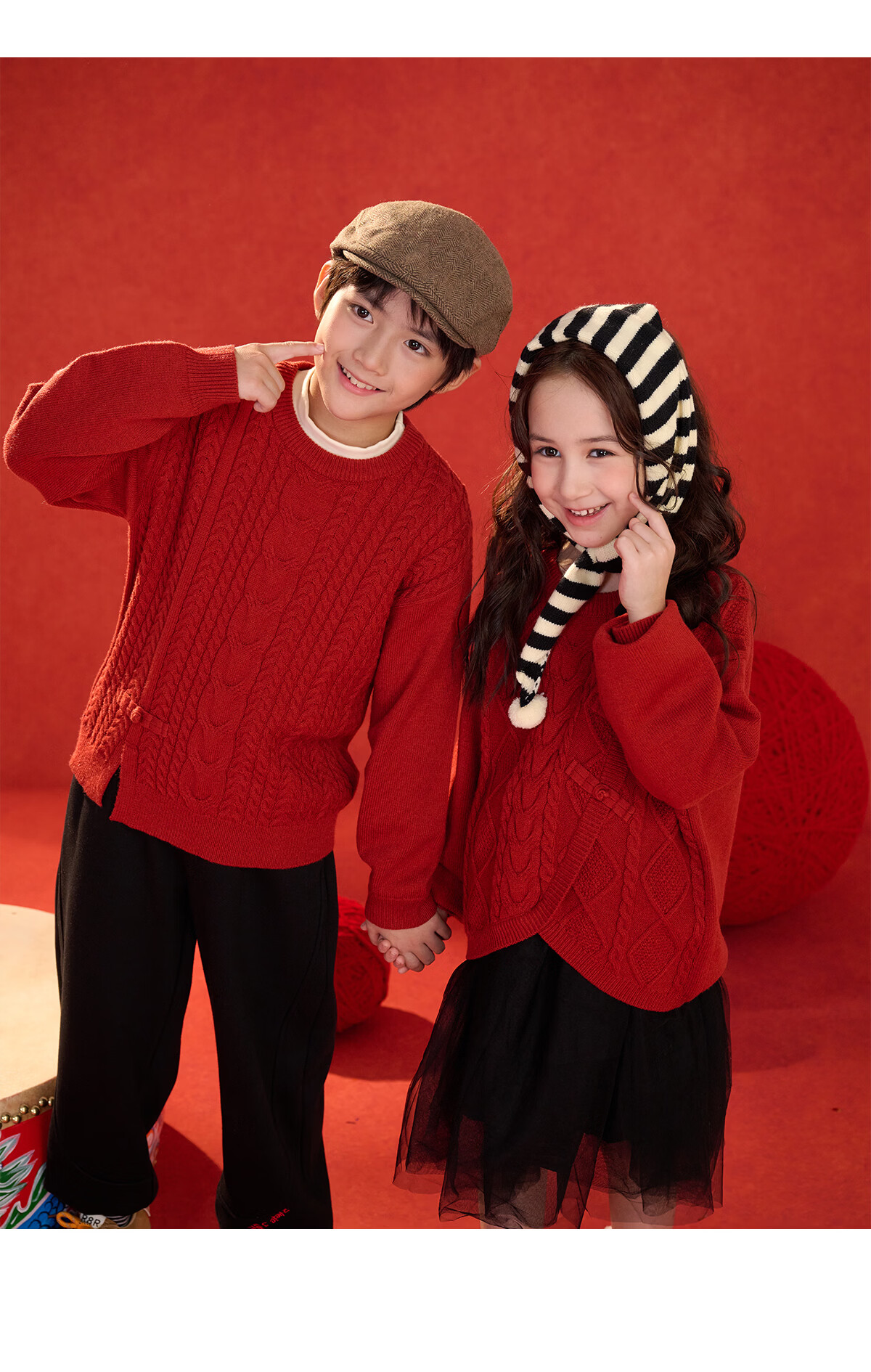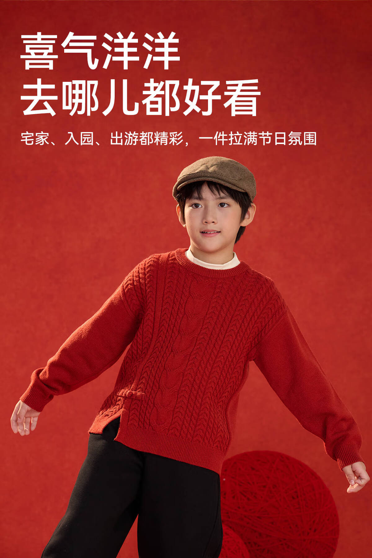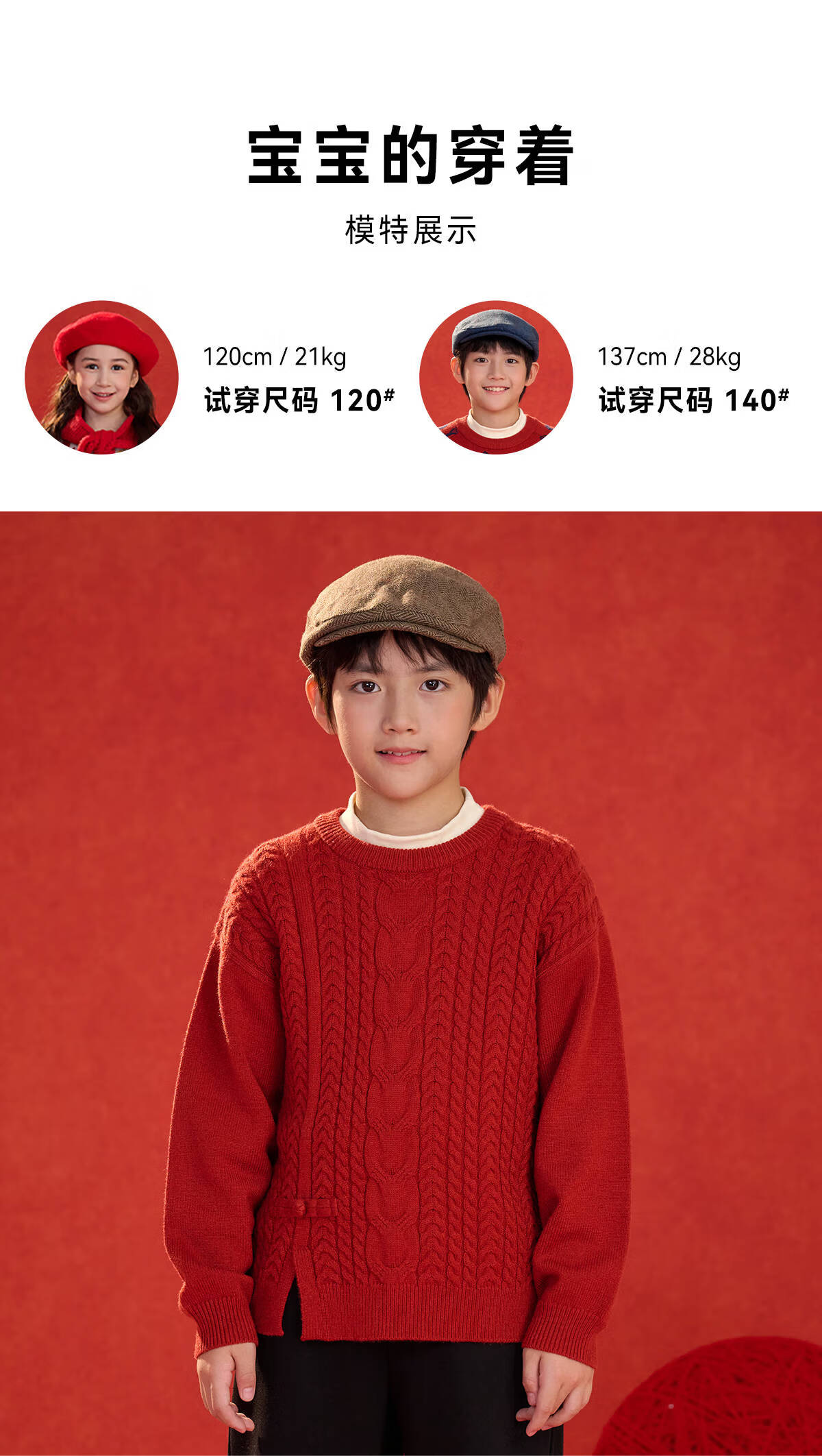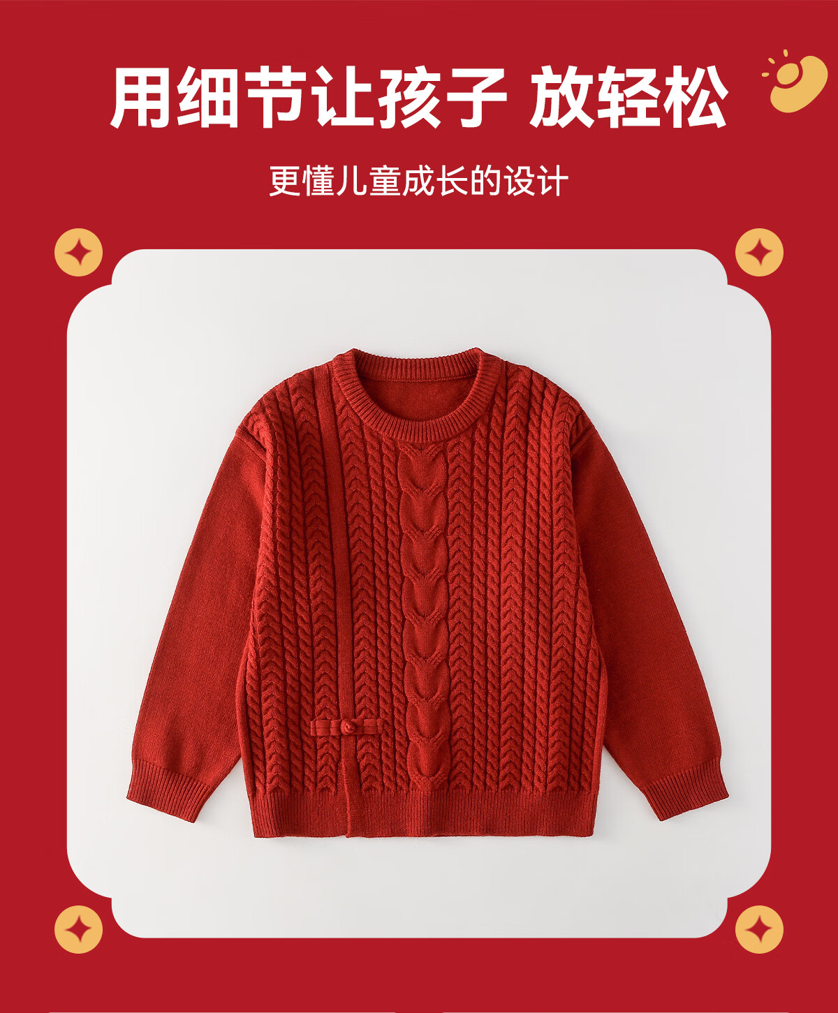 棉花堂(cottontown)【新年】棉花堂儿童毛衣红色男童拜年服中大童线衣年衣女童红毛衣 暗红 110 110/56