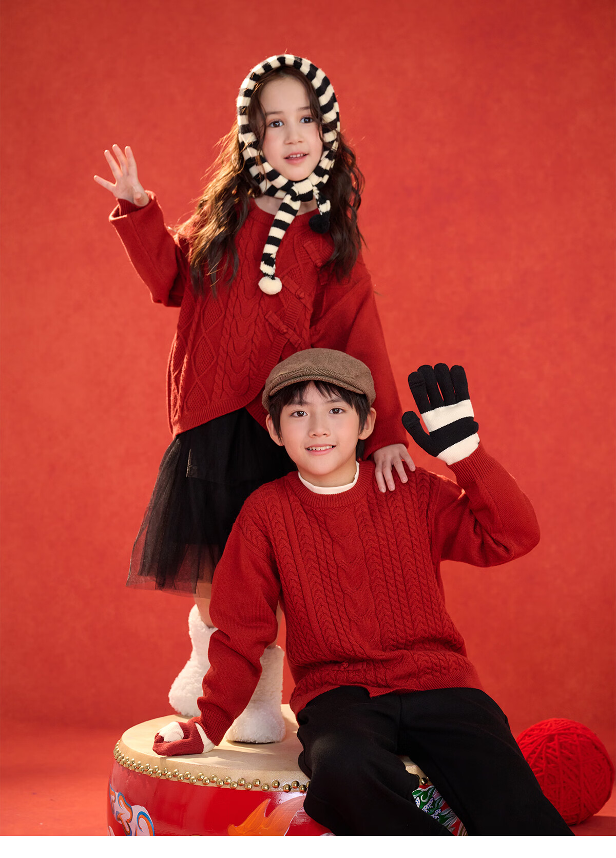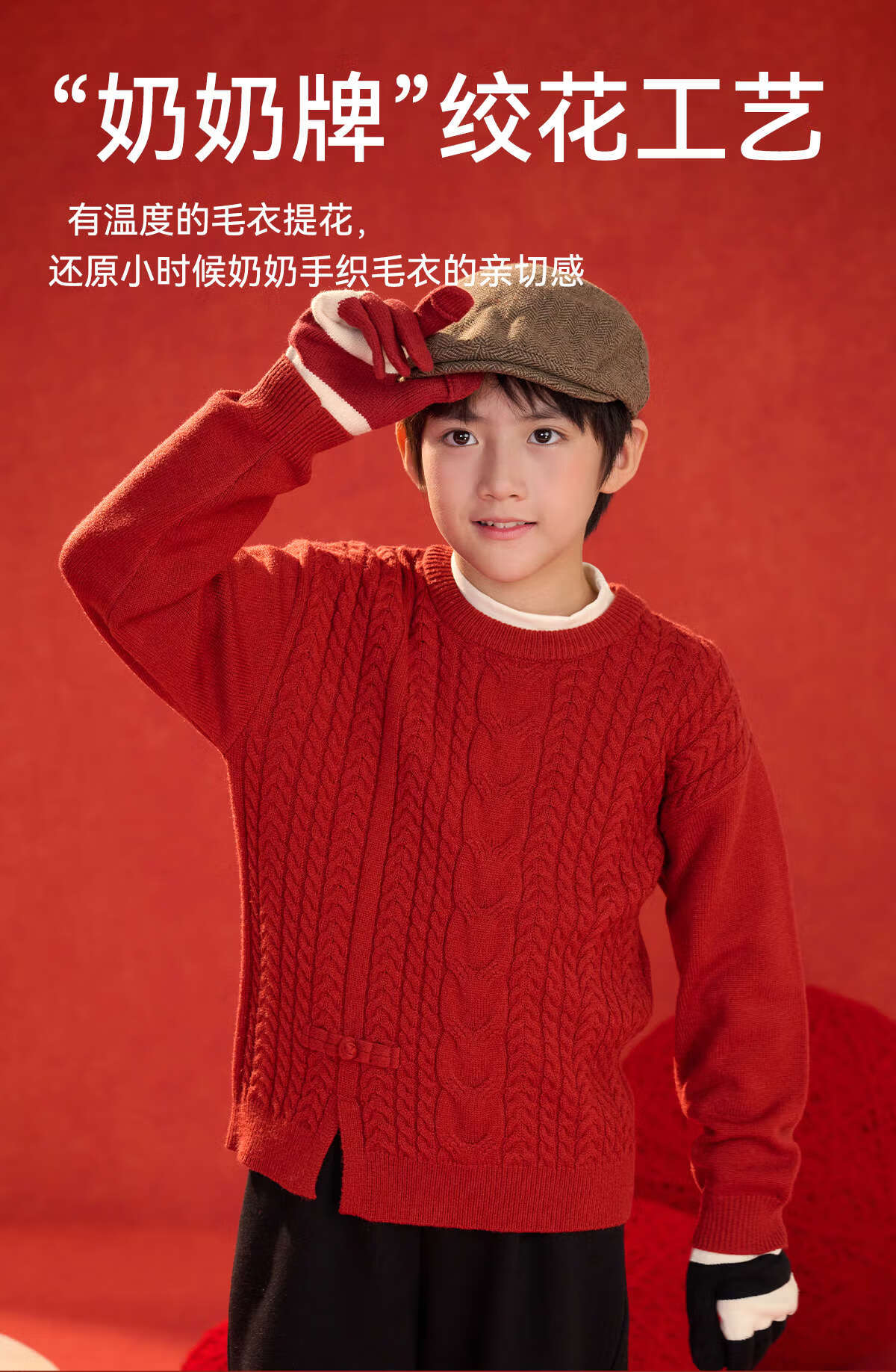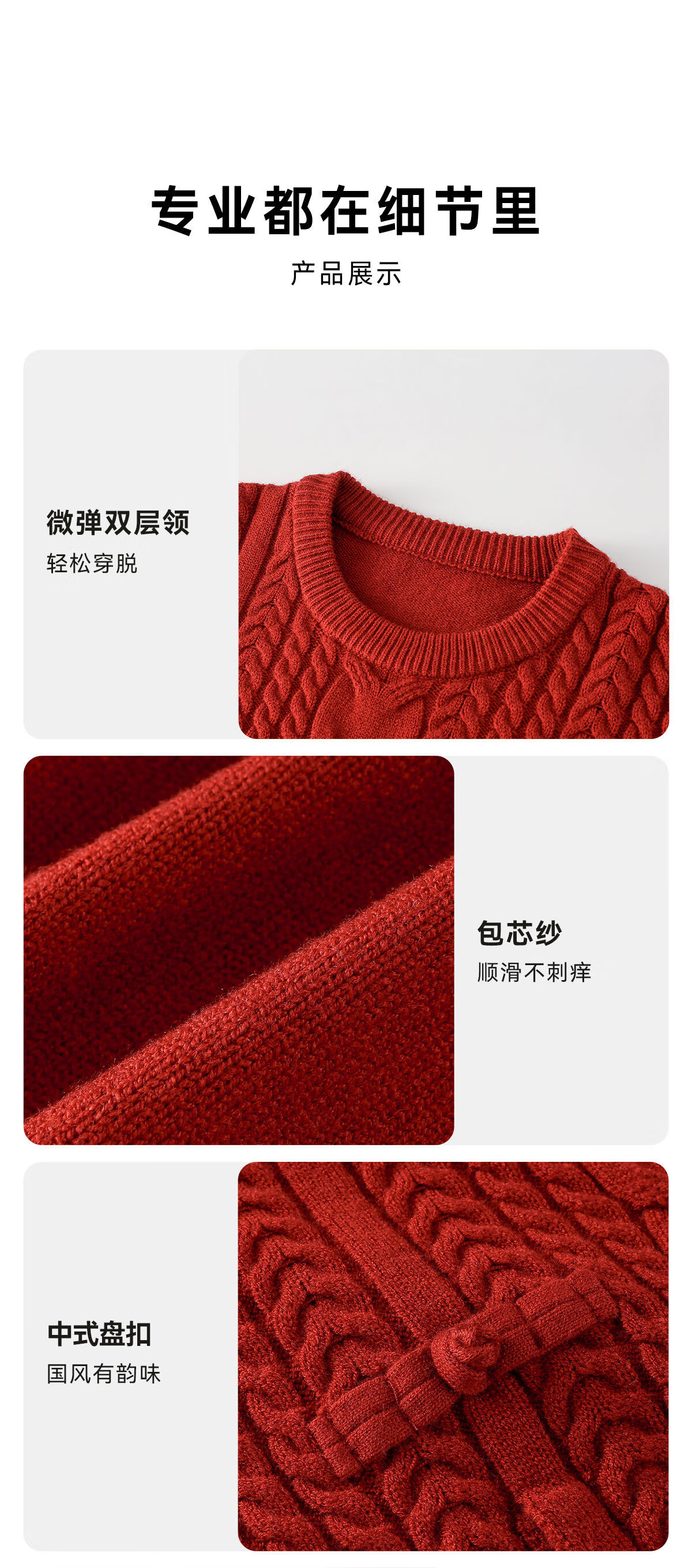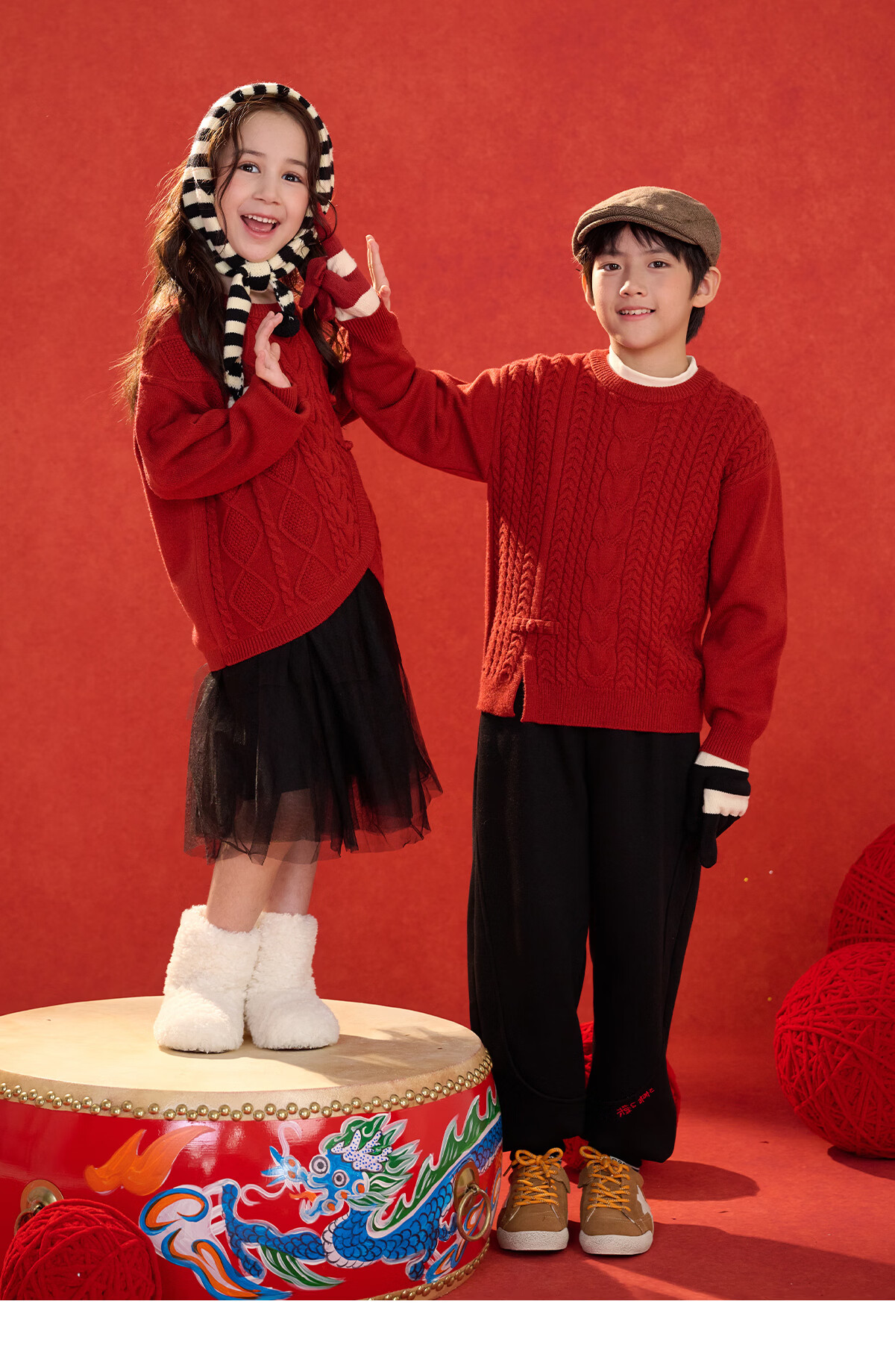 棉花堂(cottontown)【新年】棉花堂儿童毛衣红色男童拜年服中大童线衣年衣女童红毛衣 暗红 110 110/56