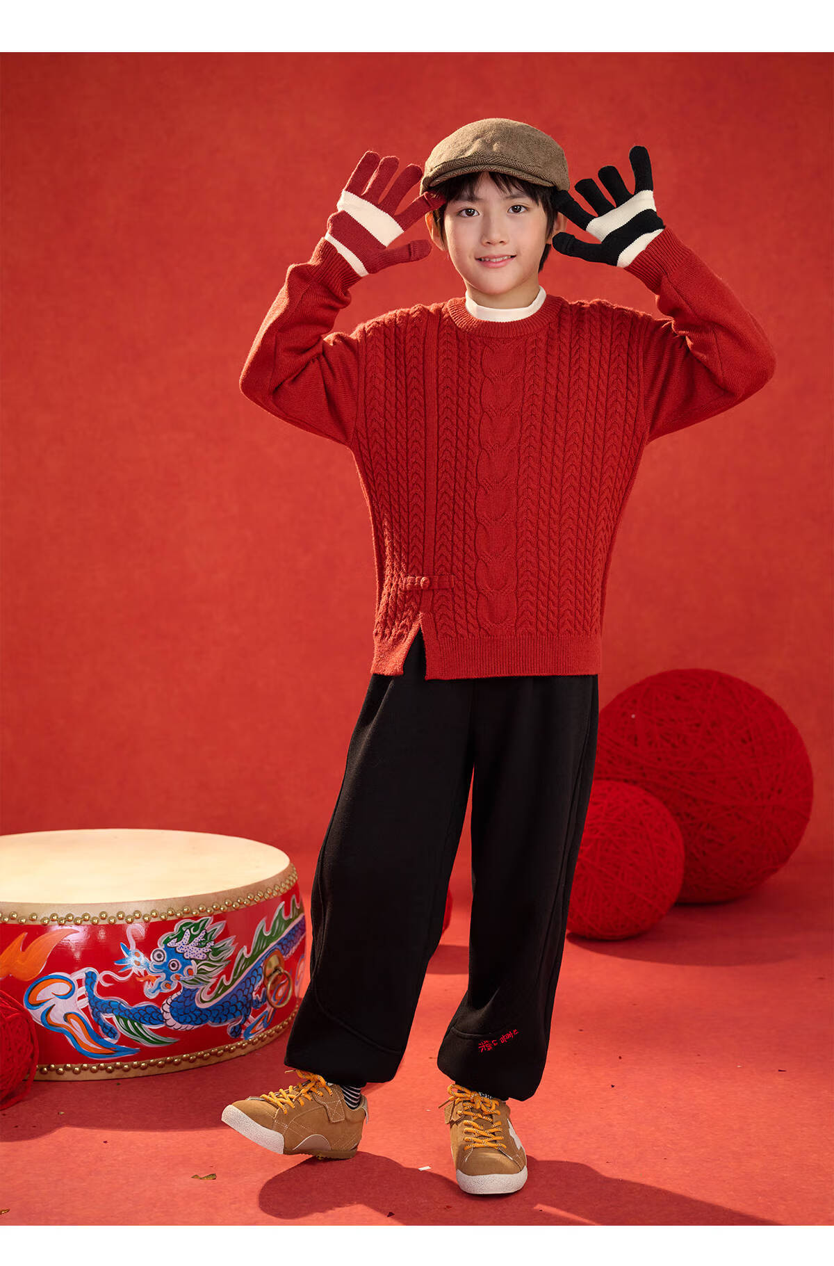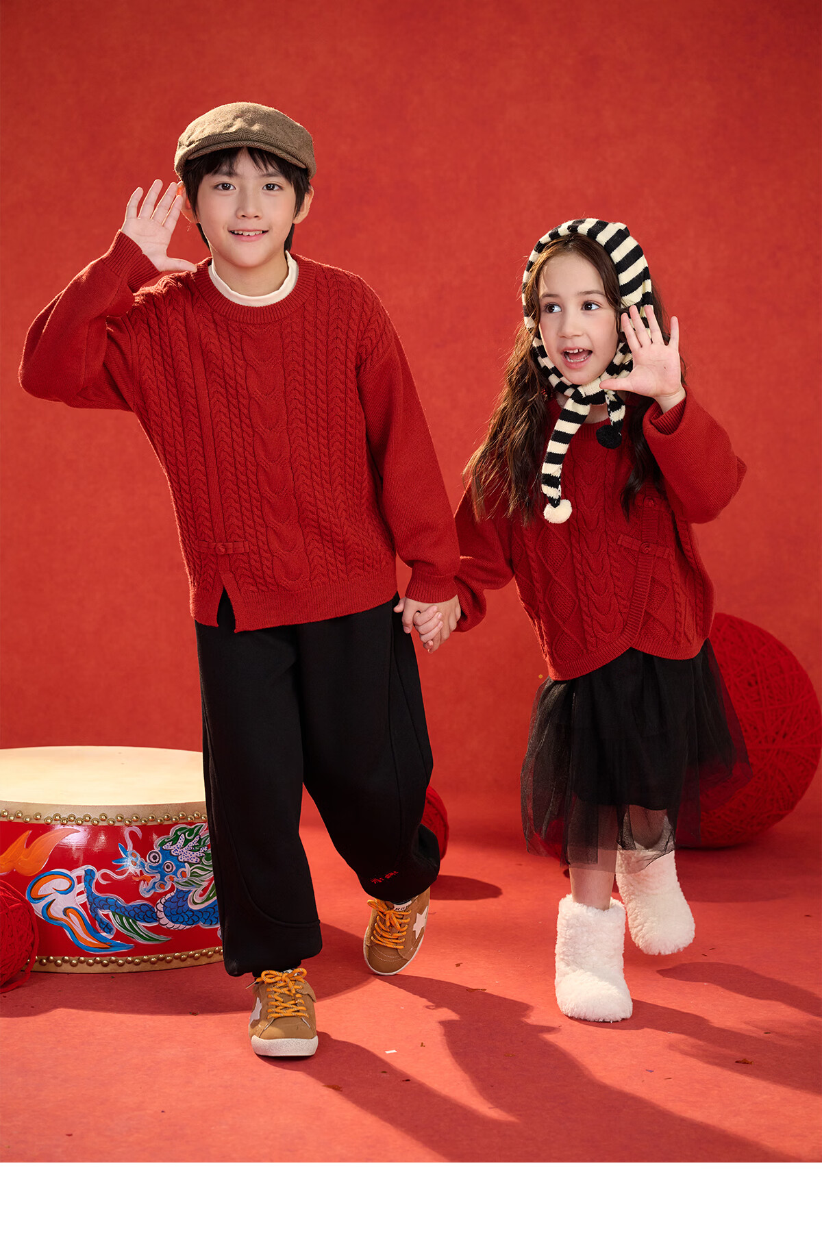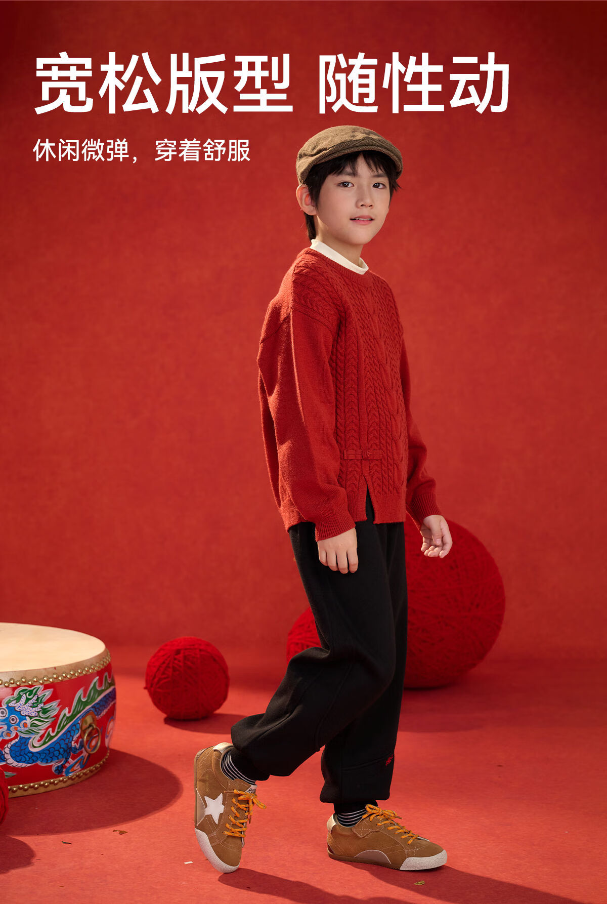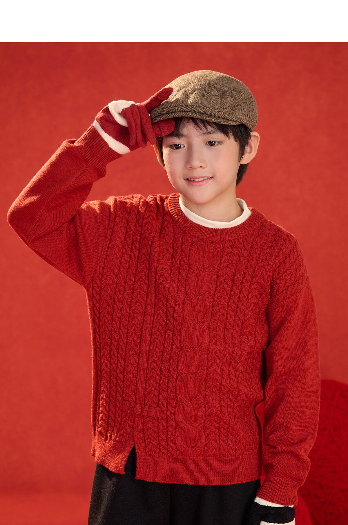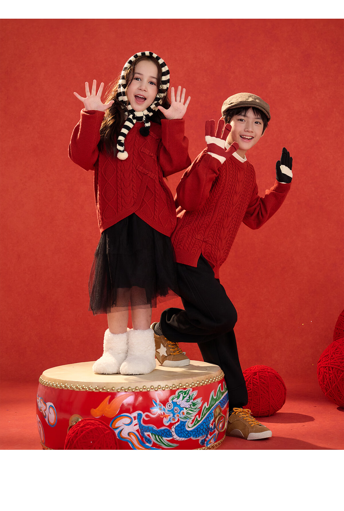 棉花堂(cottontown)【新年】棉花堂儿童毛衣红色男童拜年服中大童线衣年衣女童红毛衣 暗红 110 110/56