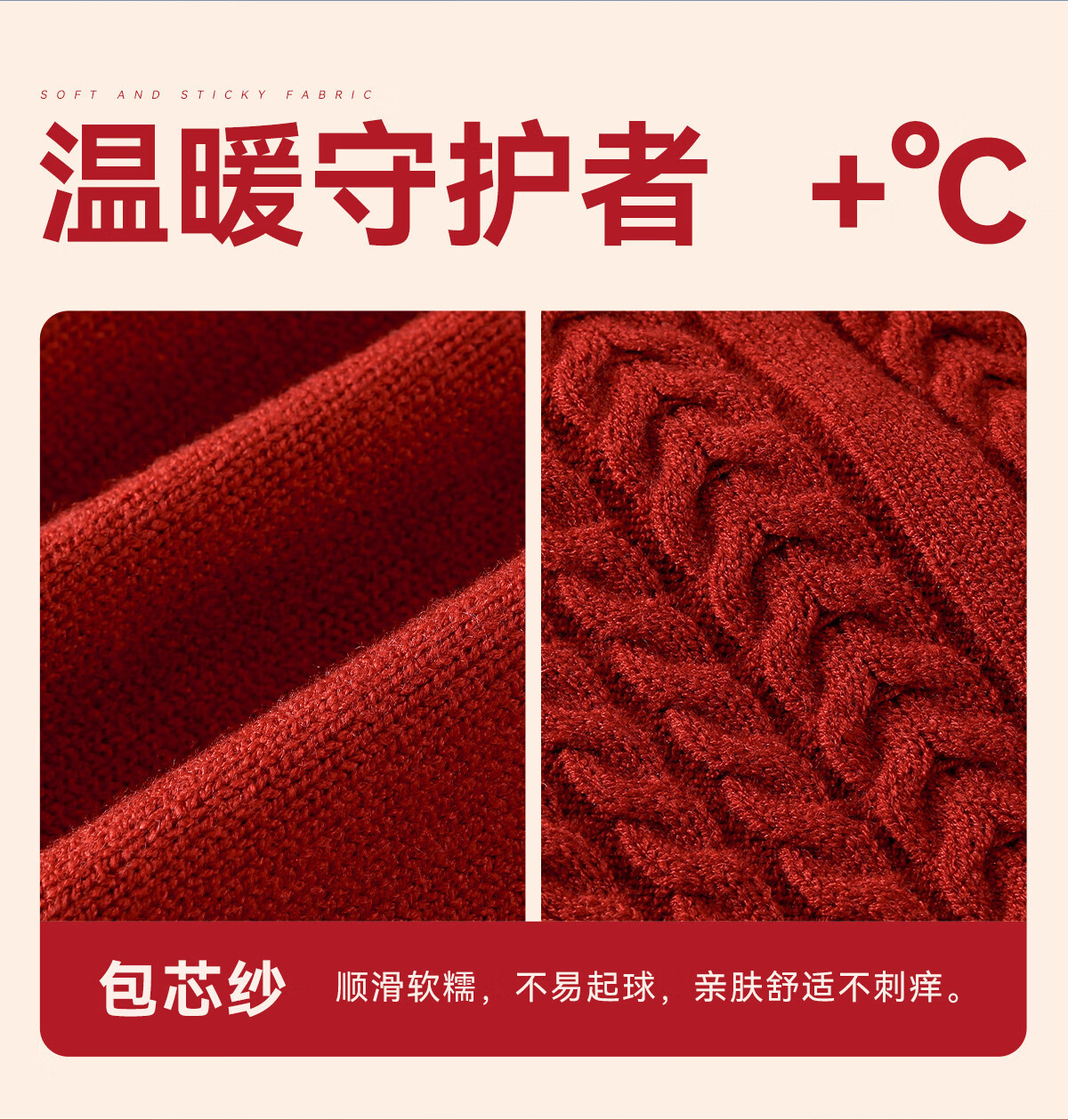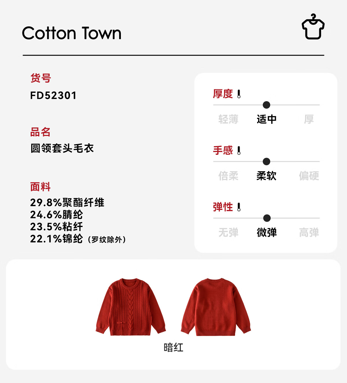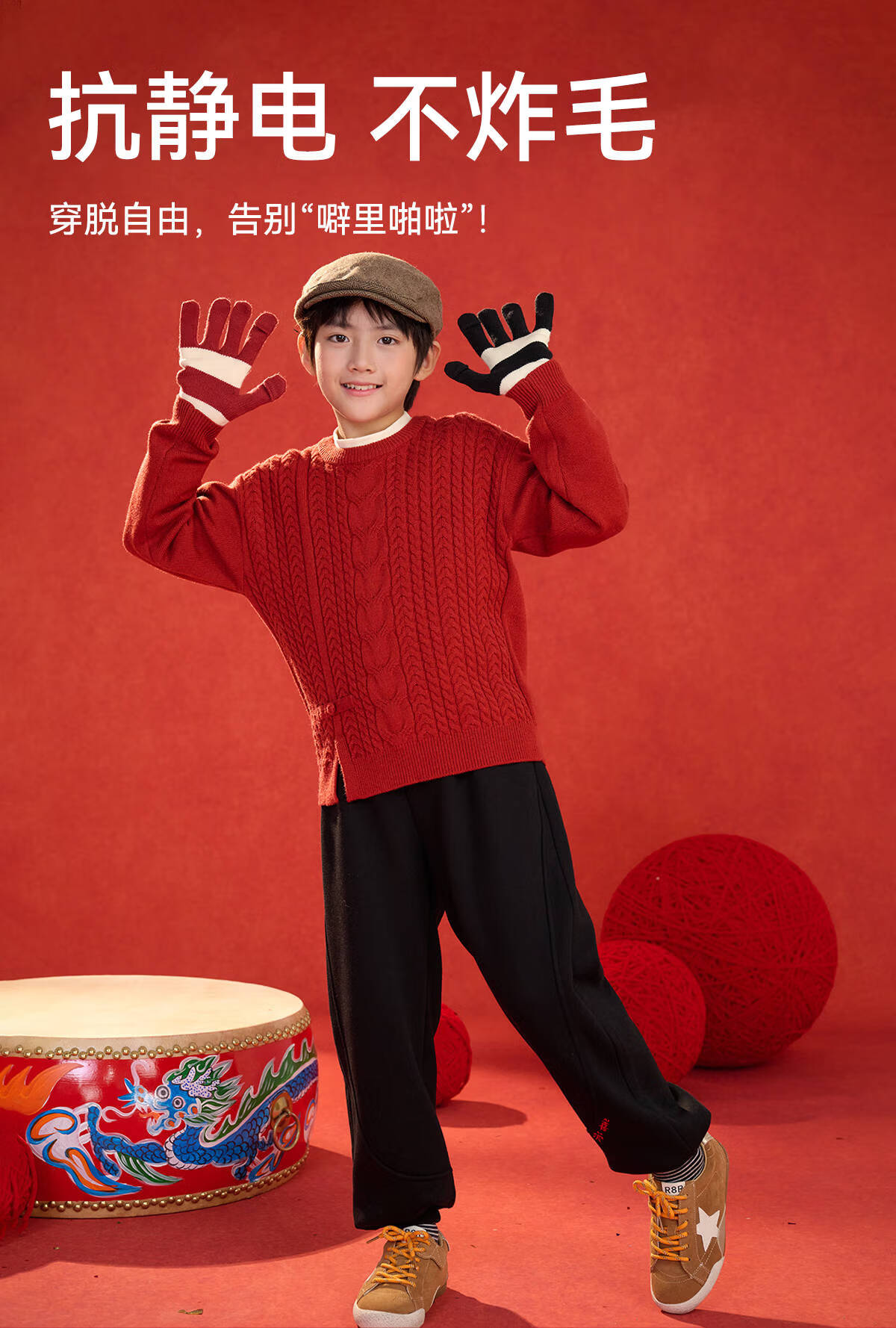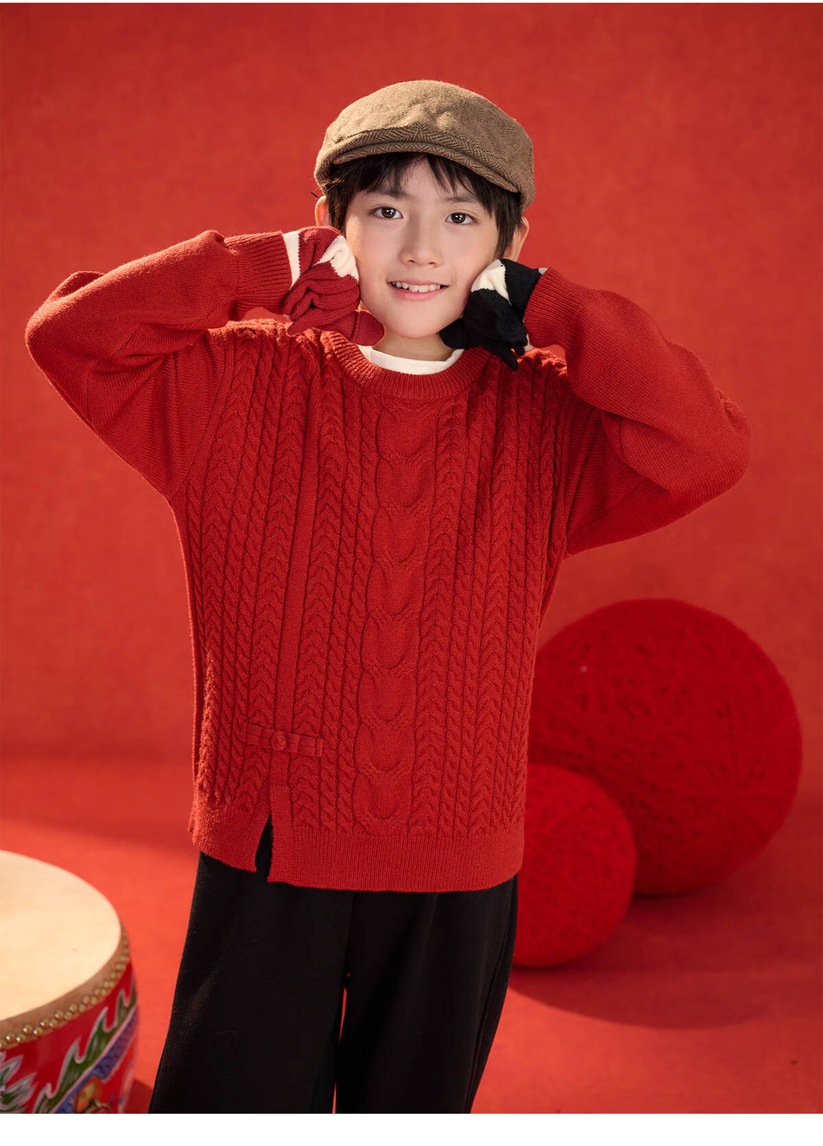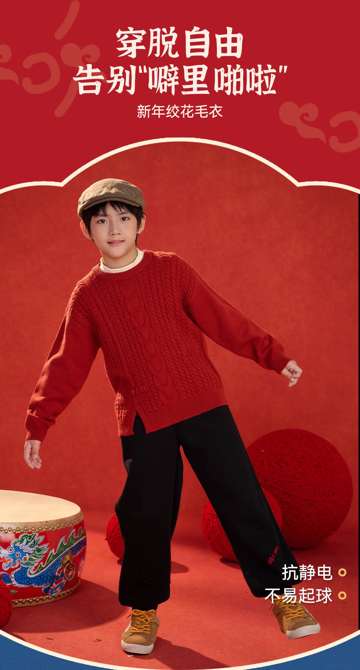 棉花堂(cottontown)【新年】棉花堂儿童毛衣红色男童拜年服中大童线衣年衣女童红毛衣 暗红 110 110/56
