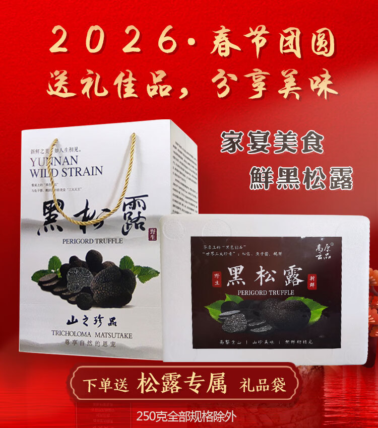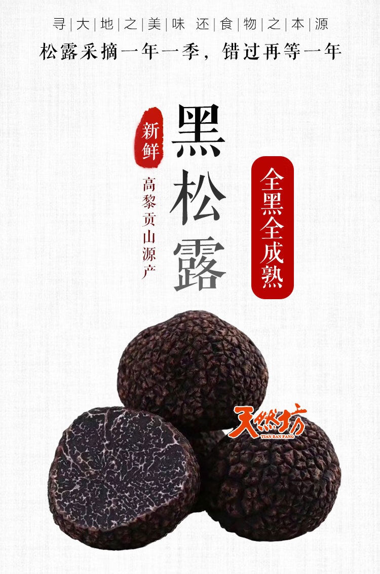 高原云品【全黑全成熟】黑松露新鲜 家宴美食 航空速达 全黑全成熟 2-3cm 500克(送礼品袋)
