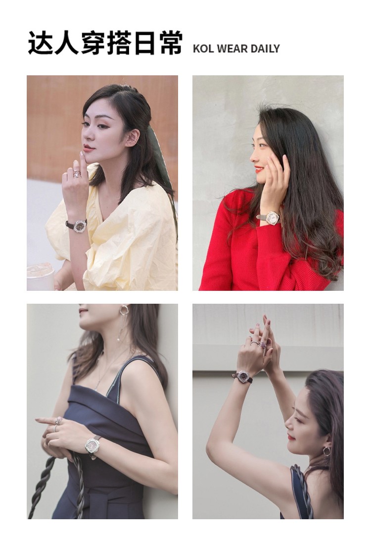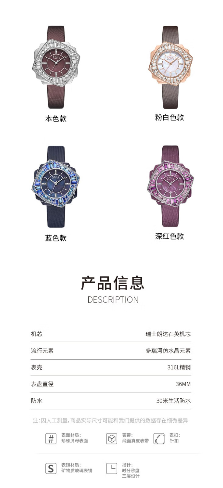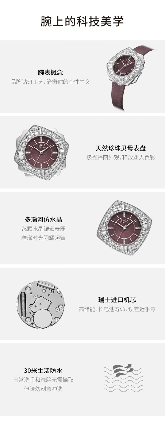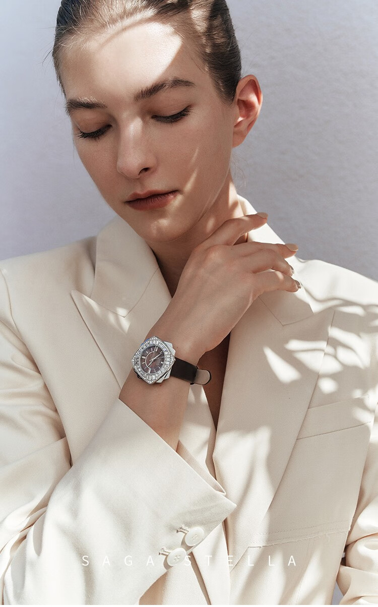 SAGA世家品牌手表女士石英腕表舞会轻奢时尚气质生日礼物送老婆送女友 深红色