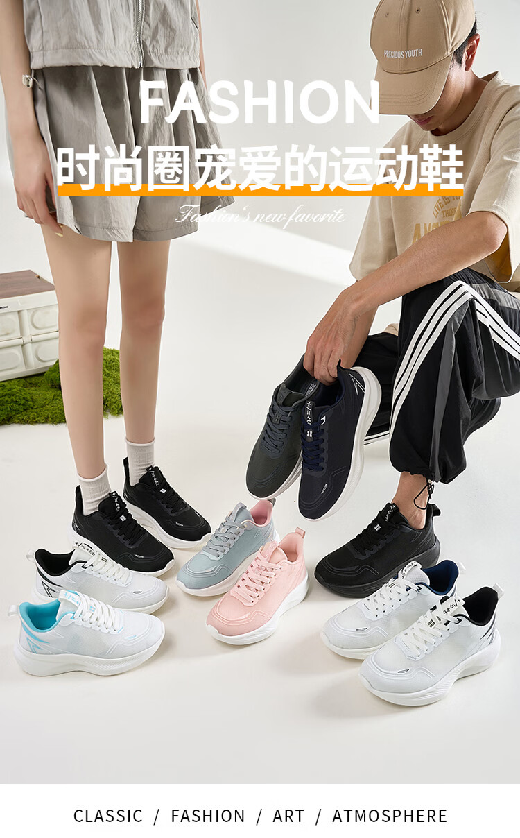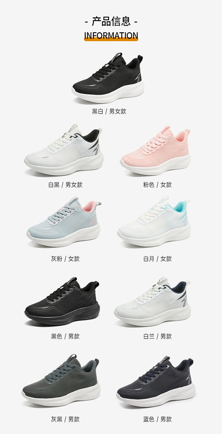 真维斯网面鞋男款女款新款运动鞋四季户外透气减震男鞋跑步鞋 黑白/男女款 37
