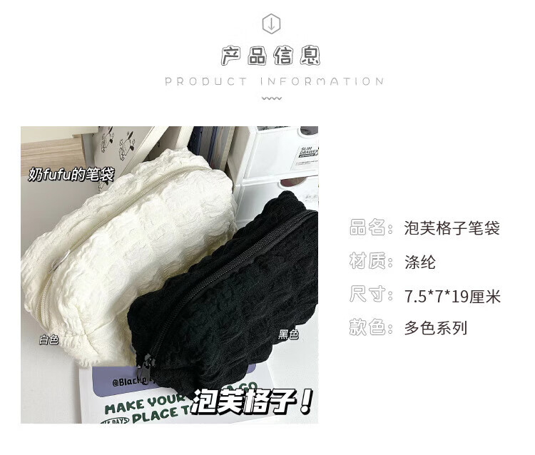 国誉【工厂直供】奶油泡芙笔袋学生大容量小众简约ins风韩版初高中生 泡芙笔袋-白色-1个 无规格