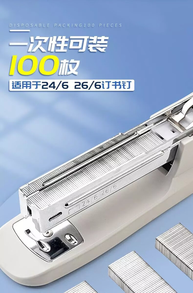 LZN加大订书机大号重型办公学生用加厚简约多功能钉书机12号钉子 【升级特厚】时尚灰+1000枚钉