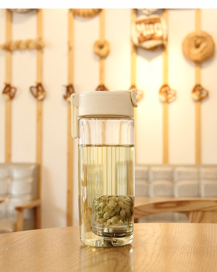 苏泊尔双层玻璃杯男家用商务办公泡茶杯子过滤车载水杯570mL.流光银
