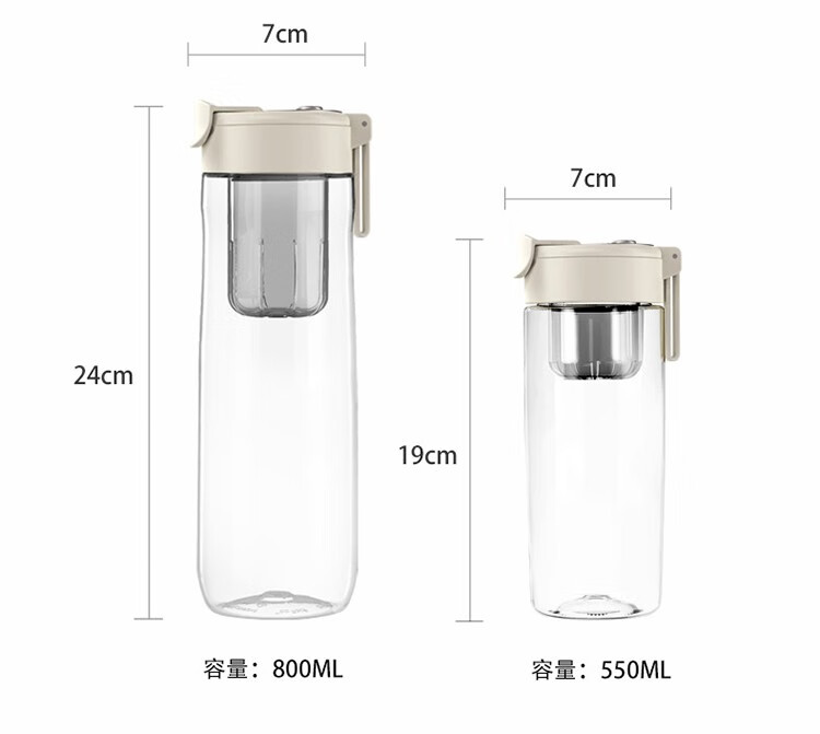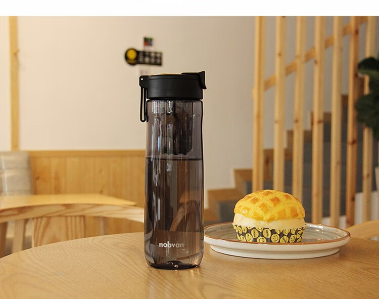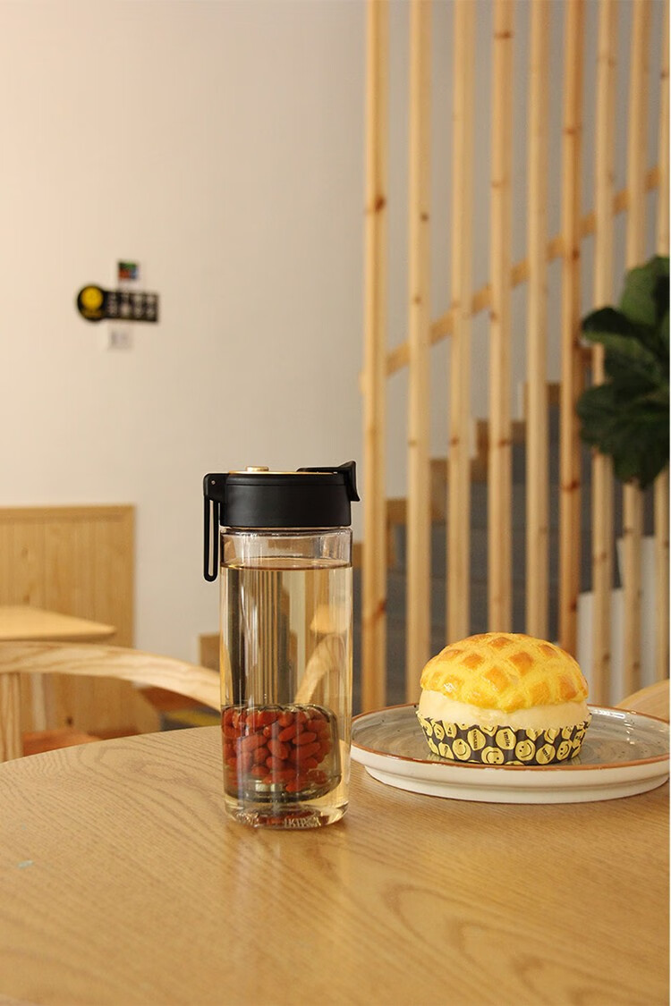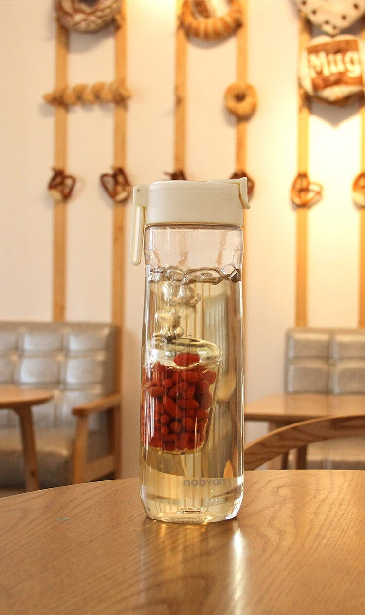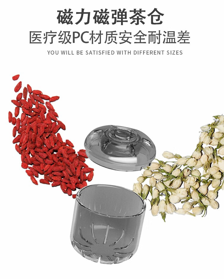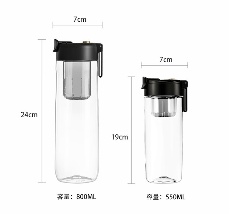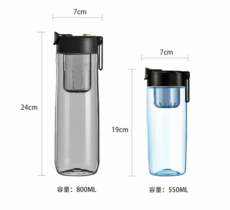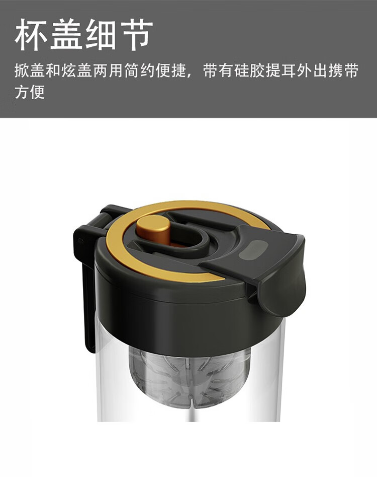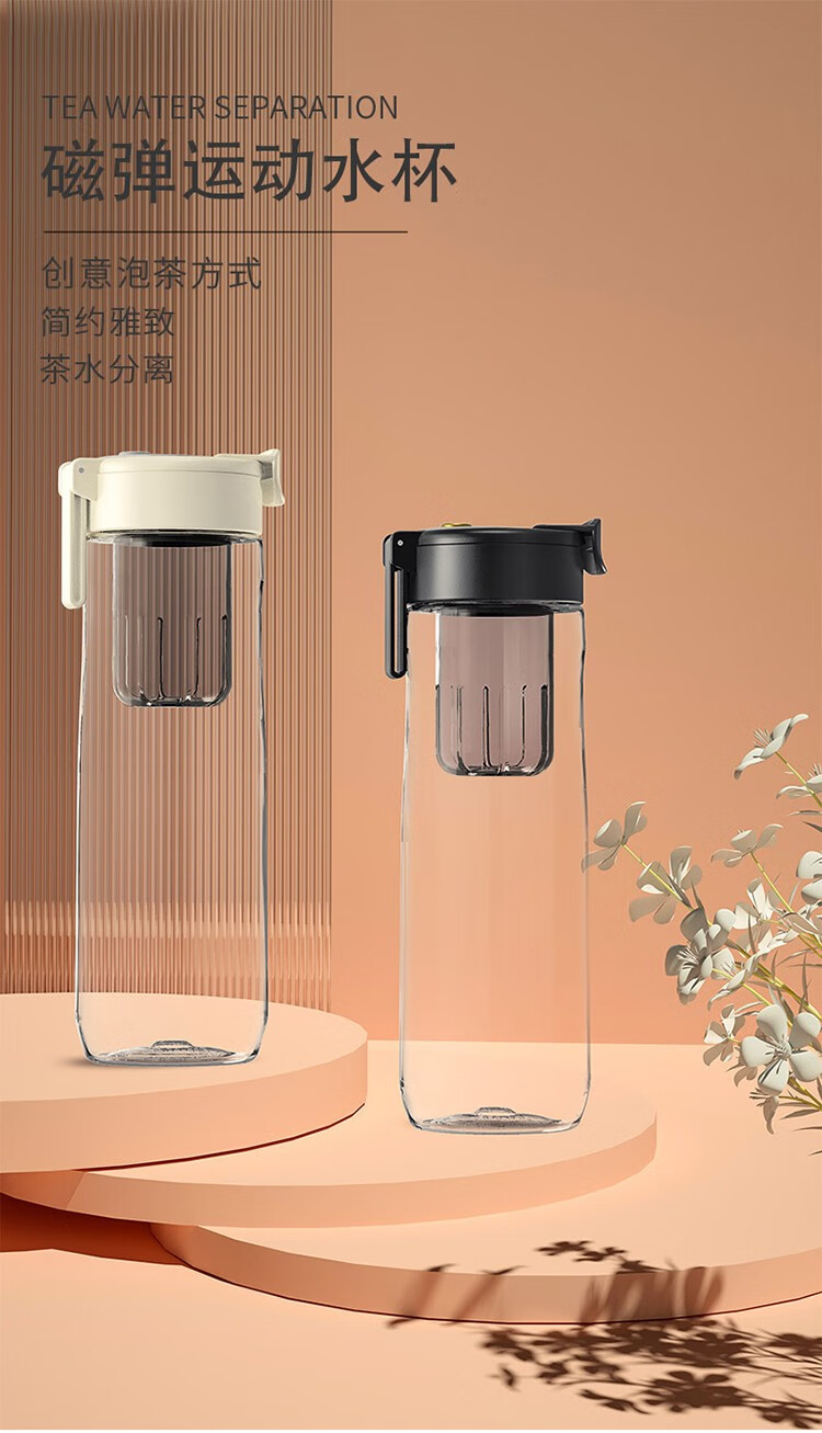 诺百纷磁弹杯茶水分离杯户外运动水杯网红学生水杯大容量水壶 T512 透明黑 800ml