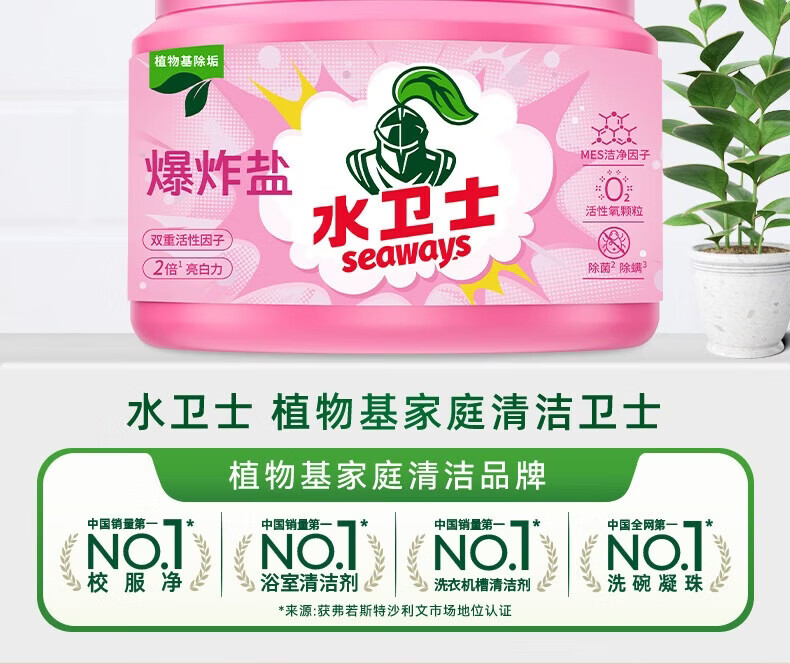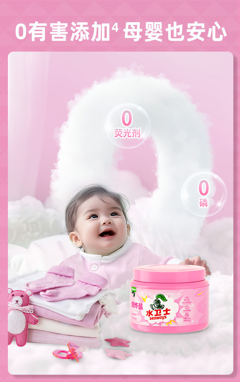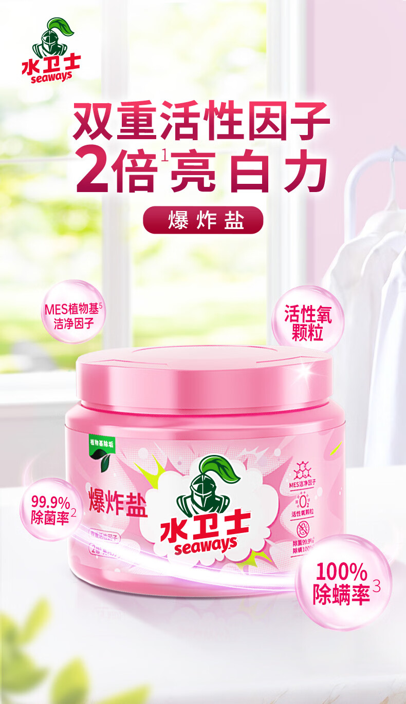 水卫士母婴爆炸盐彩色白色衣服通用去黄增白除菌除螨宝宝衣物多污渍可用 2瓶【98%家庭选择】