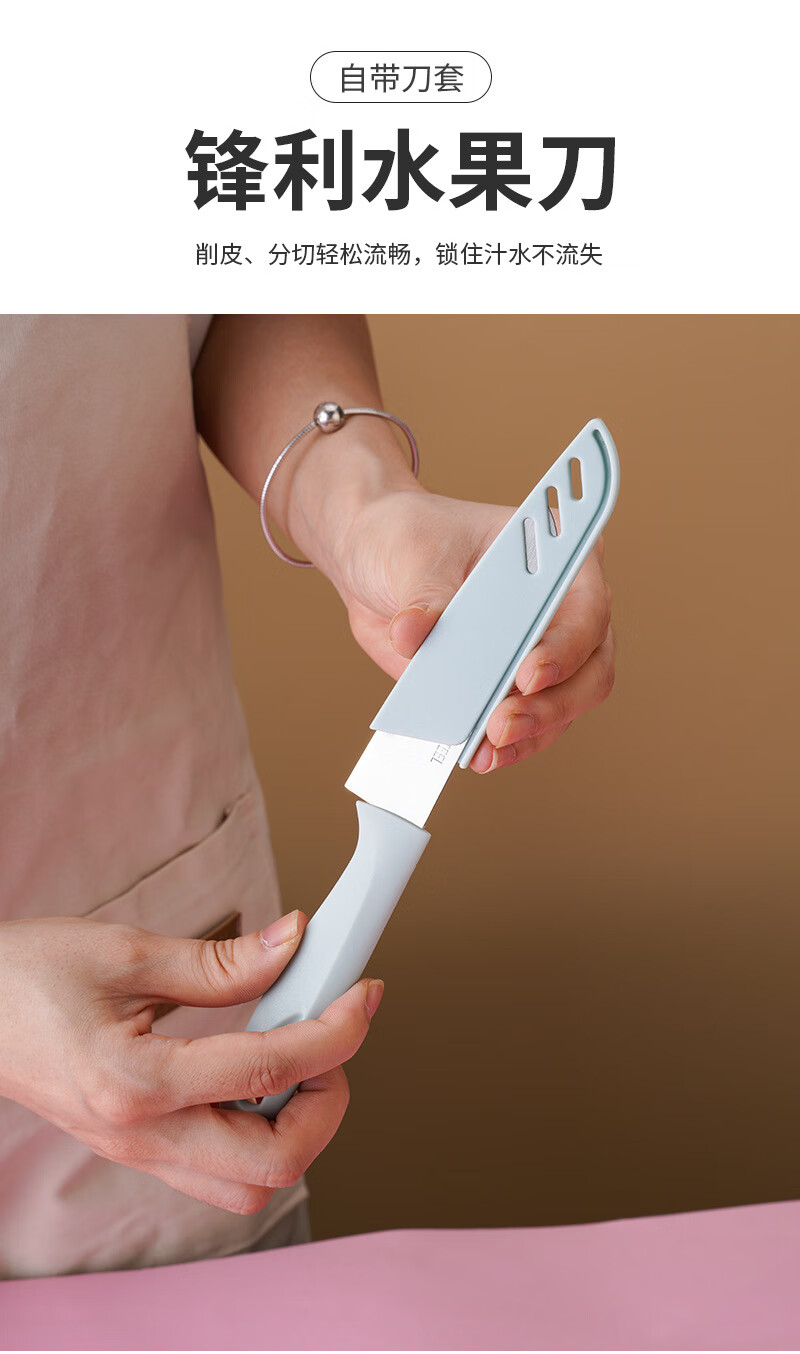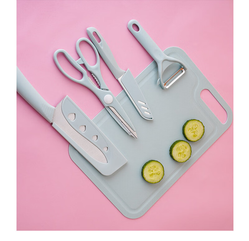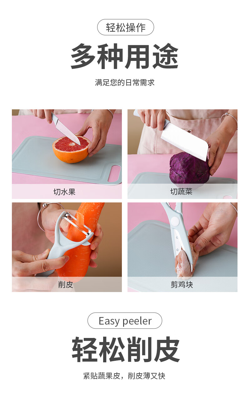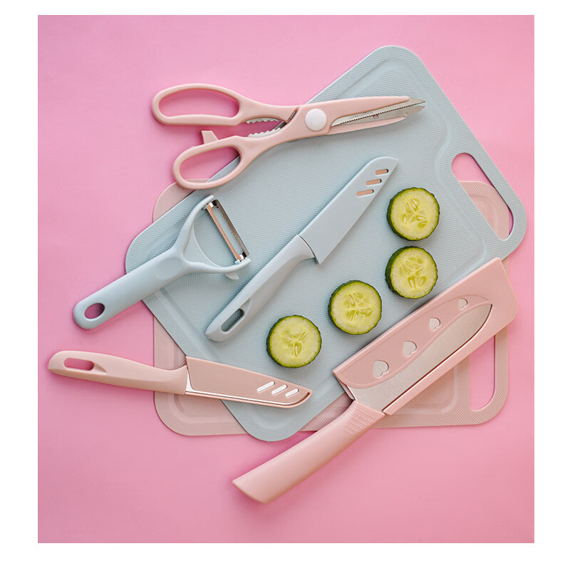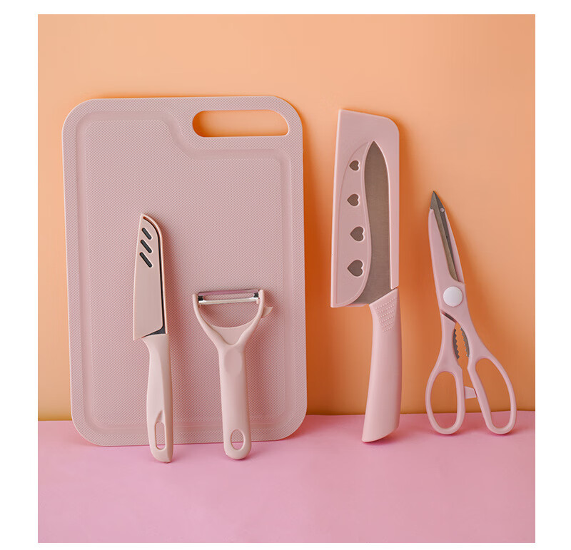 家用菜板切片刀厨房刀具套装宿舍砧板全套组合礼品切菜板水果案板 粉色三件套