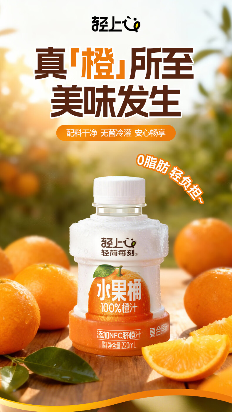 轻上橙汁复合果汁100%果汁含量NFC橙汁果汁饮品聚餐送礼礼盒装 黄芽汤245ml*10瓶