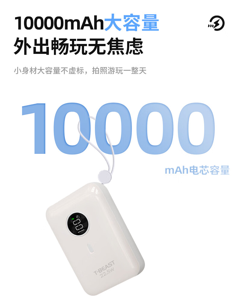 拾光兽【充电宝3C认证可上飞机】2025新款大容量10000毫安充电宝超薄小巧适用苹果快充专用移动电源 【顶配新3C认证】1W毫安