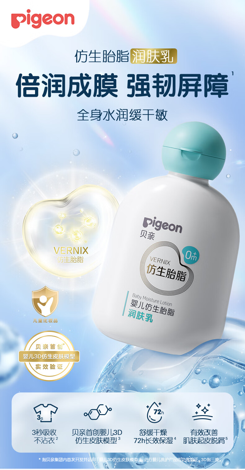 贝亲婴儿仿生胎脂润肤乳 宝宝润肤霜 新生儿润肤露 次抛精华 200ml 1瓶 润肤乳