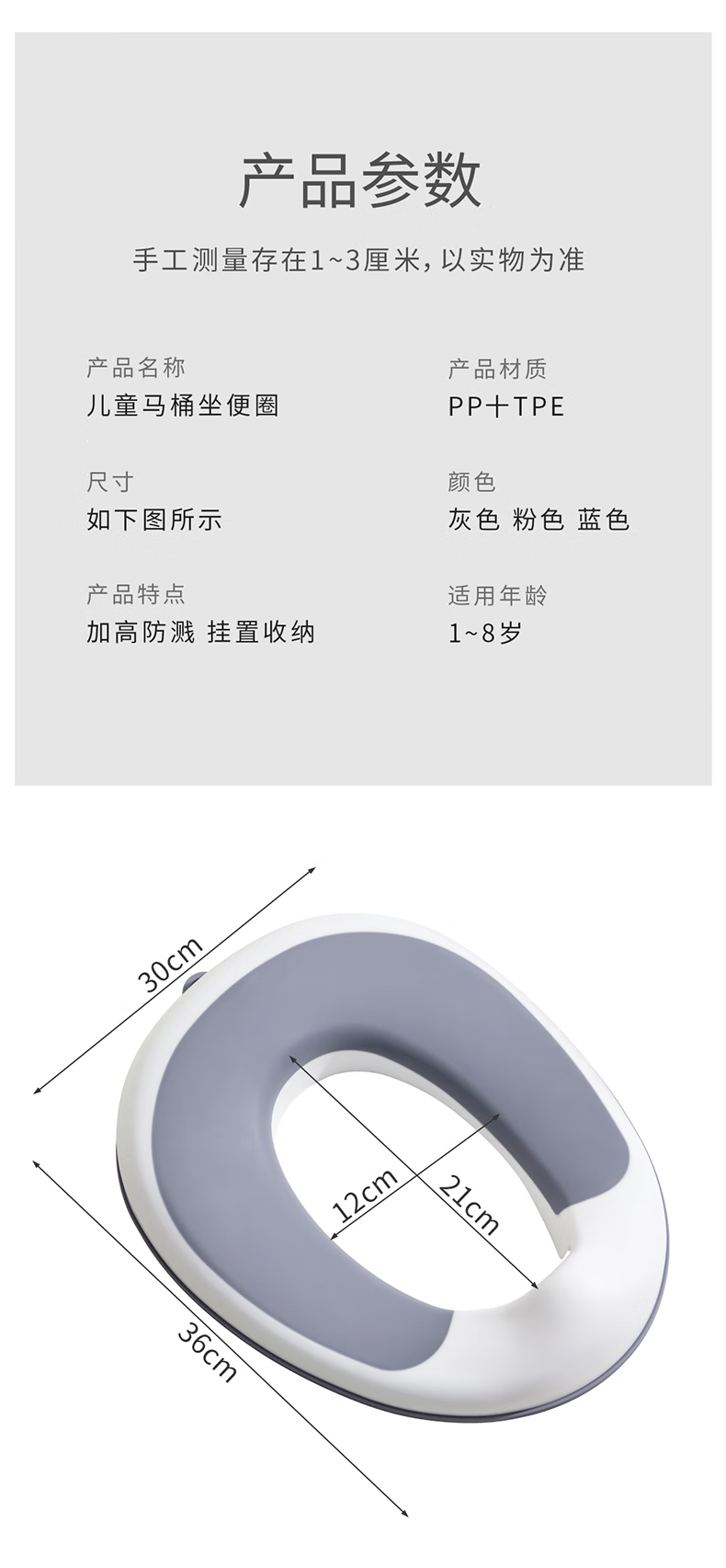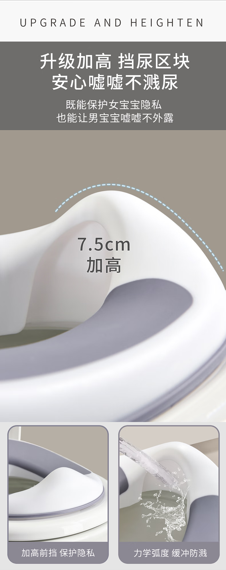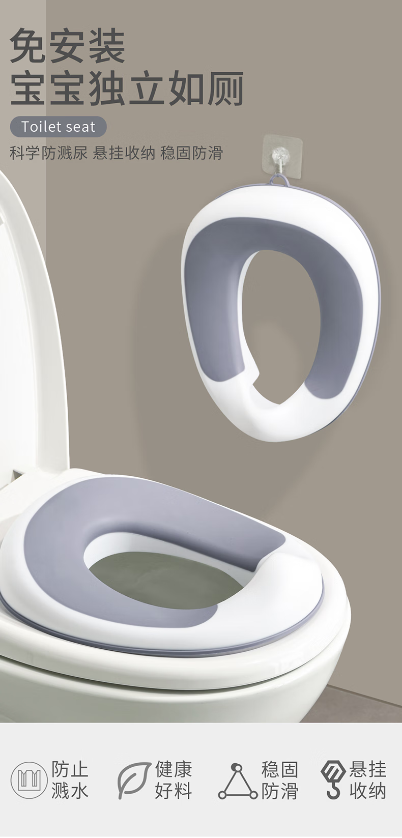 菲尔洁儿童马桶坐便圈小孩坐便垫马桶圈男女宝宝通用防溅厕所便携式神器 大象灰升级TPE软垫款【赠挂钩】