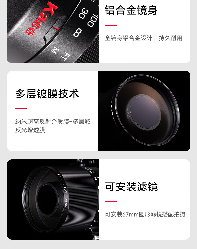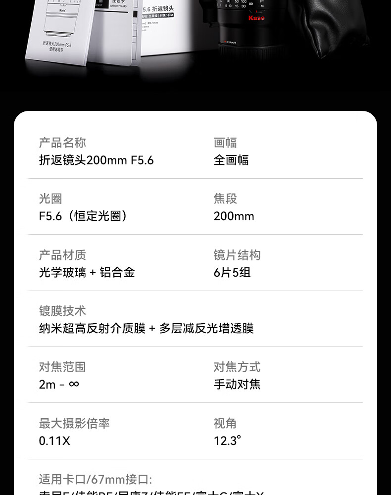 卡色(Kase)【顺丰航空】200mm F5.6全画幅折返镜头 甜甜圈定焦镜头虚化梦幻 适用EF RF E Z G X微单相机卡口 索尼E卡口