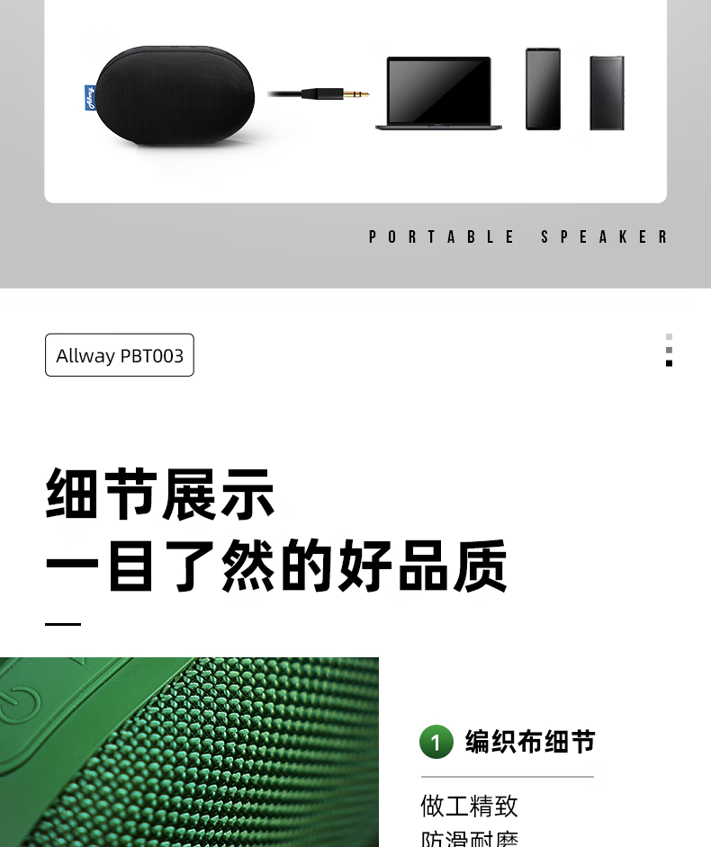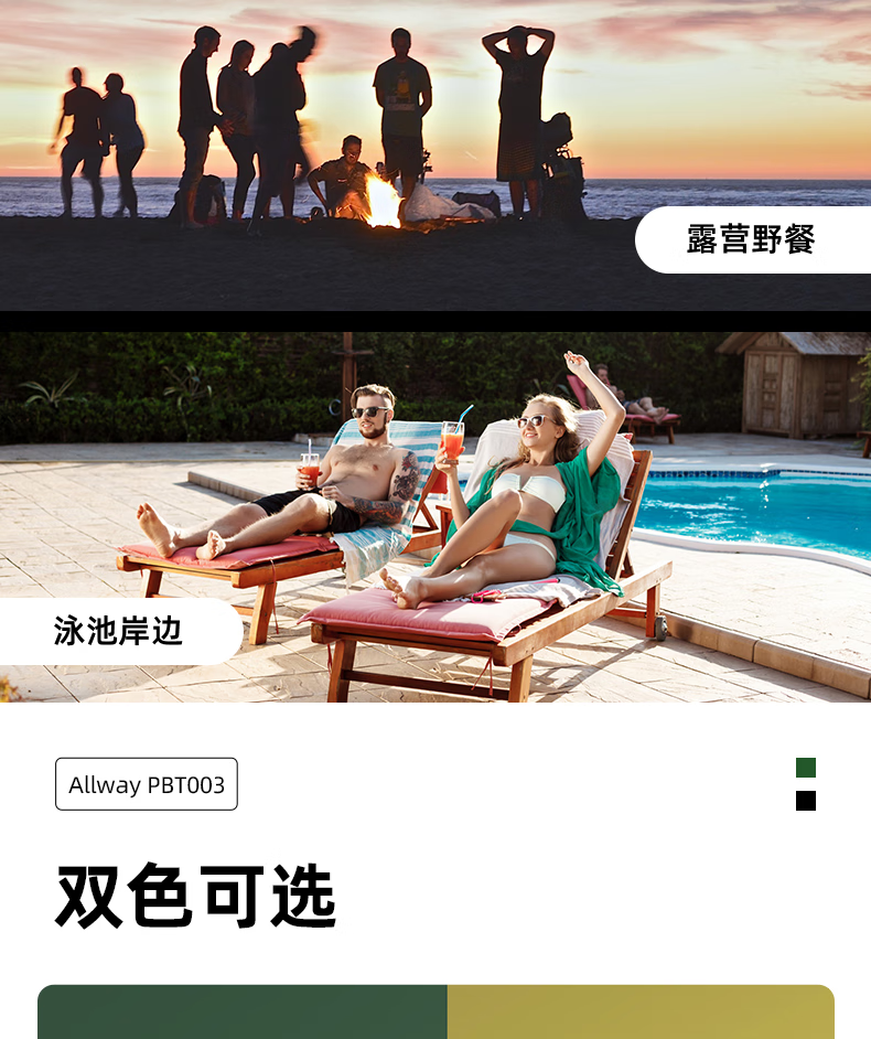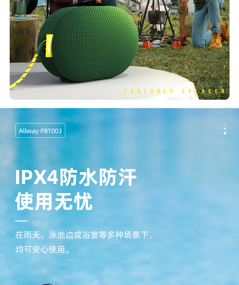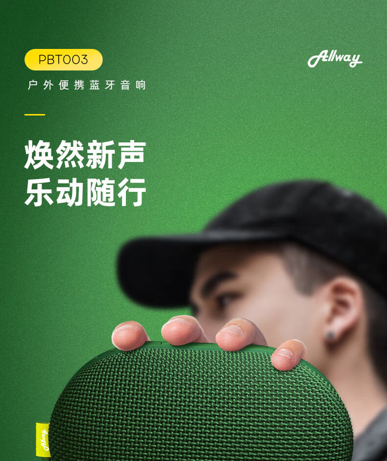 ALLWAYPBT003户外便携蓝牙音响低音炮迷你小型音箱露营爬山随身听防水高音质自行车骑行小钢炮超长续航 PBT003绿色便携蓝牙音箱