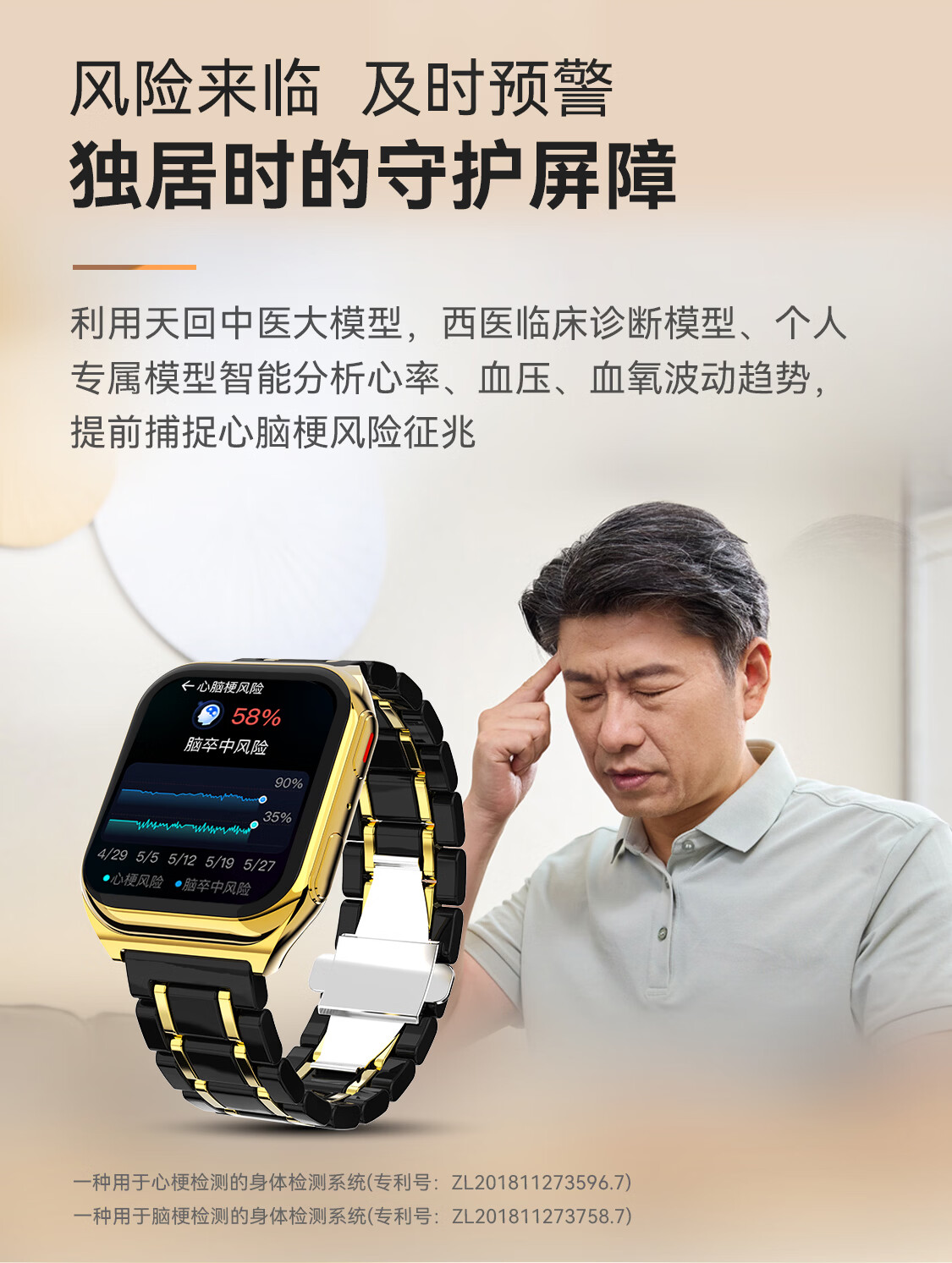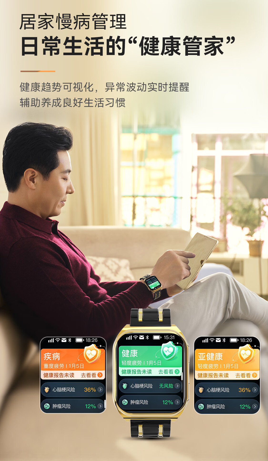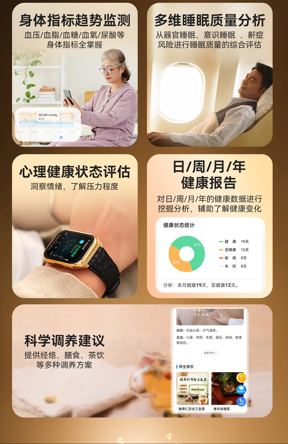 安顿【京配】心梗脑卒中智能手表健康监测风险预警手表手环睡眠血糖趋势心率血氧血脂送老人送礼男女表 至尊守护版+赠黑色鳄鱼皮表带*1 京仓发