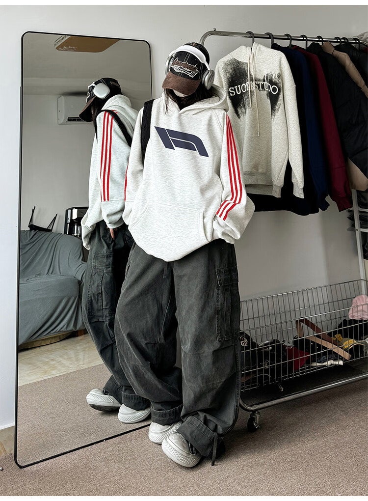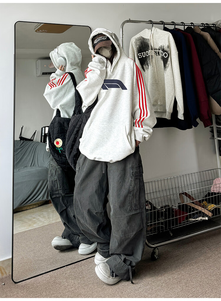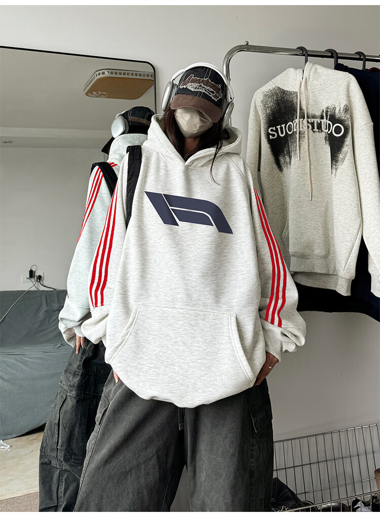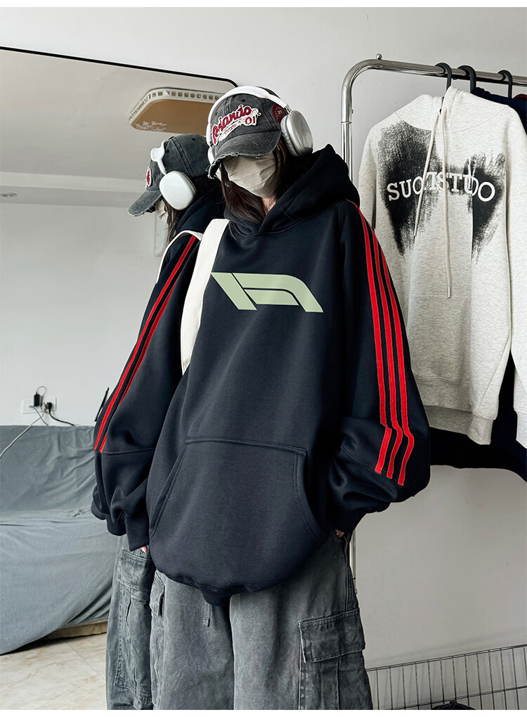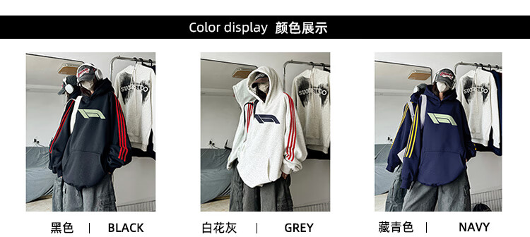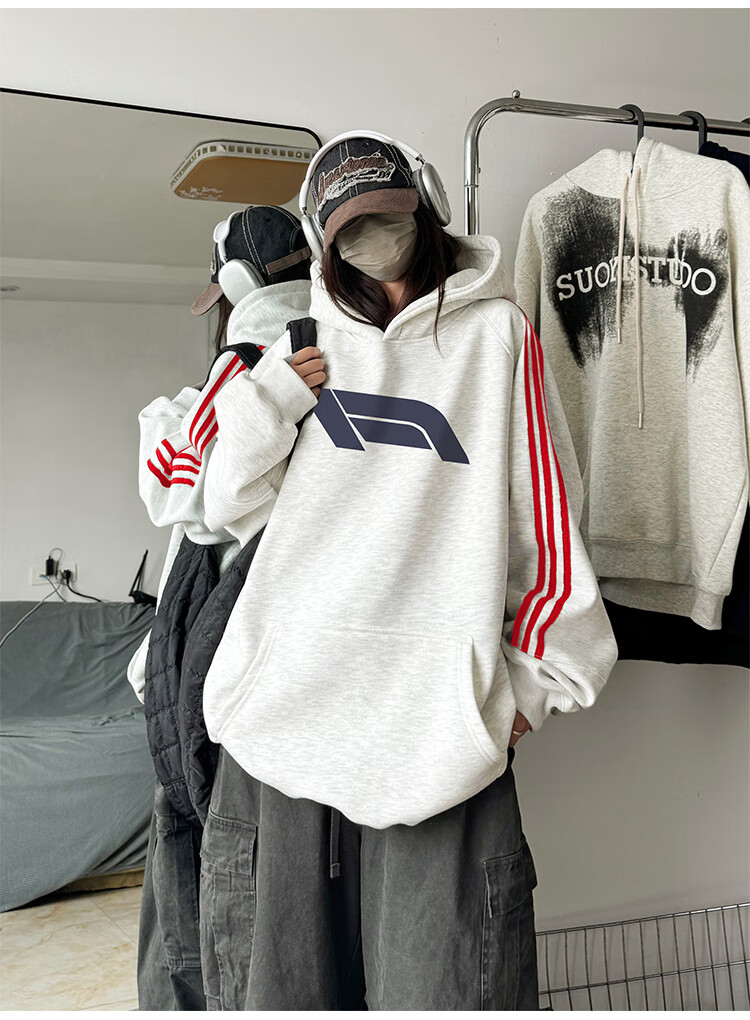 黑盒白条纹连帽卫衣男2025新款秋季美式复古潮牌宽松情侣长袖帽衫外套男 XXJR-FA1199白灰 常规 L