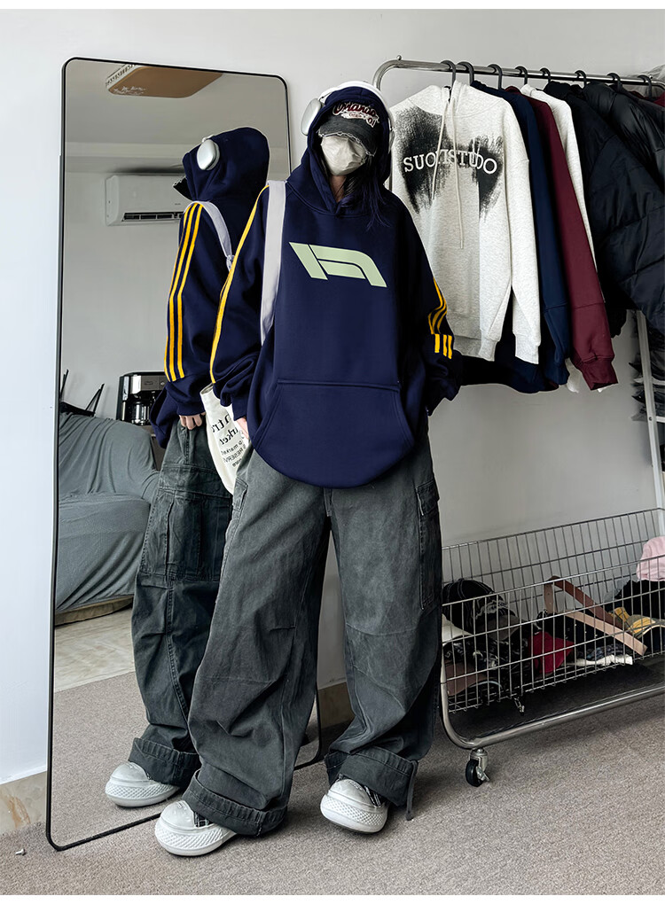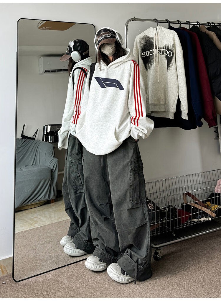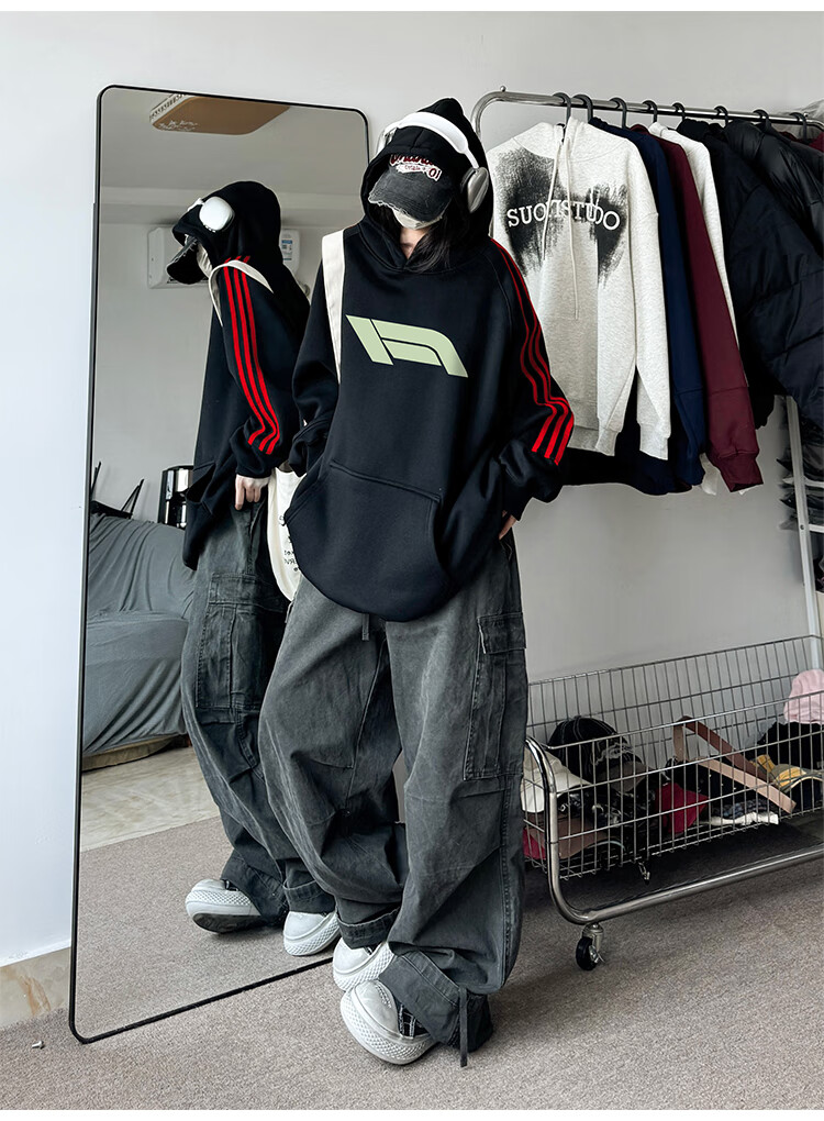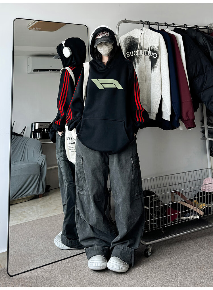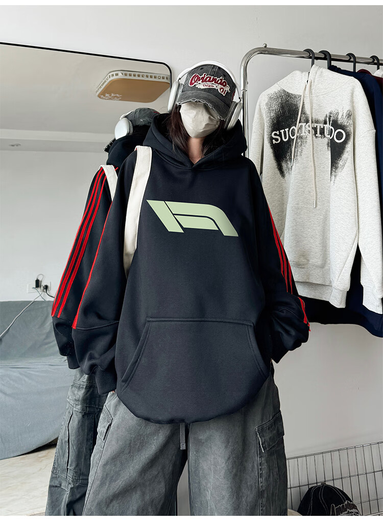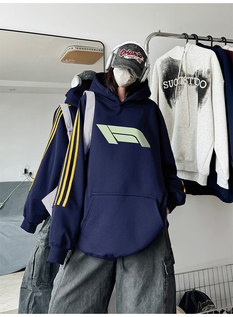 黑盒白条纹连帽卫衣男2025新款秋季美式复古潮牌宽松情侣长袖帽衫外套男 XXJR-FA1199白灰 常规 L