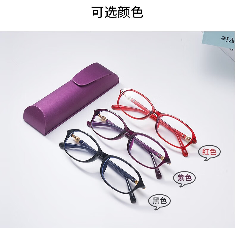 妍华简约舒适智能变焦小框防蓝光优雅时尚超轻老花眼镜女士潮流镜腿 紫色 不带盒 400度【适合年龄75岁以上】