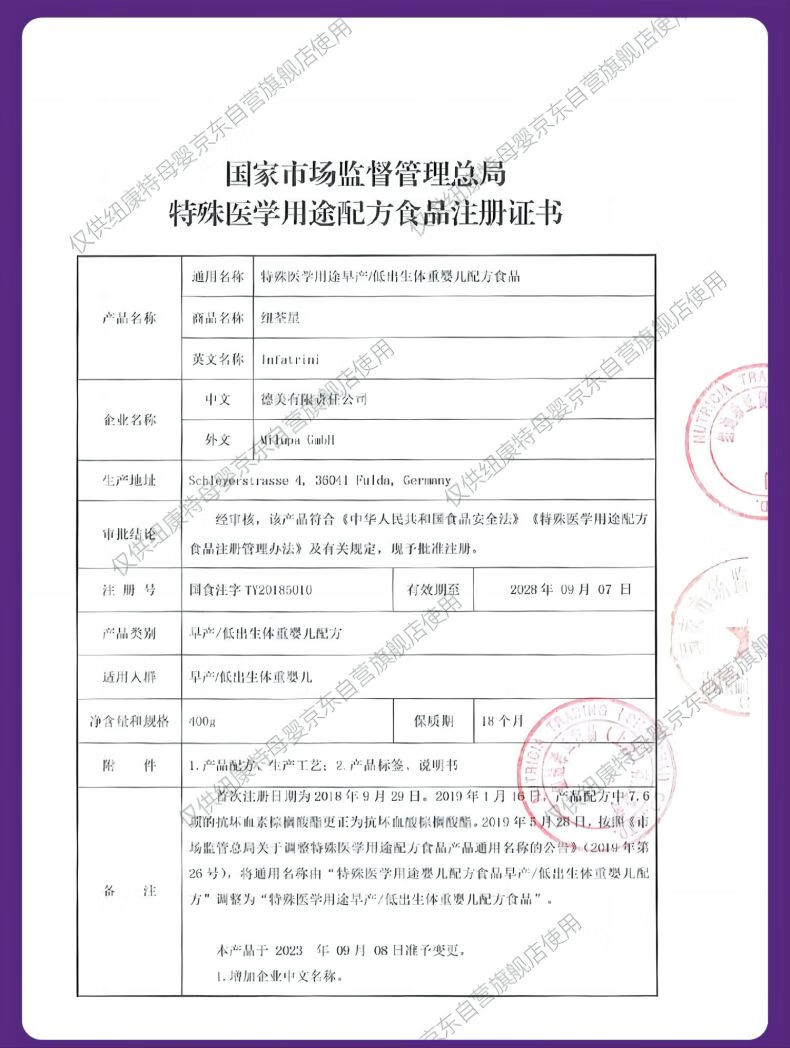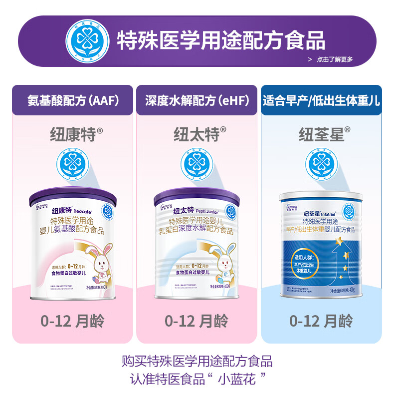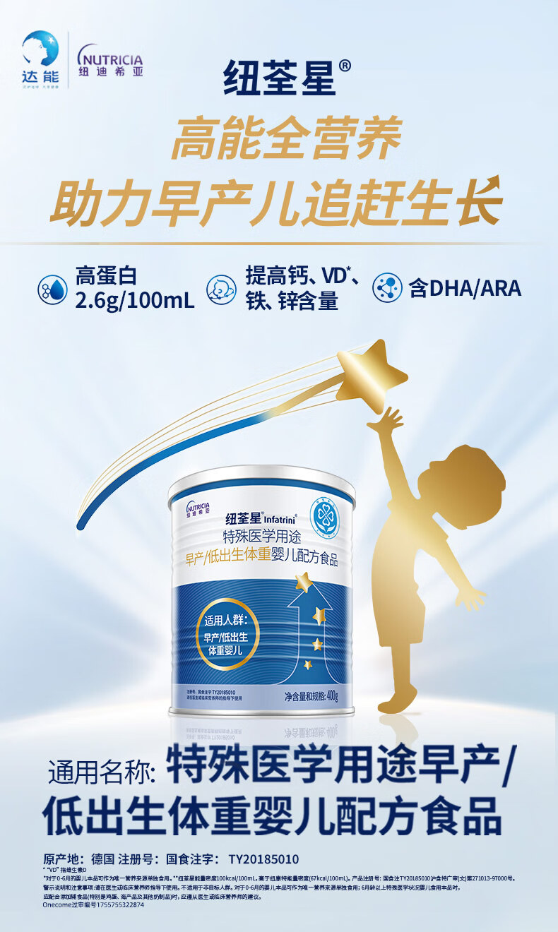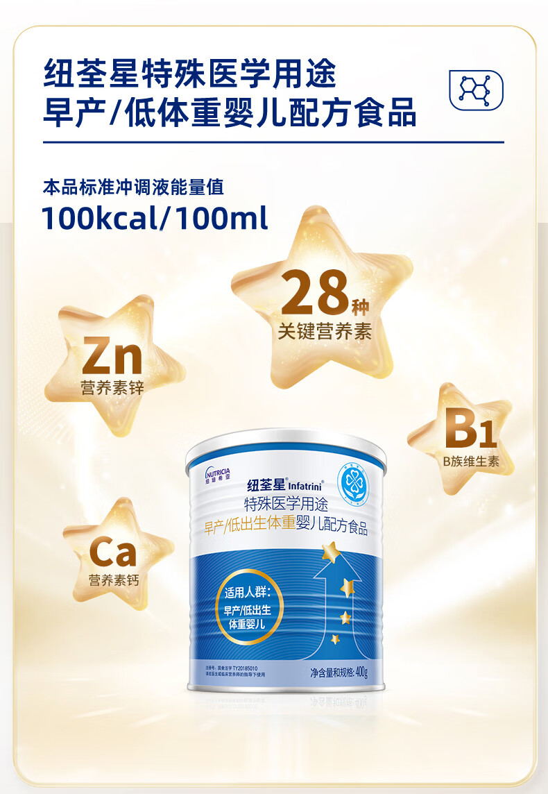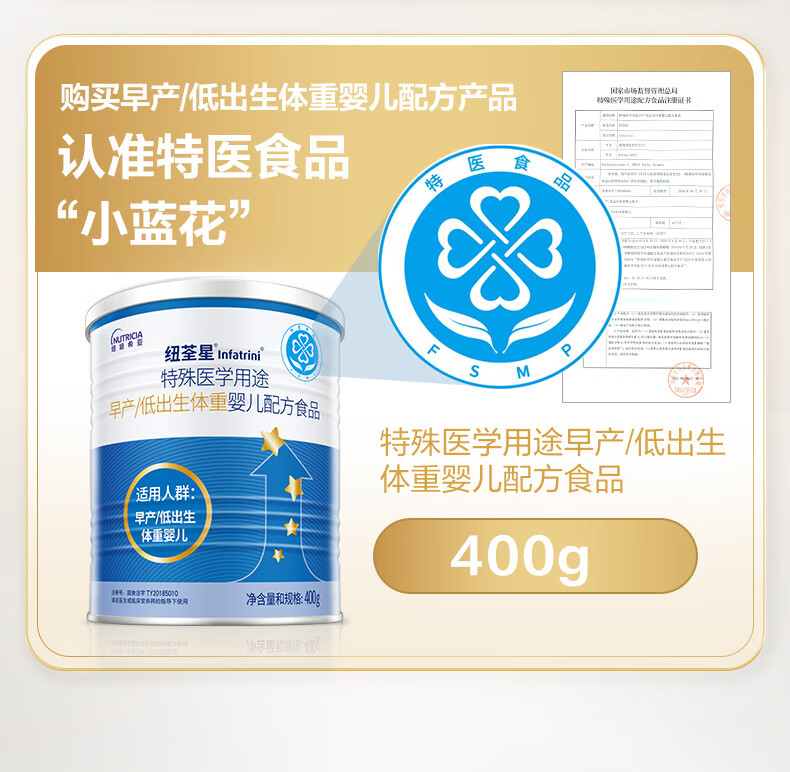 纽荃星 特殊医学用途 早产/低出生体重婴儿配方食品 400g