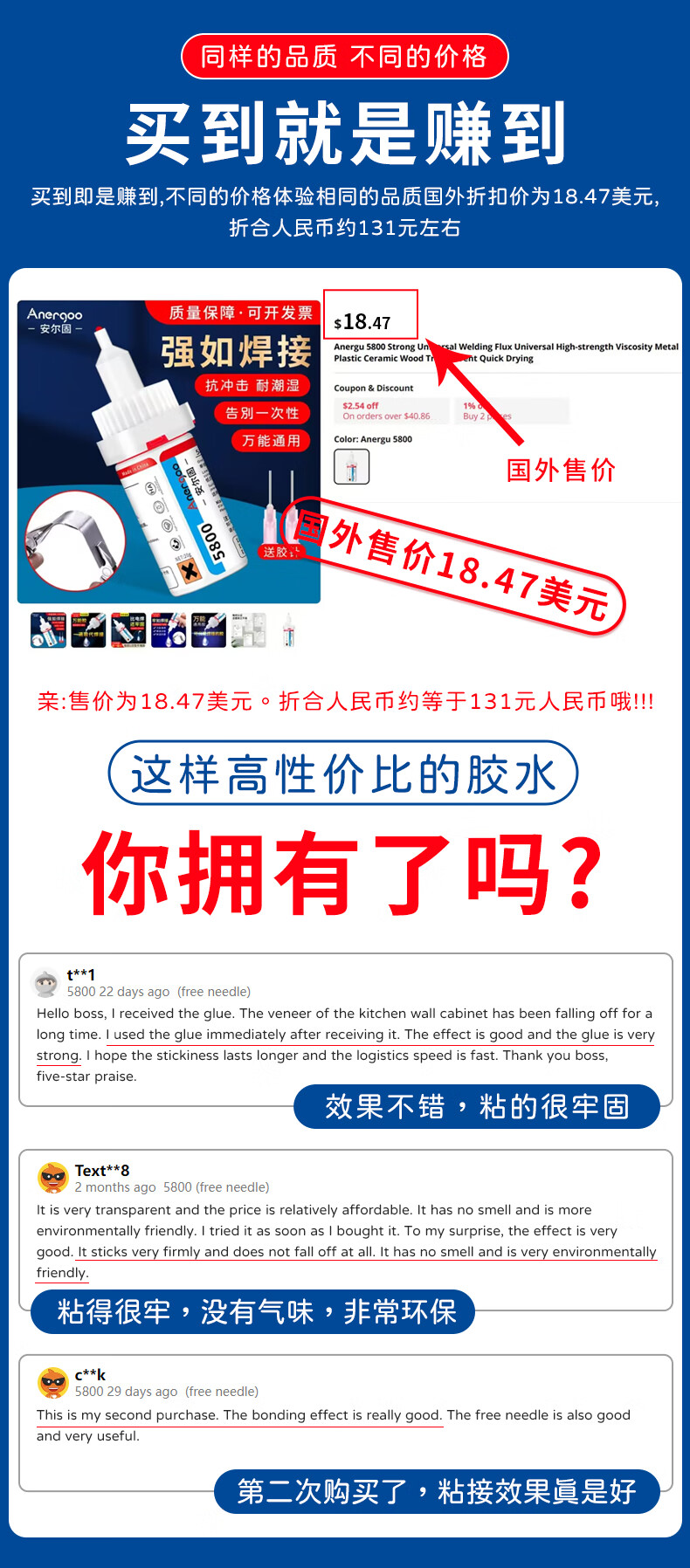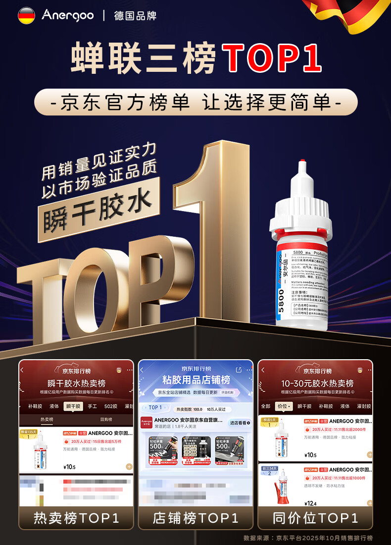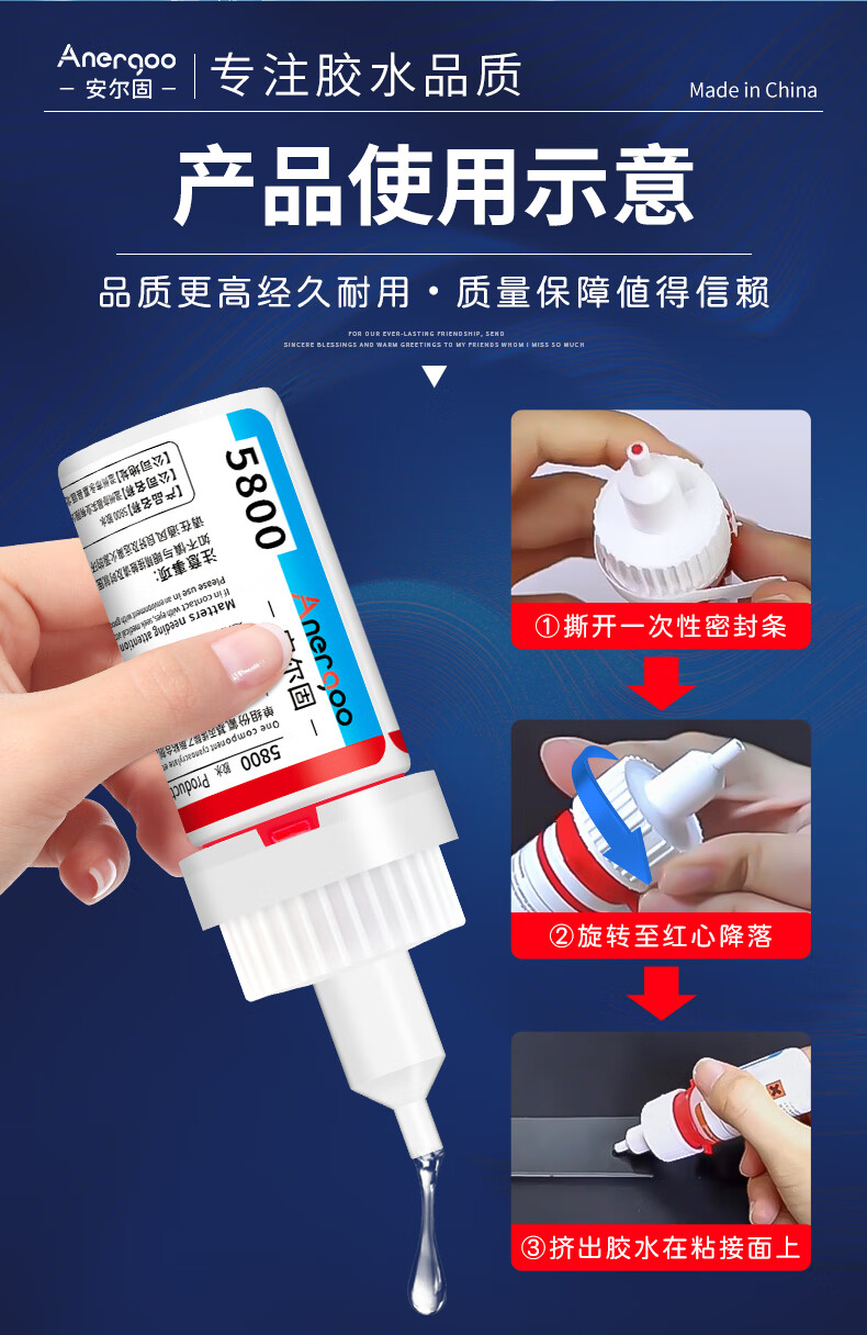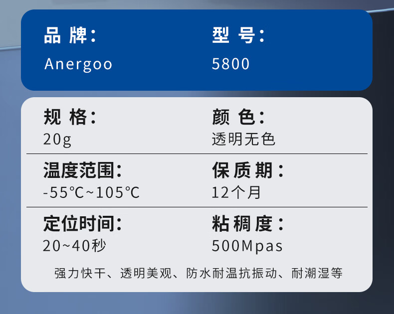 ANERGOO 安尔固强力万能胶水京东自营粘鞋底补鞋模型塑料金属陶瓷亚克力木头玻璃铁家具速干非502胶快干20克