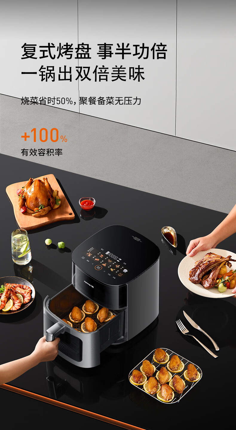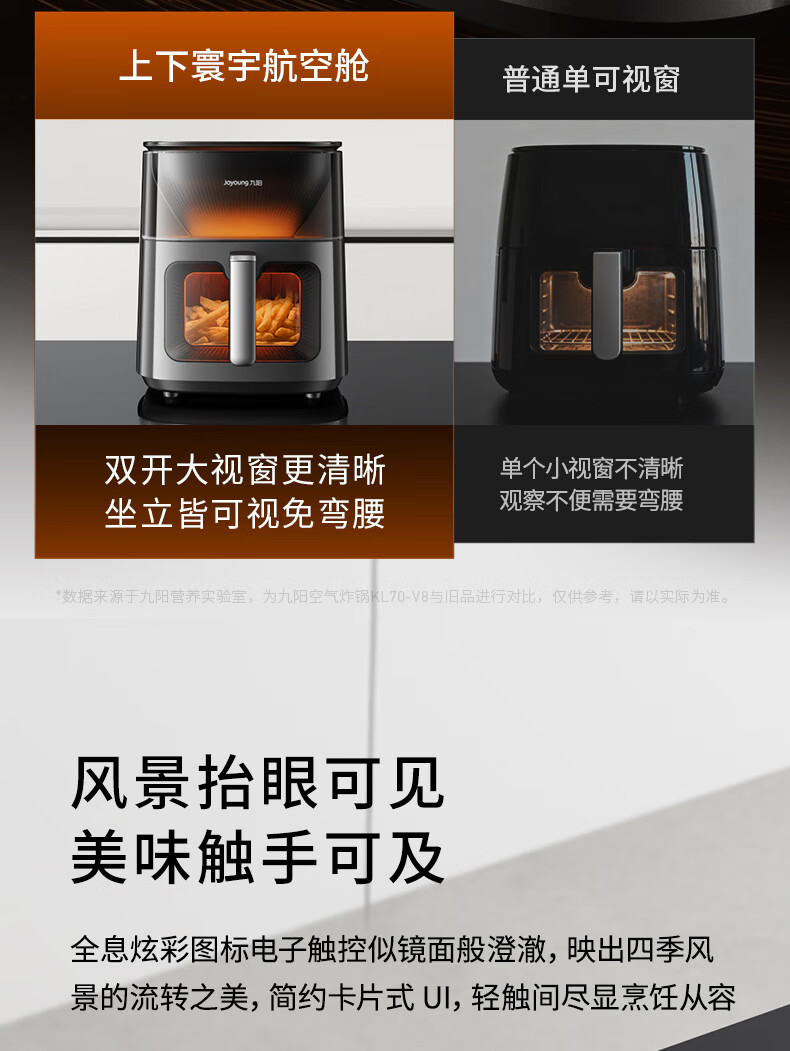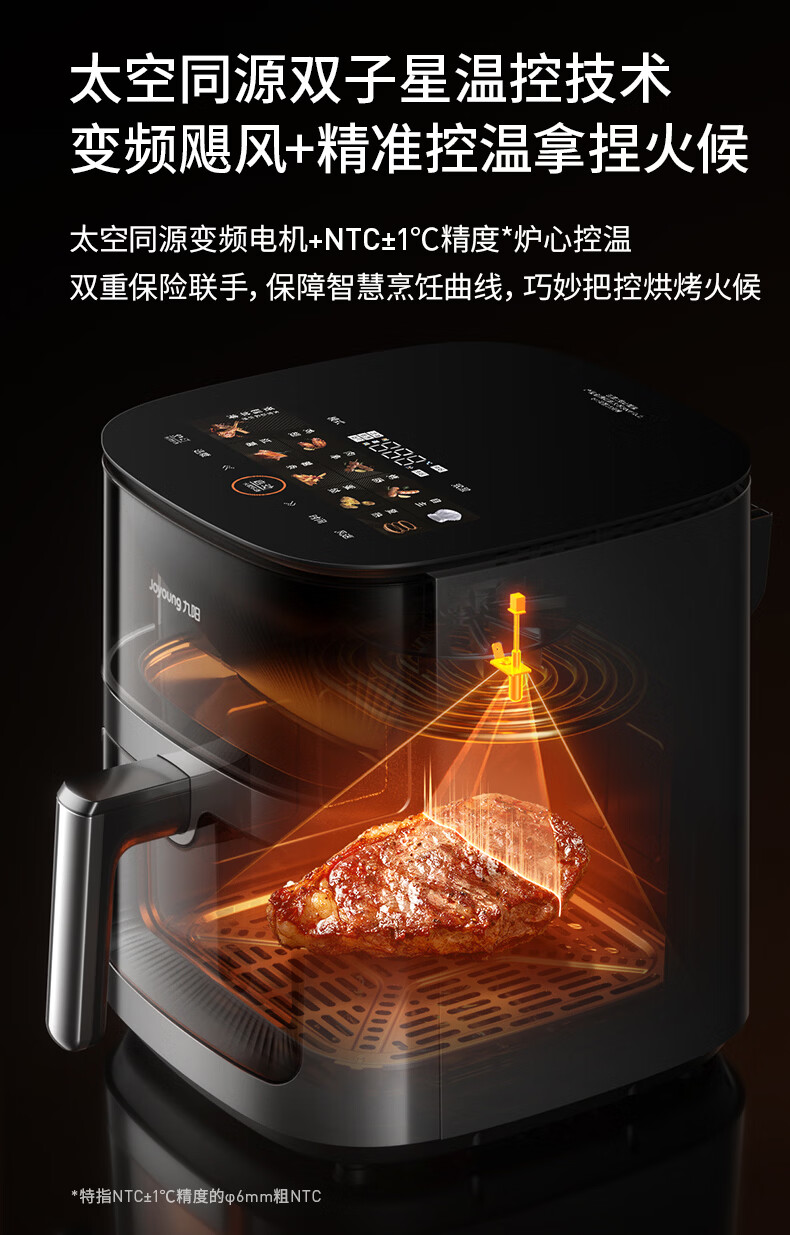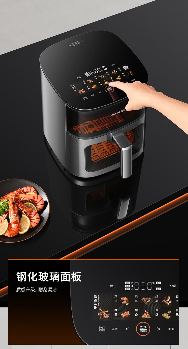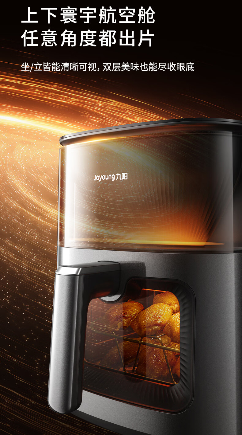九阳(Joyoung)变频焱烤双层烤空气炸锅 NTC精准控温 家用实用7L大容量 上下双可视大视窗 蒸烤炸一体KL70-V8