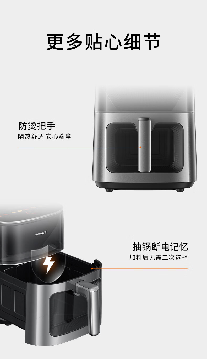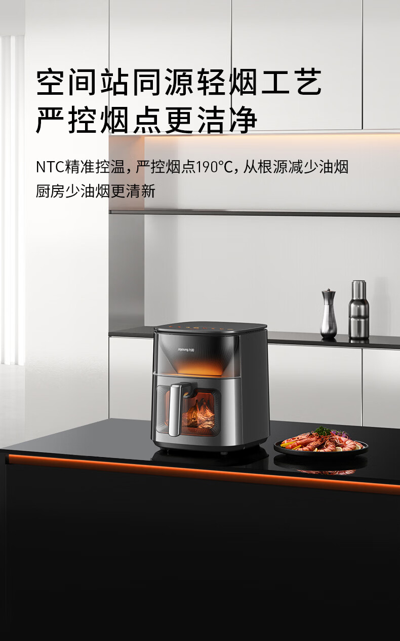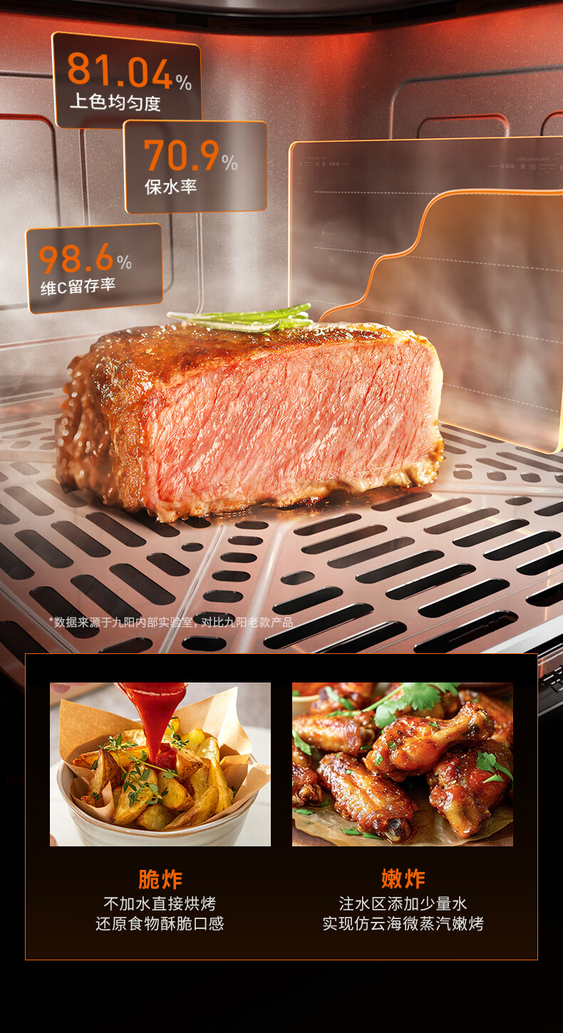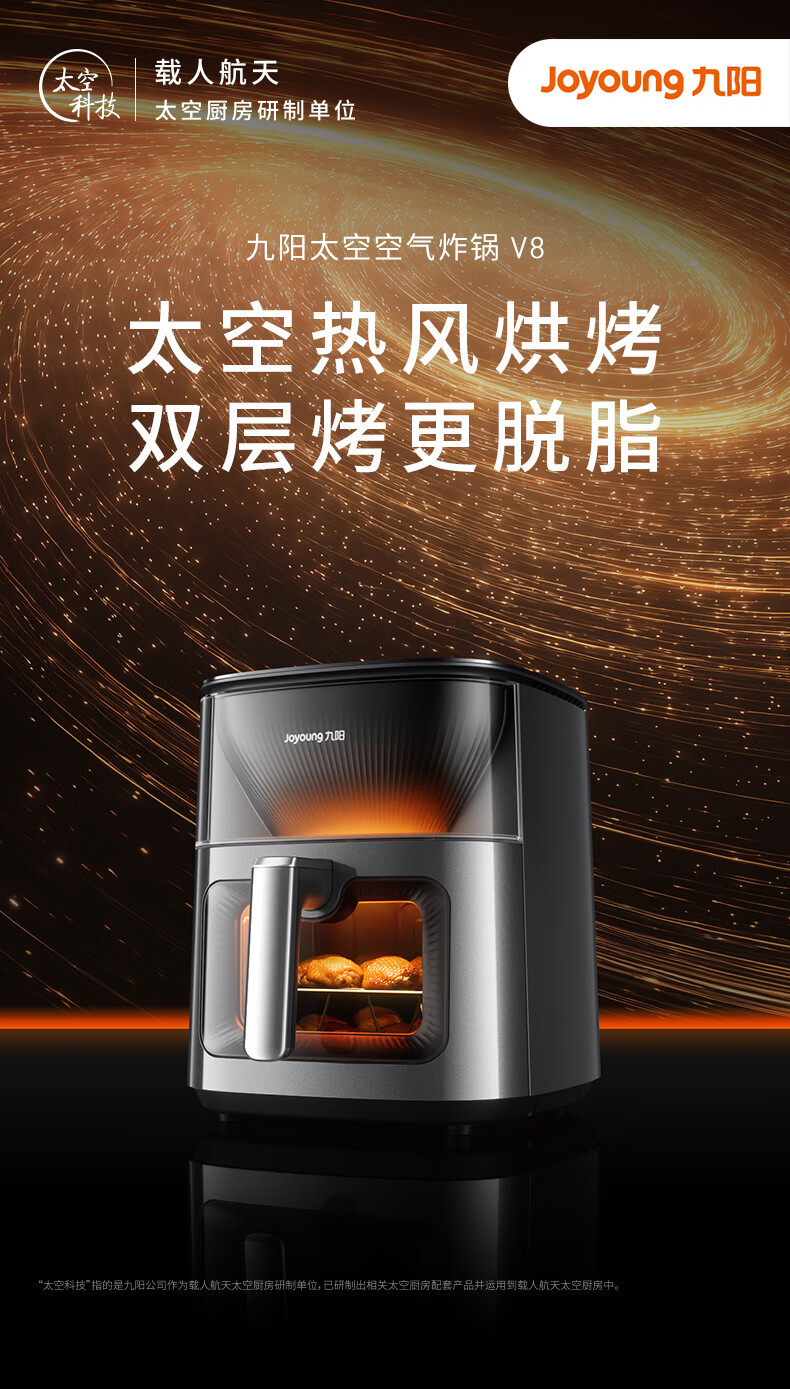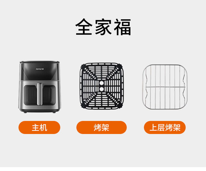 九阳(Joyoung)变频焱烤双层烤空气炸锅 NTC精准控温 家用实用7L大容量 上下双可视大视窗 蒸烤炸一体KL70-V8