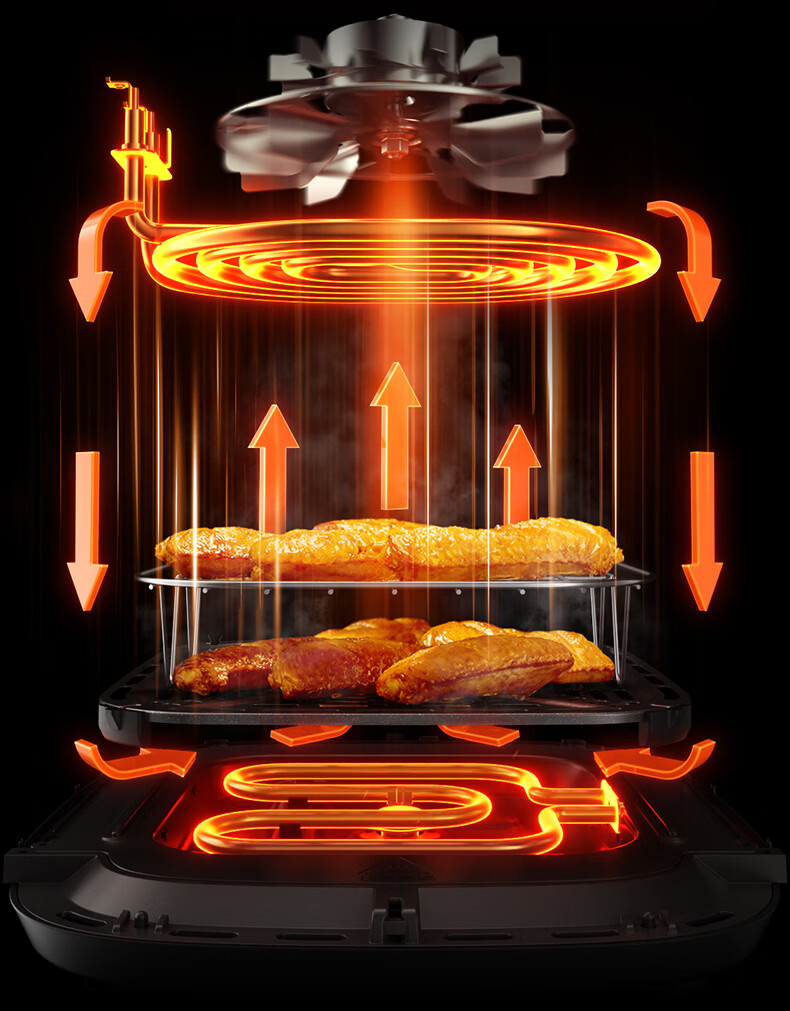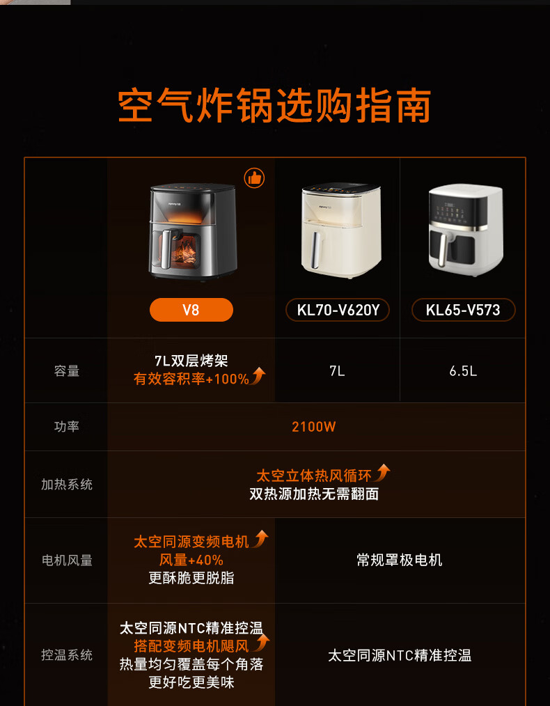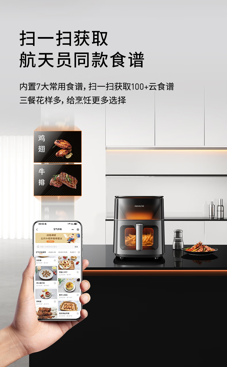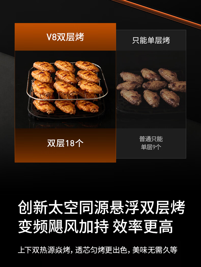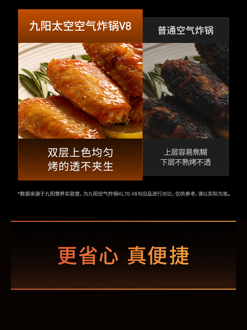 九阳(Joyoung)变频焱烤双层烤空气炸锅 NTC精准控温 家用实用7L大容量 上下双可视大视窗 蒸烤炸一体KL70-V8