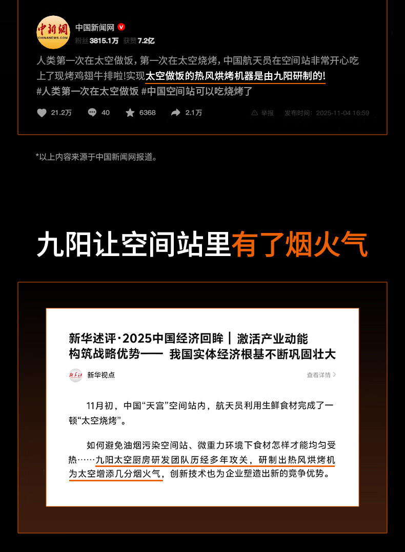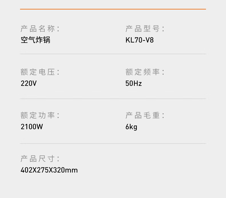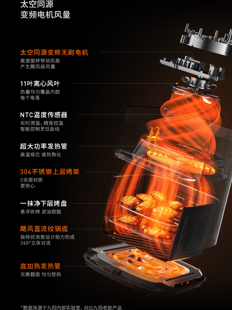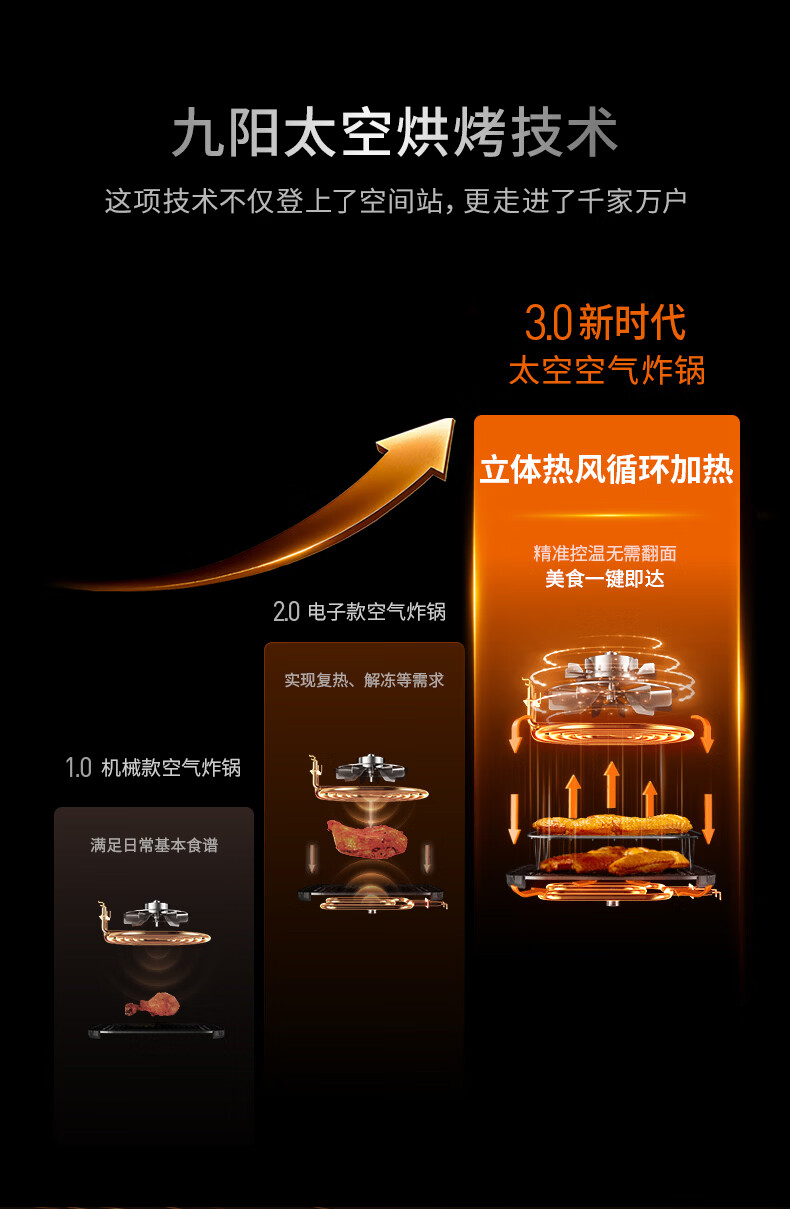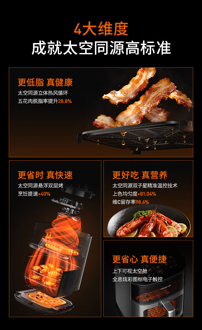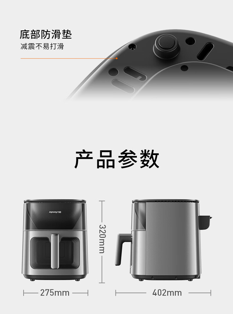 九阳(Joyoung)变频焱烤双层烤空气炸锅 NTC精准控温 家用实用7L大容量 上下双可视大视窗 蒸烤炸一体KL70-V8