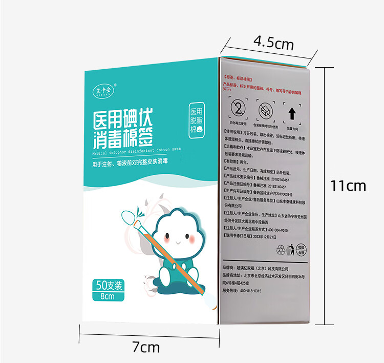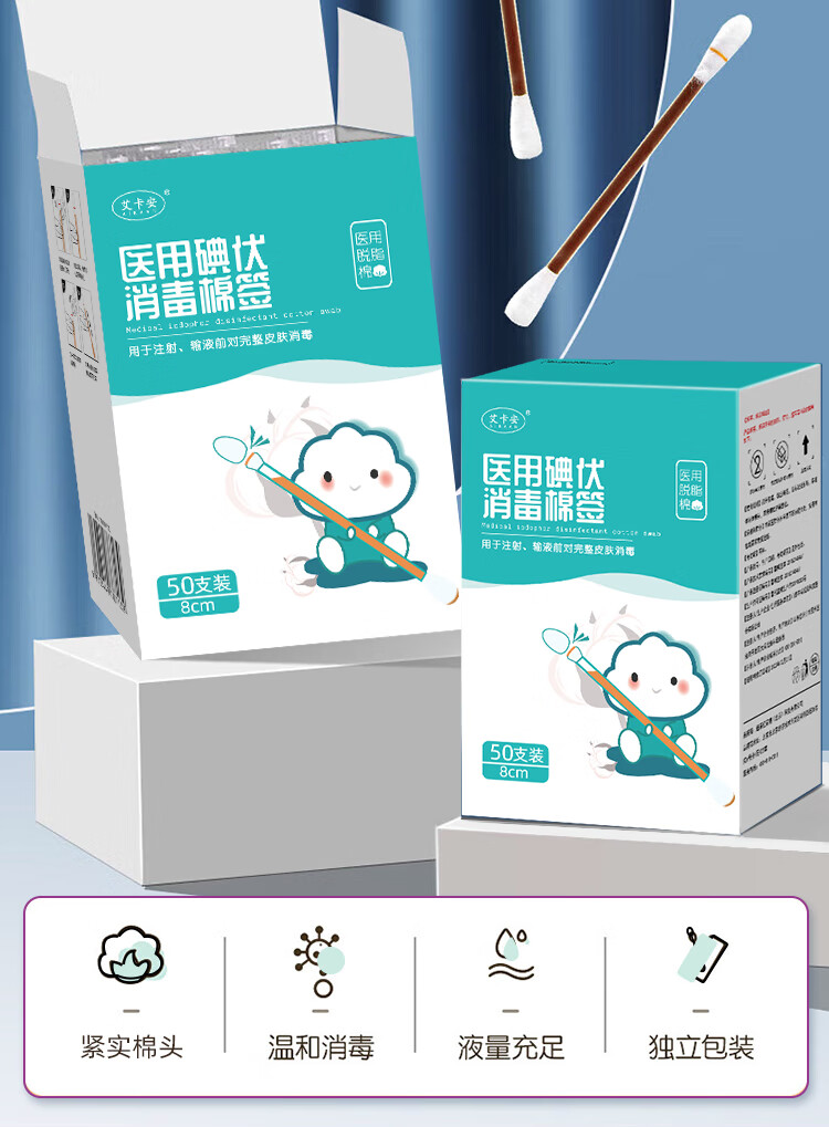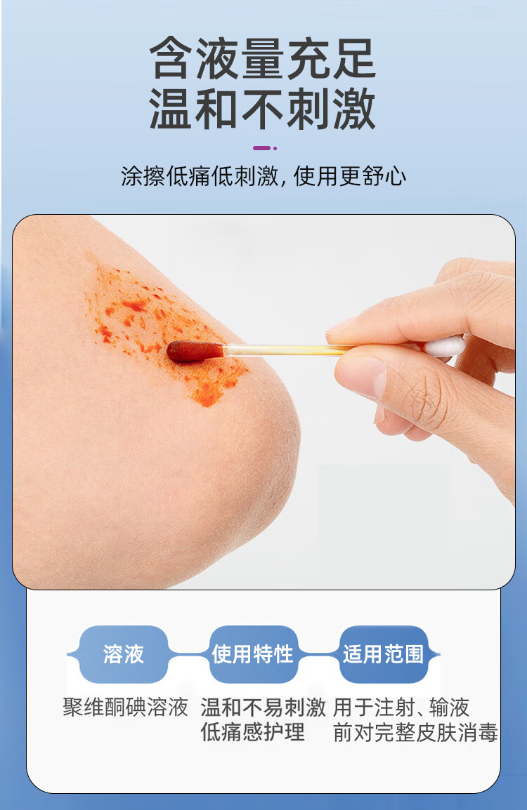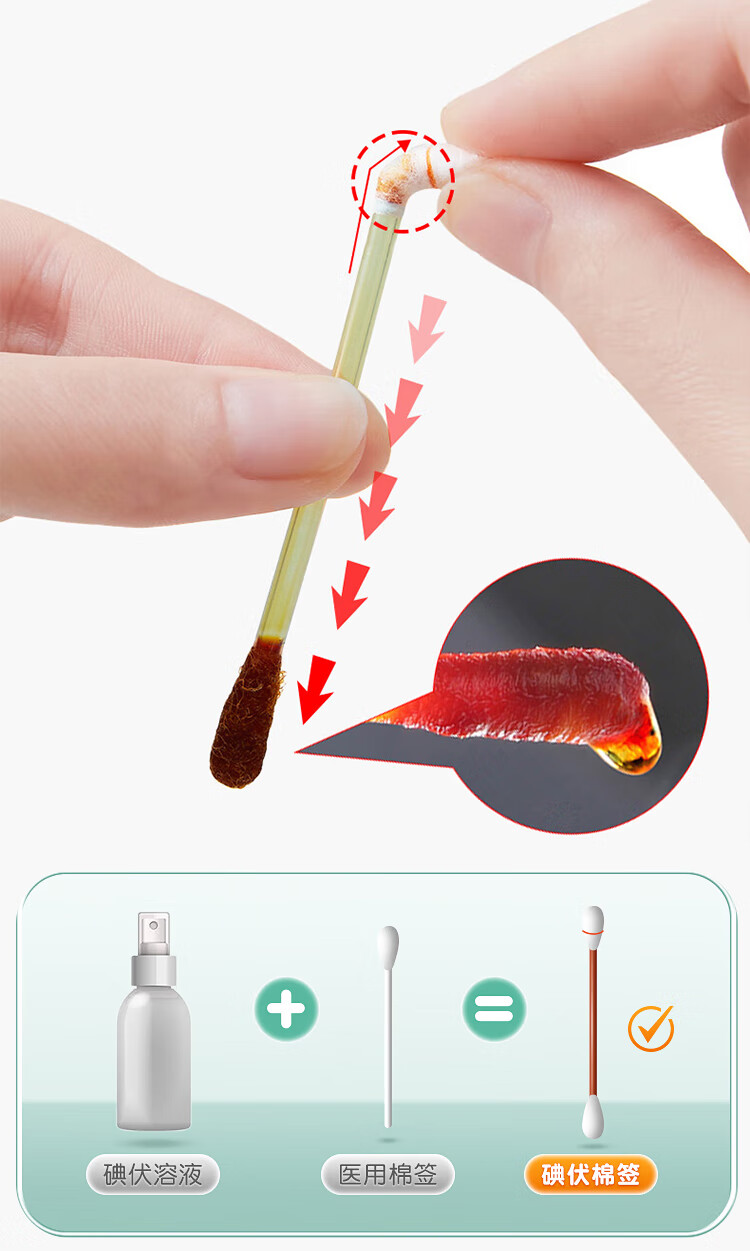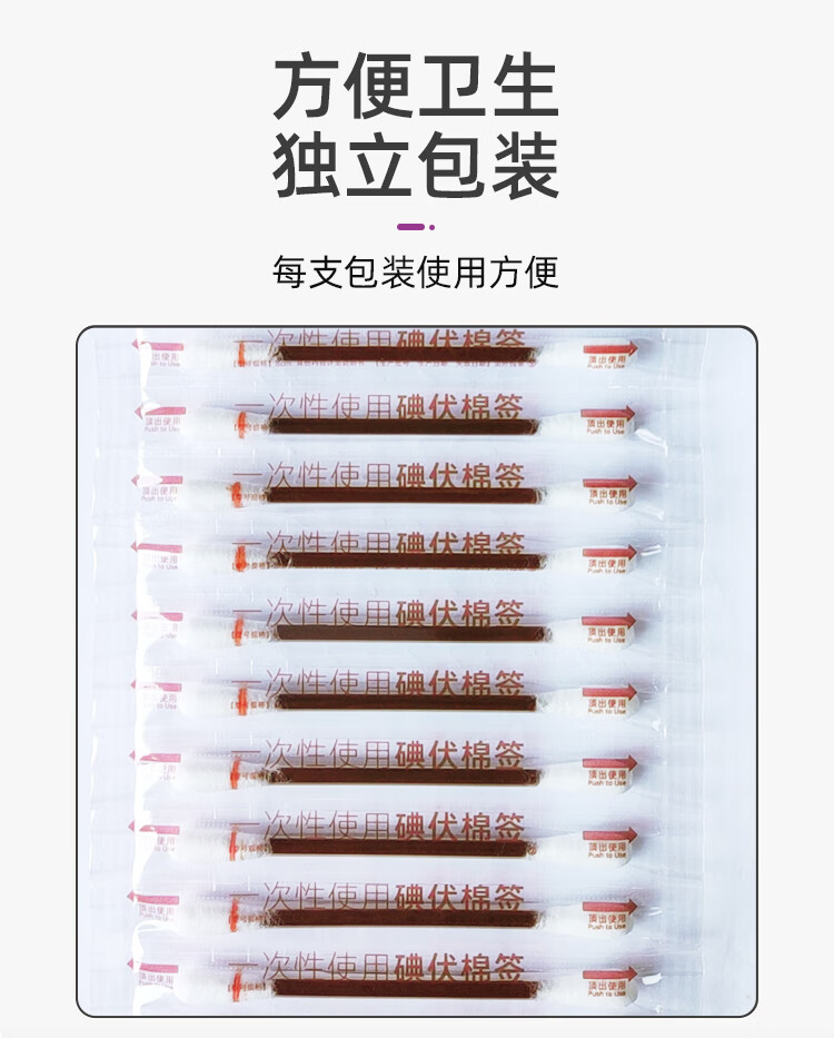 医用碘伏棉签新生婴儿肚脐带护理皮肤伤口杀菌消毒液脱脂棉棒棉签 【100支】家中常备
