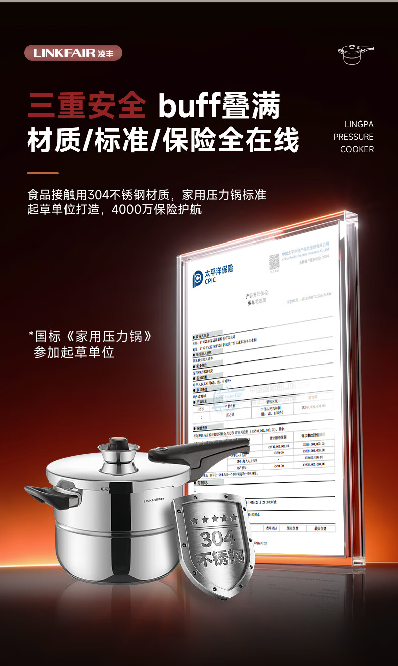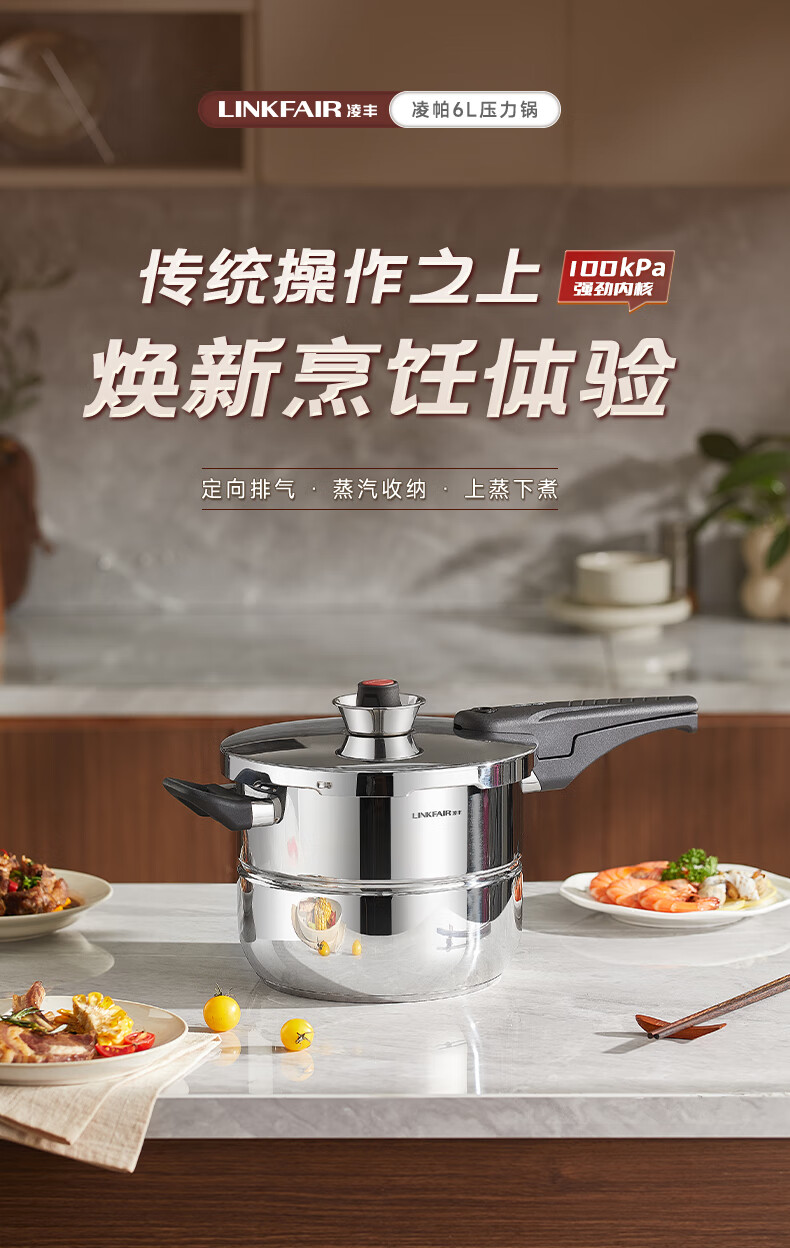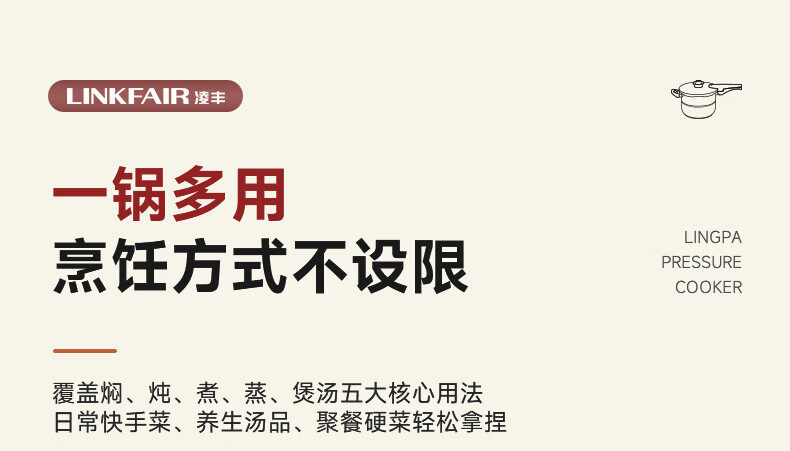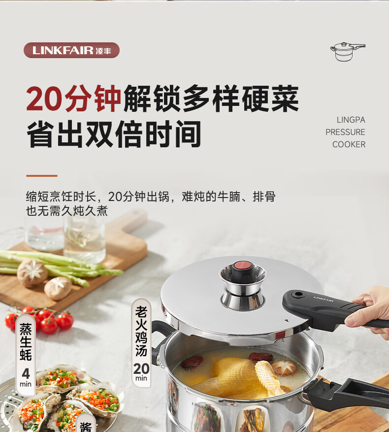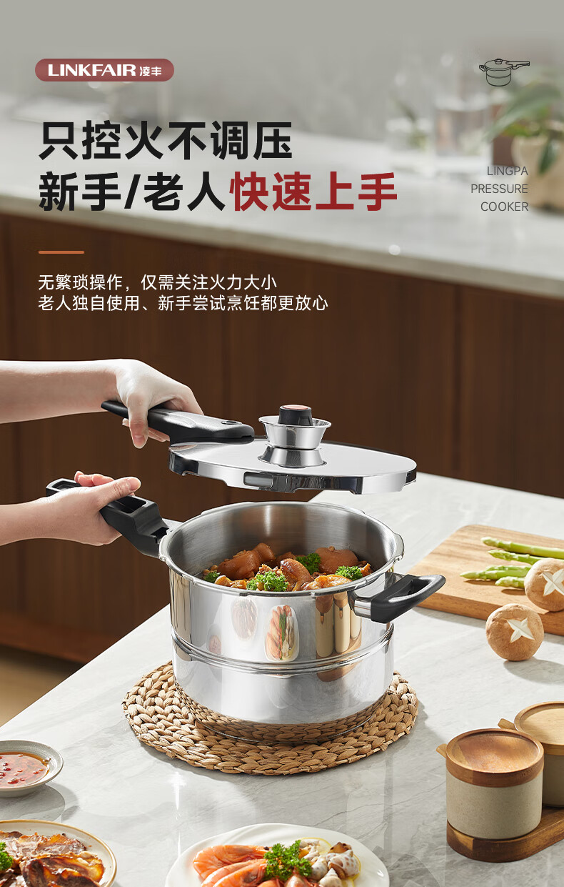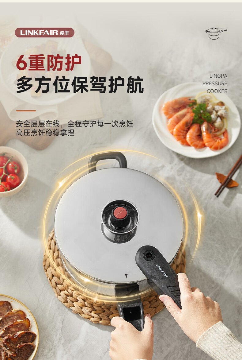 凌丰(LINKFAIR)高压锅家用304不锈钢防爆6L压力锅燃气电磁炉通用【京东限定】