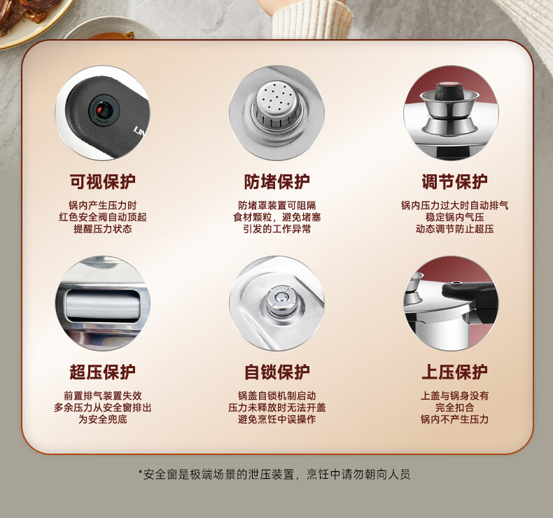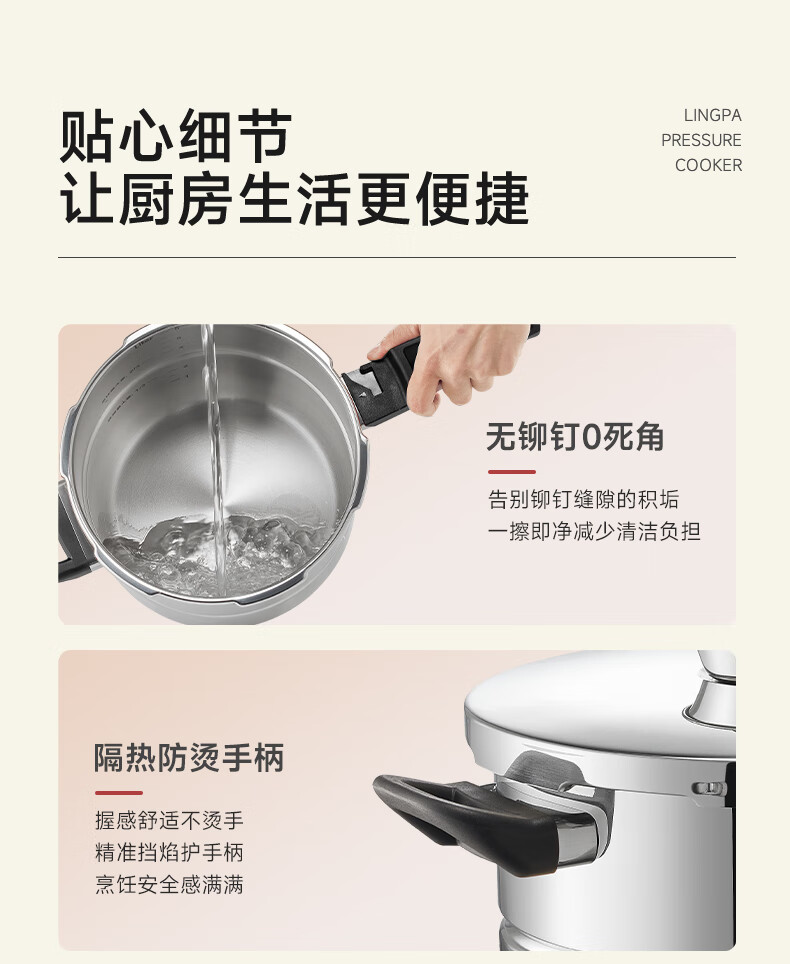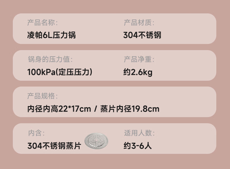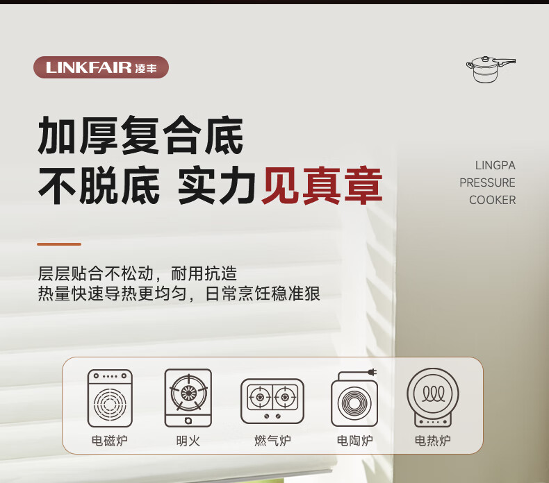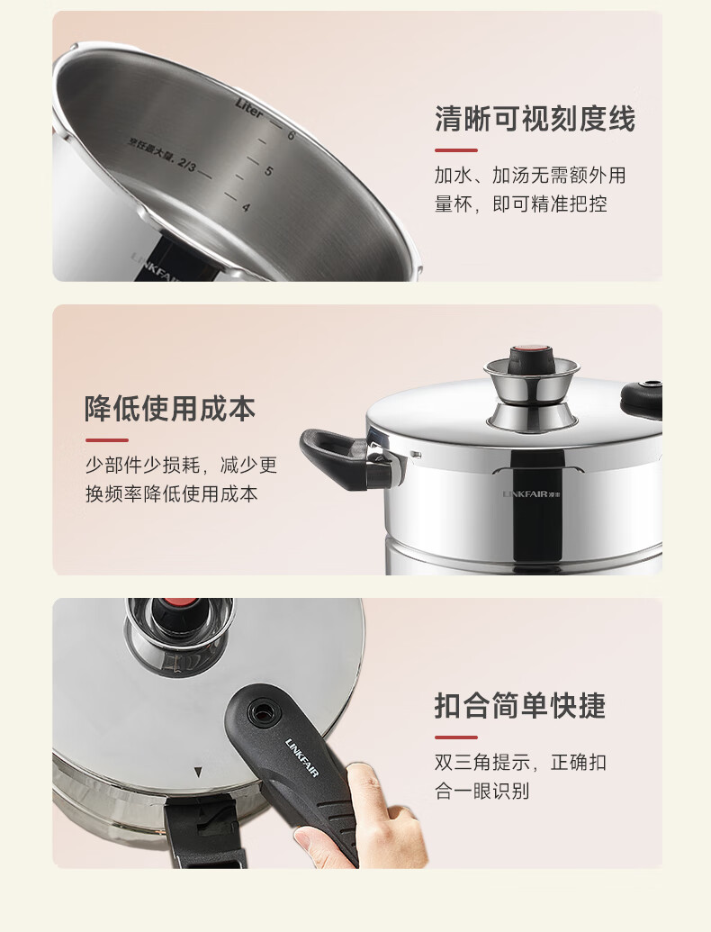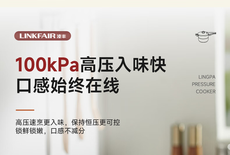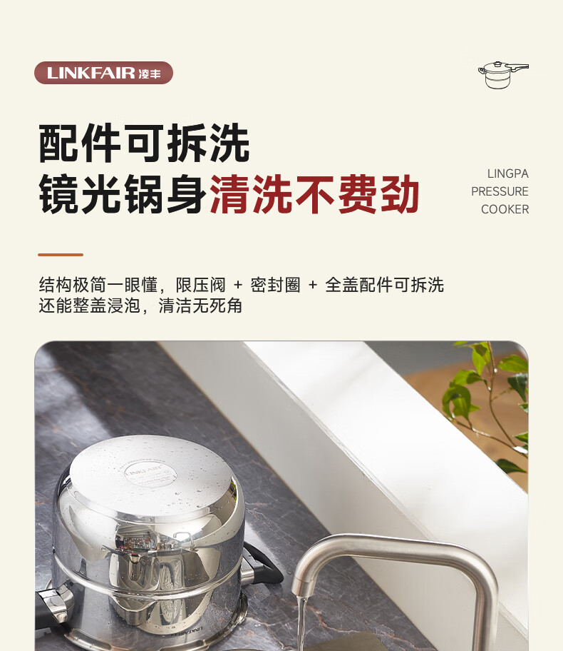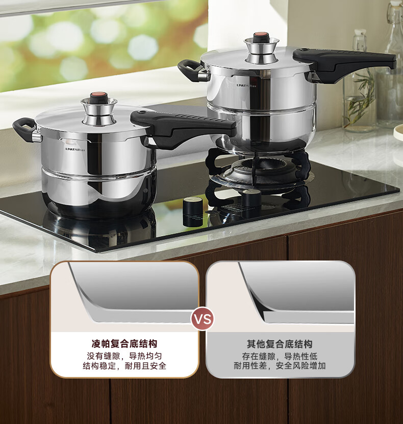 凌丰(LINKFAIR)高压锅家用304不锈钢防爆6L压力锅燃气电磁炉通用【京东限定】
