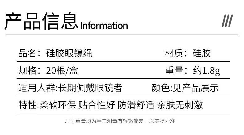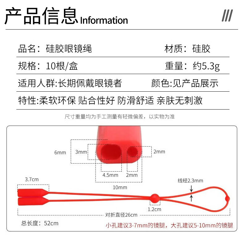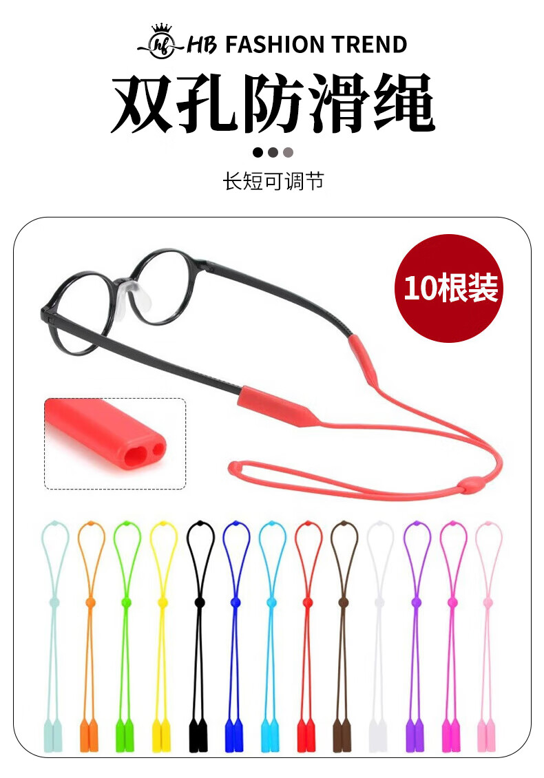 HB硅胶圆头眼镜绳*10根 运动眼镜固定防滑防掉绑带绳子儿童成人眼镜