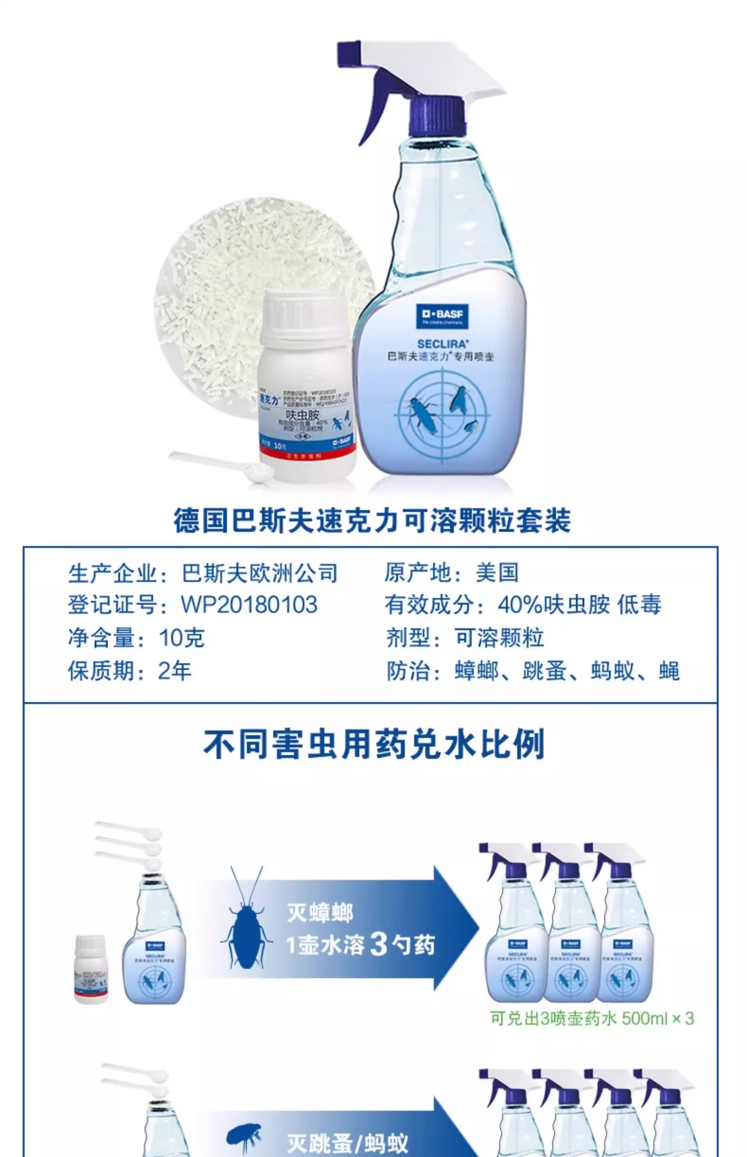 巴斯夫(BASF)杀虫剂蟑螂药虫卵双杀蟑螂喷雾呋虫胺跳蚤蚂蚁药驱虫速克力10g