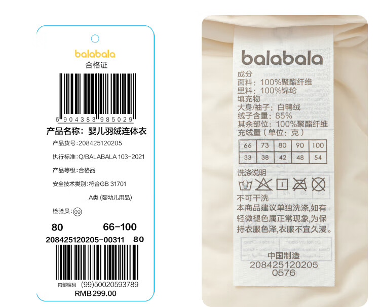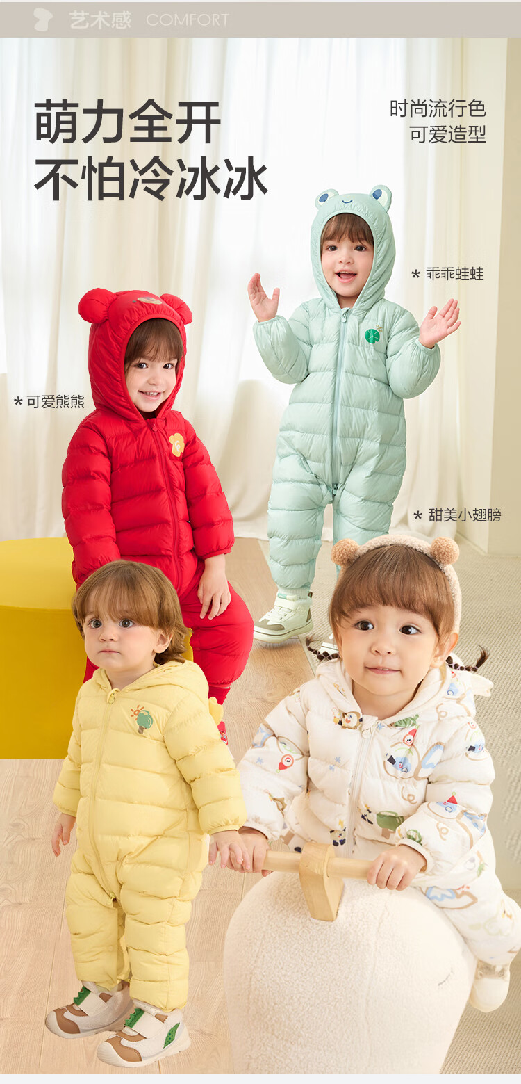 巴拉巴拉童装婴儿羽绒服宝宝轻薄连体衣抱衣爬服儿童冬装男童女童可爱萌趣