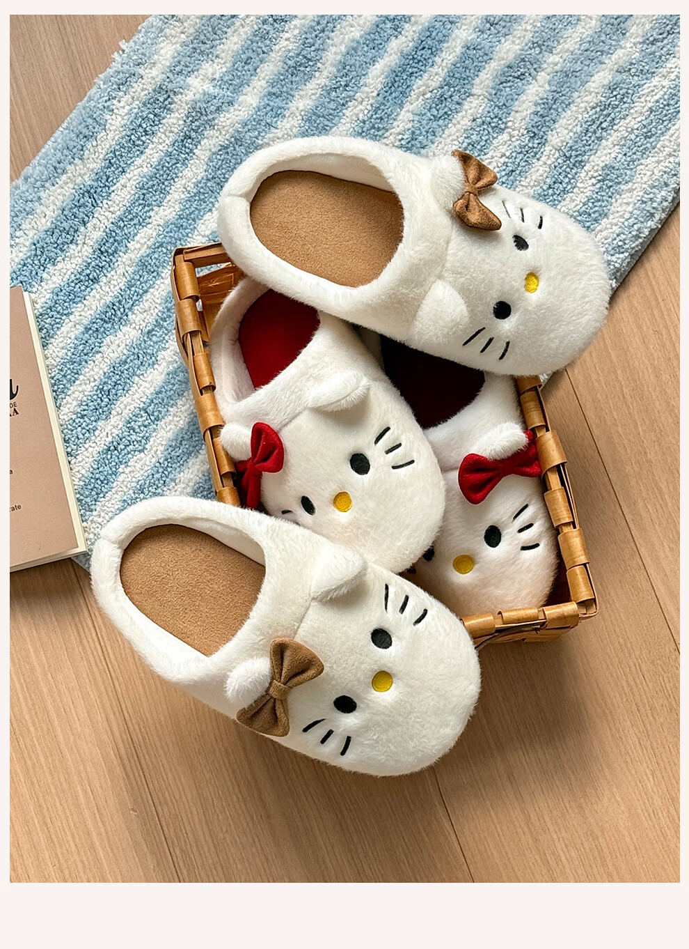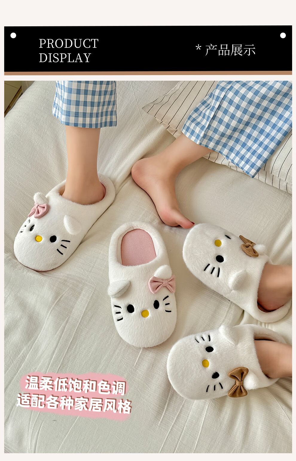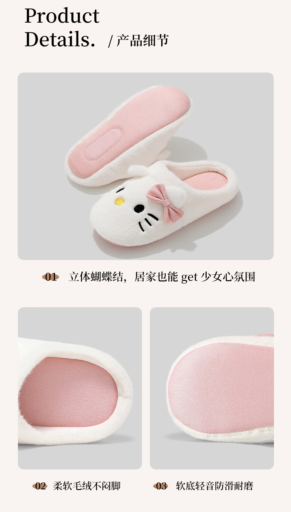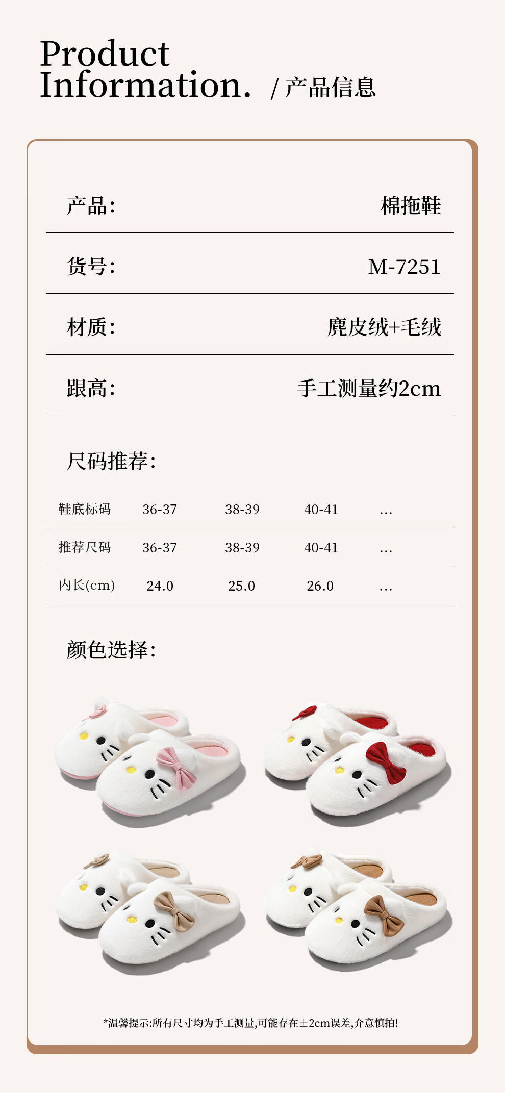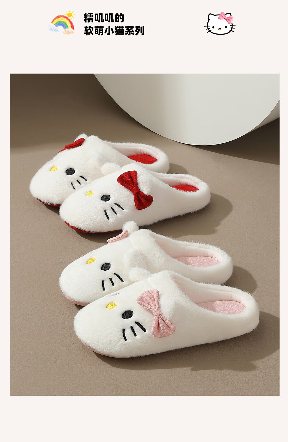 FZTHelloKitty猫棉拖鞋女士秋冬季2025新款可爱包跟毛绒保暖月子棉鞋 红色 36-37 标准码