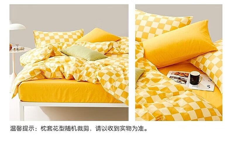 百丽丝出品三四件套纯棉套件简约宿舍家用床上四件套纯棉被套 山杨黄 床单款 (被套150*210cm)