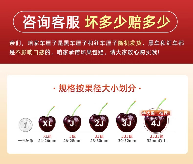 桦萱智利车厘子4J级【顺丰JD多地次日达】5kg进口樱桃桑提娜水果礼盒 5斤(净重) 礼箱装【蕞划算】 【黑钻级|爽吃满足】3J 巨无霸 30-32mm