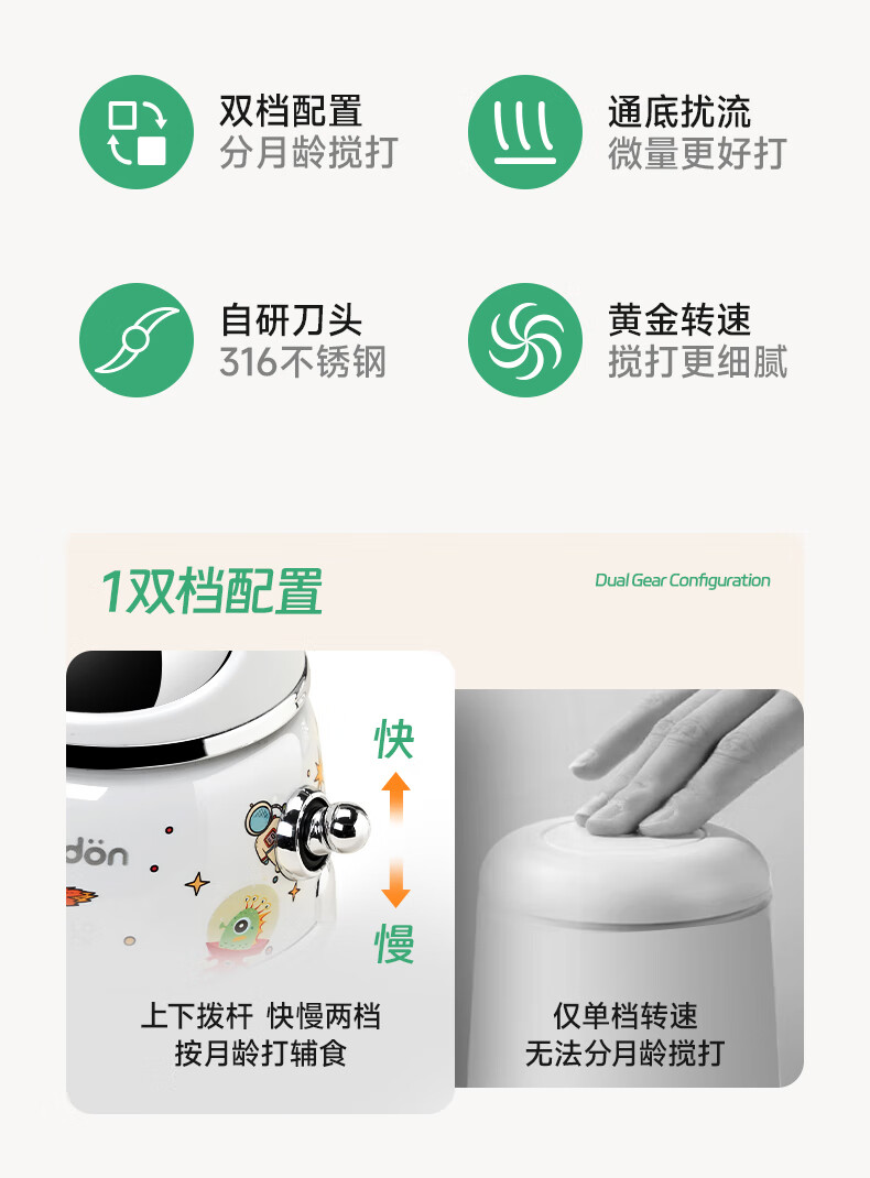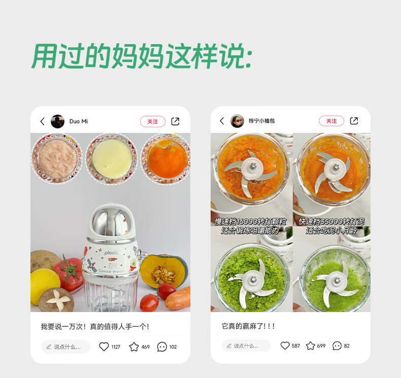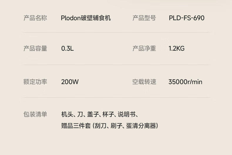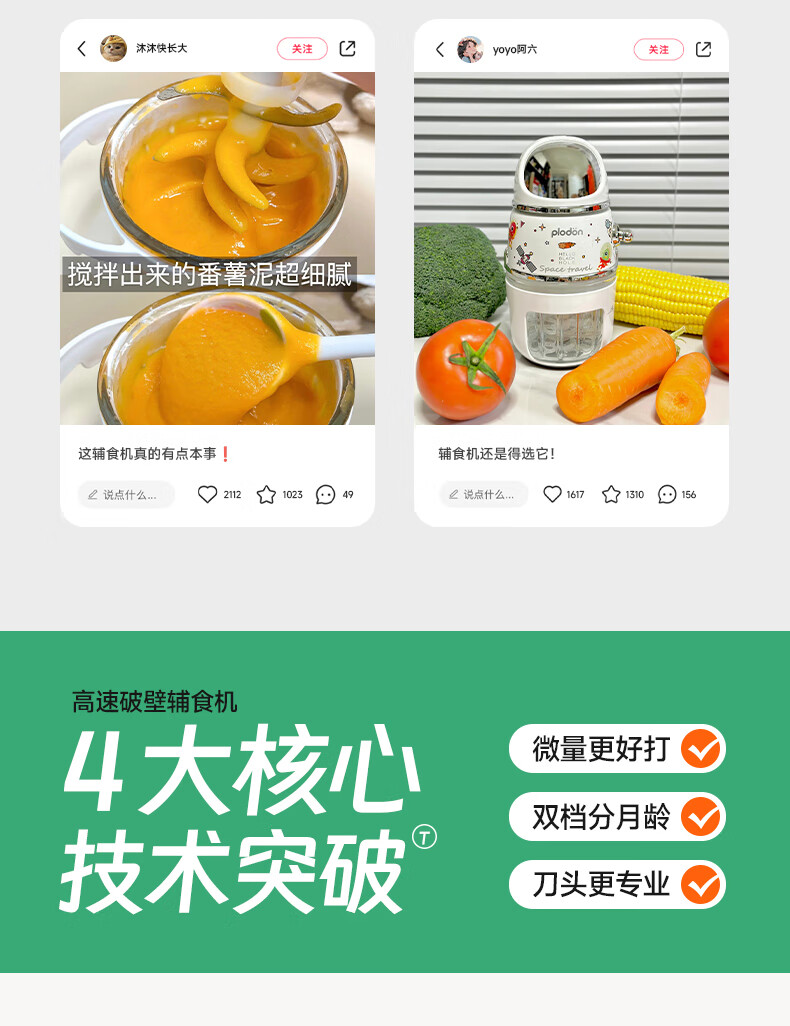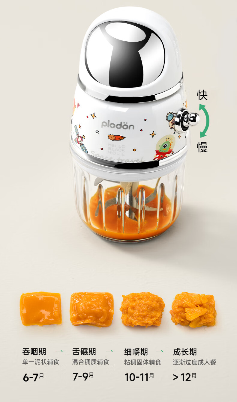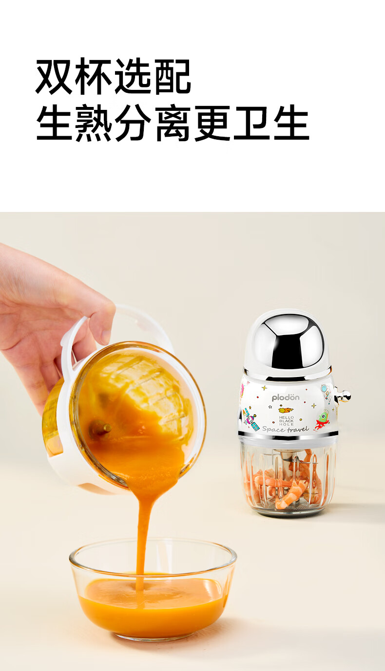 浦利顿(PLODON)辅食料理机婴儿打泥机宝宝多功能小型料理机 搅拌机 双杯生熟分杯