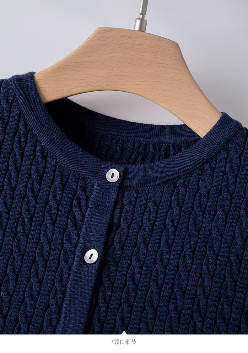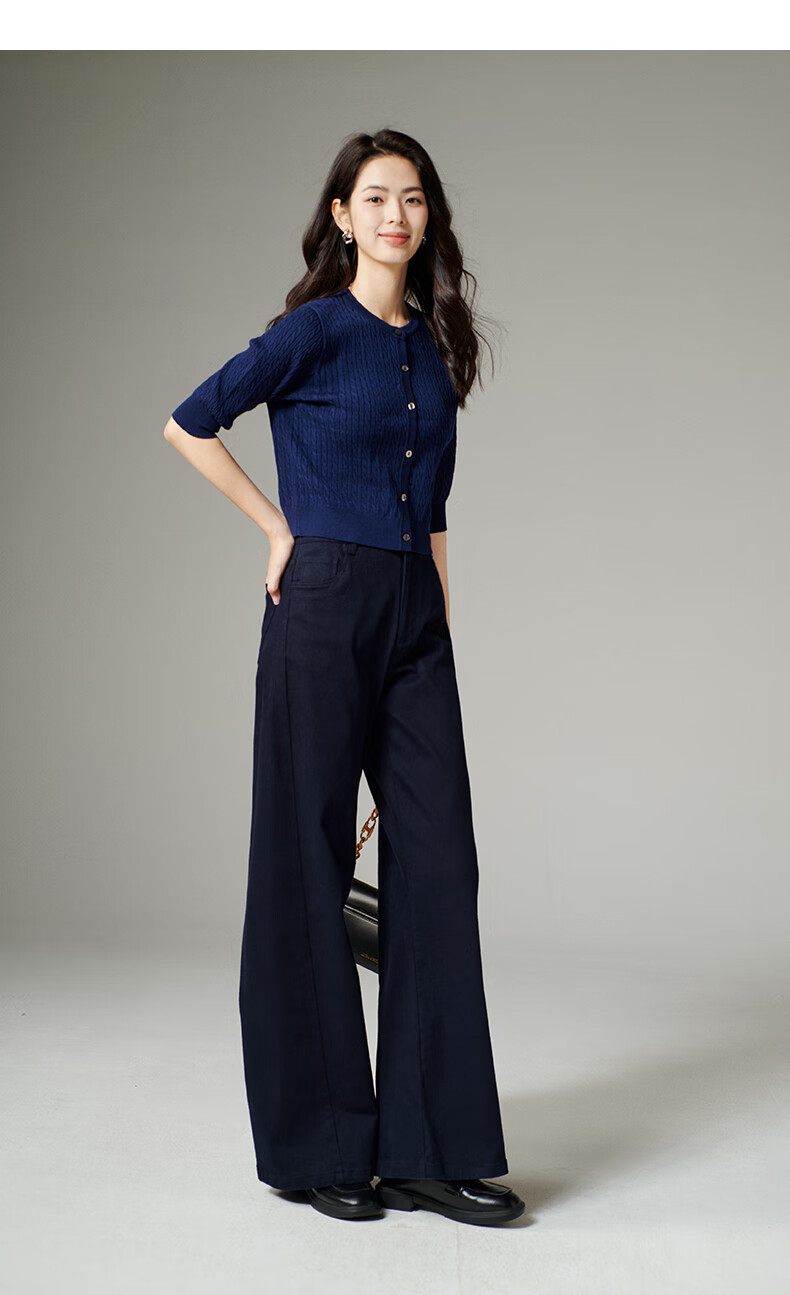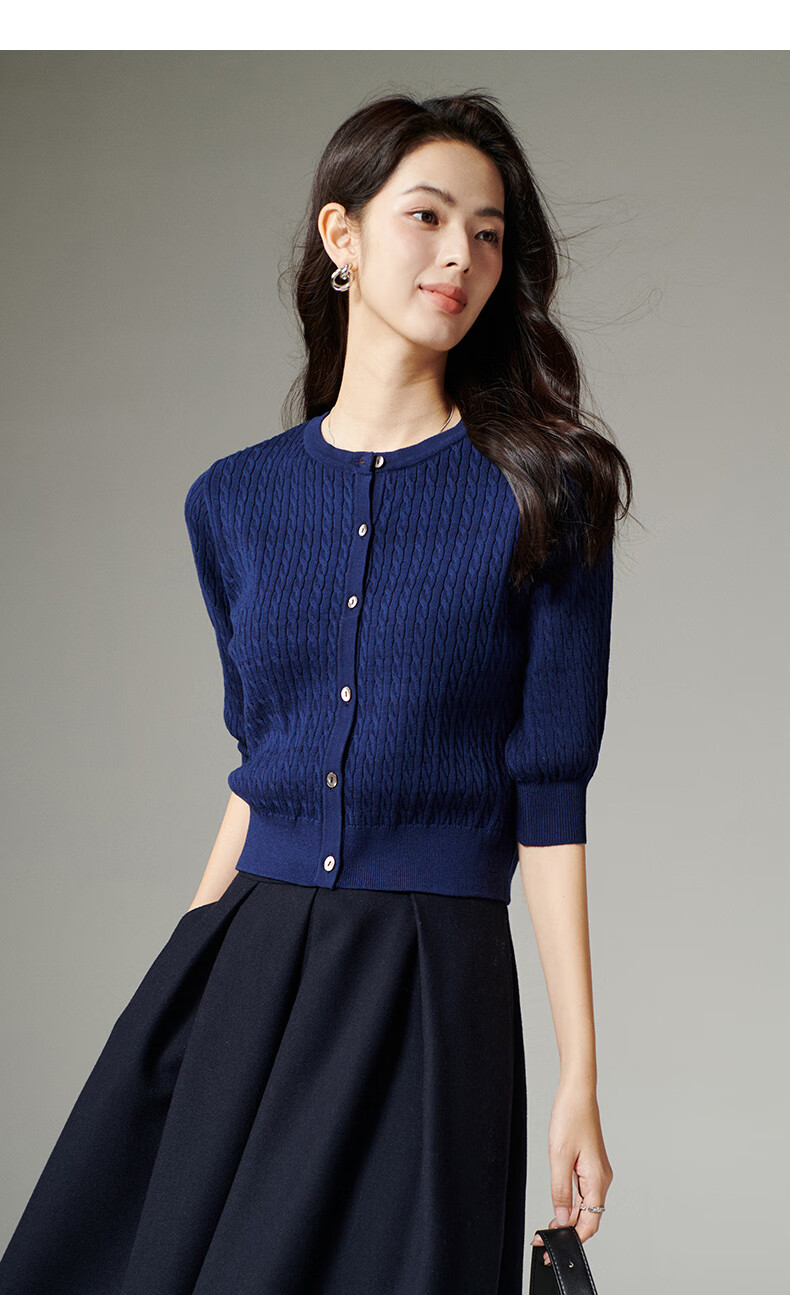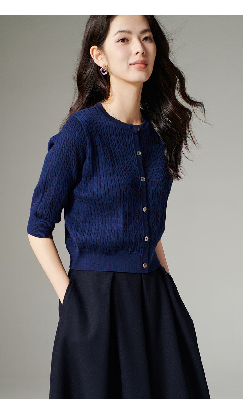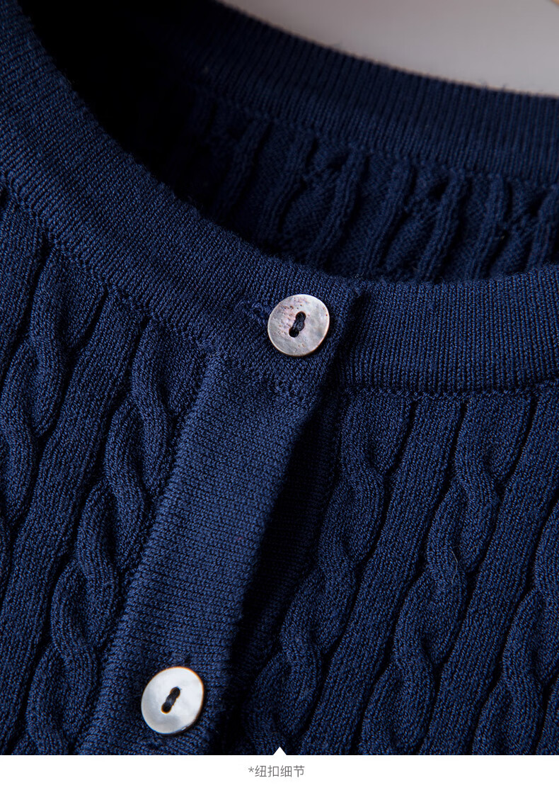 晚白【断码清仓】通勤圆领莱赛尔高级感上衣高弹亲肤宽松针织开衫女 深蓝色 M