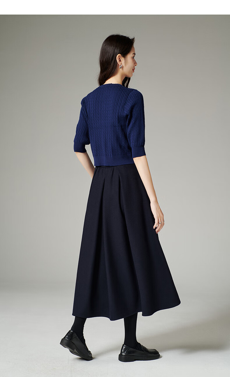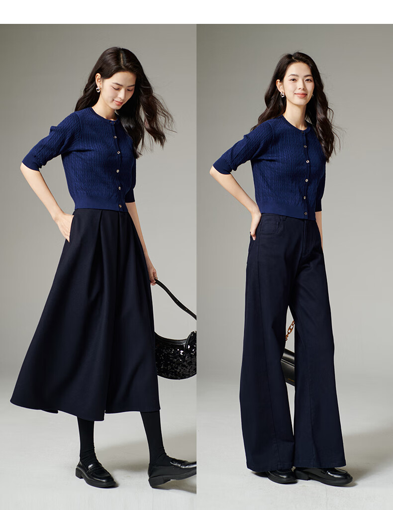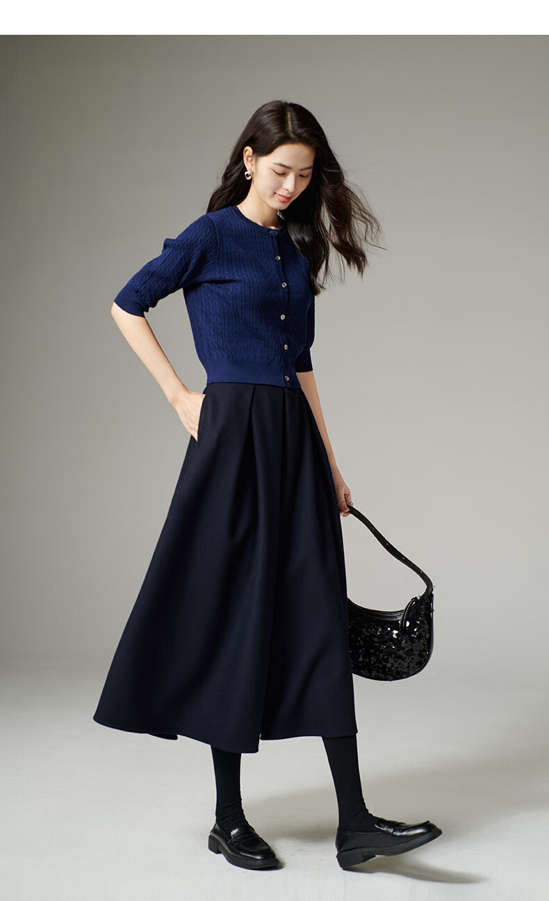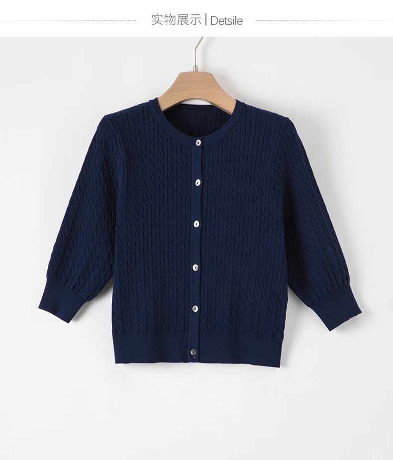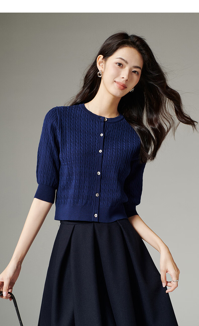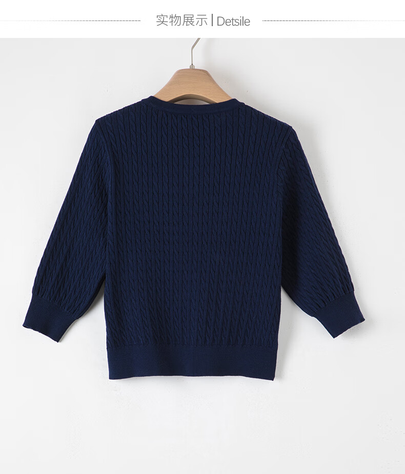 晚白【断码清仓】通勤圆领莱赛尔高级感上衣高弹亲肤宽松针织开衫女 深蓝色 M