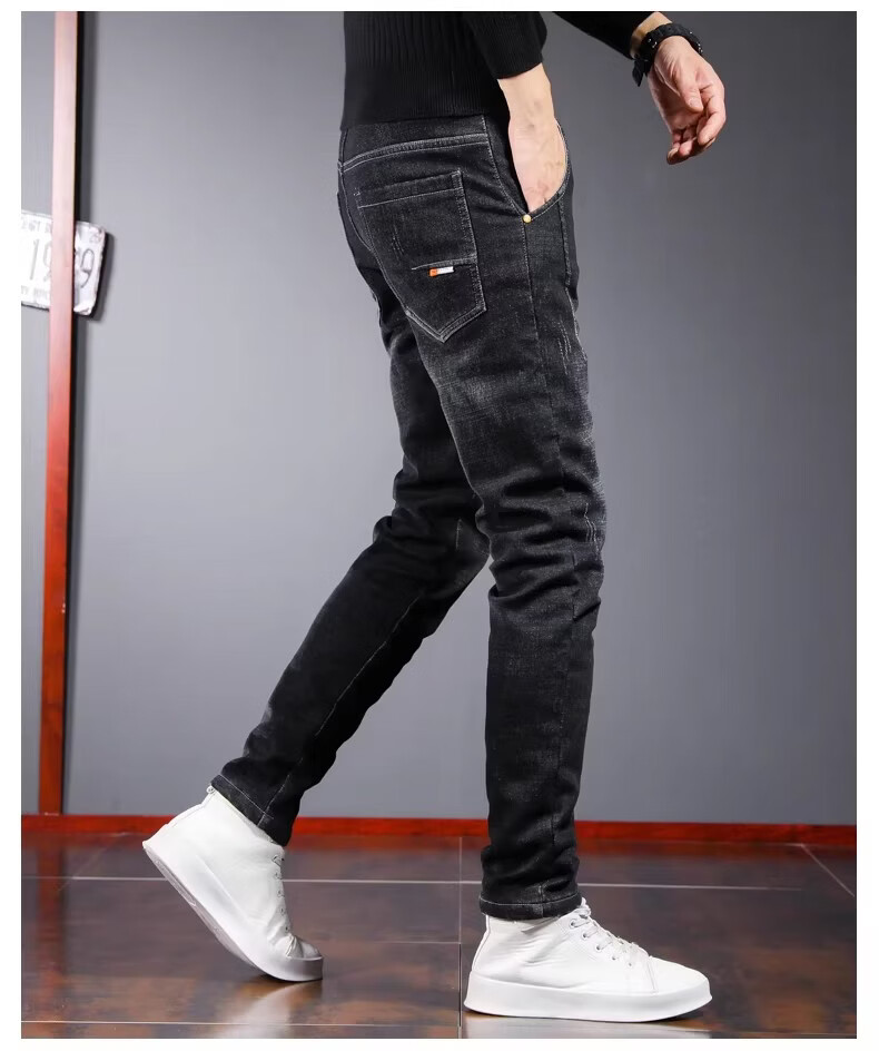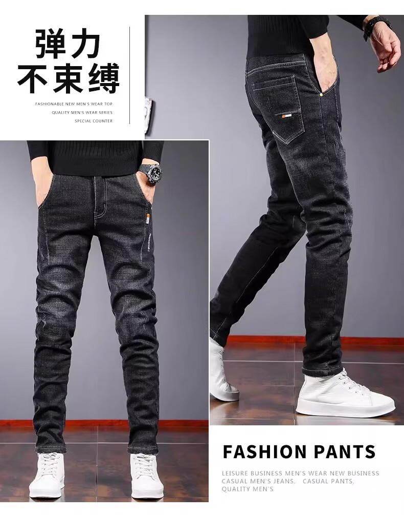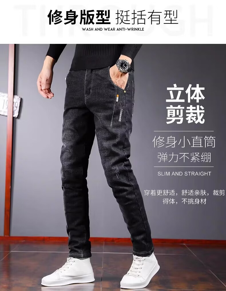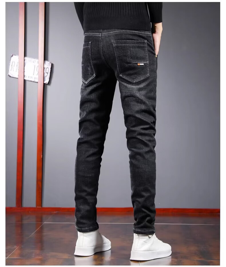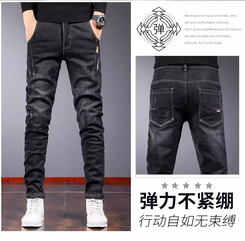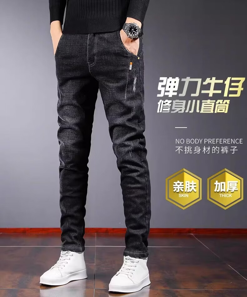 真维斯百搭显高牛仔裤男士修身小脚裤秋季弹力直筒休闲长裤子男潮牌复古 黑色 28