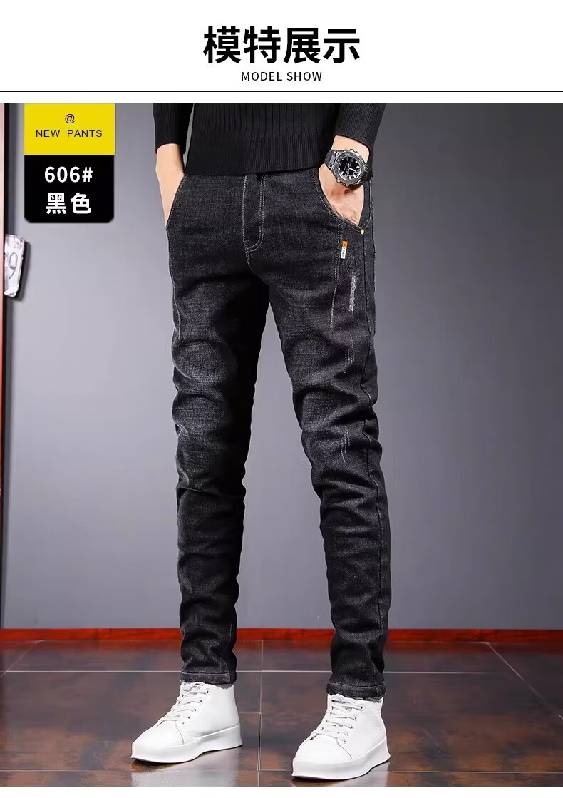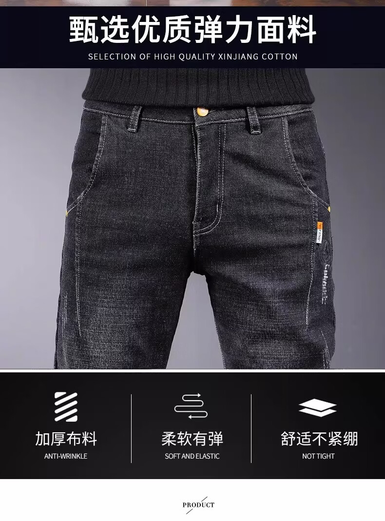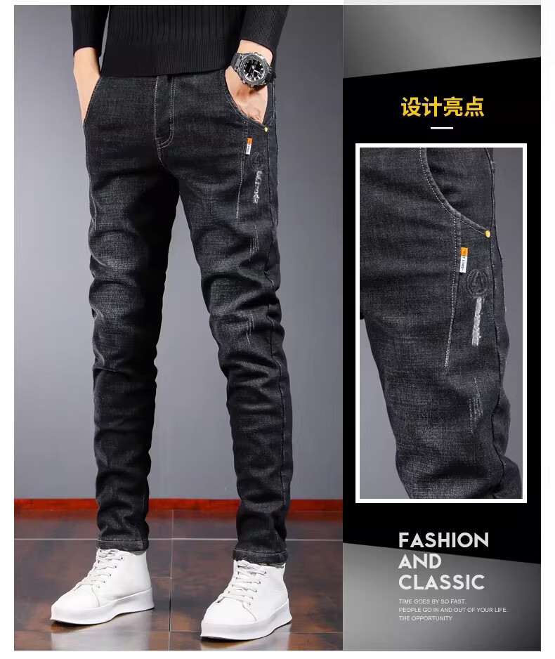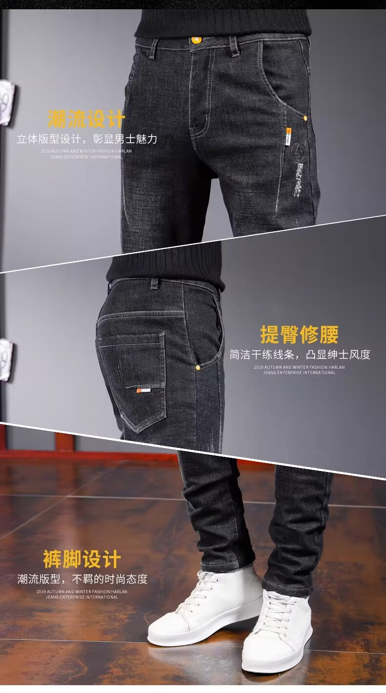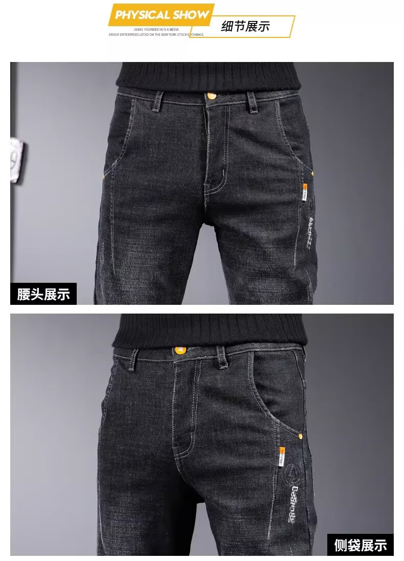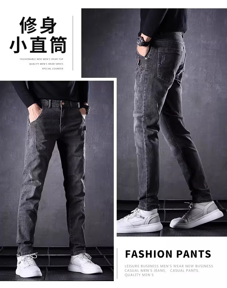 真维斯百搭显高牛仔裤男士修身小脚裤秋季弹力直筒休闲长裤子男潮牌复古 黑色 28