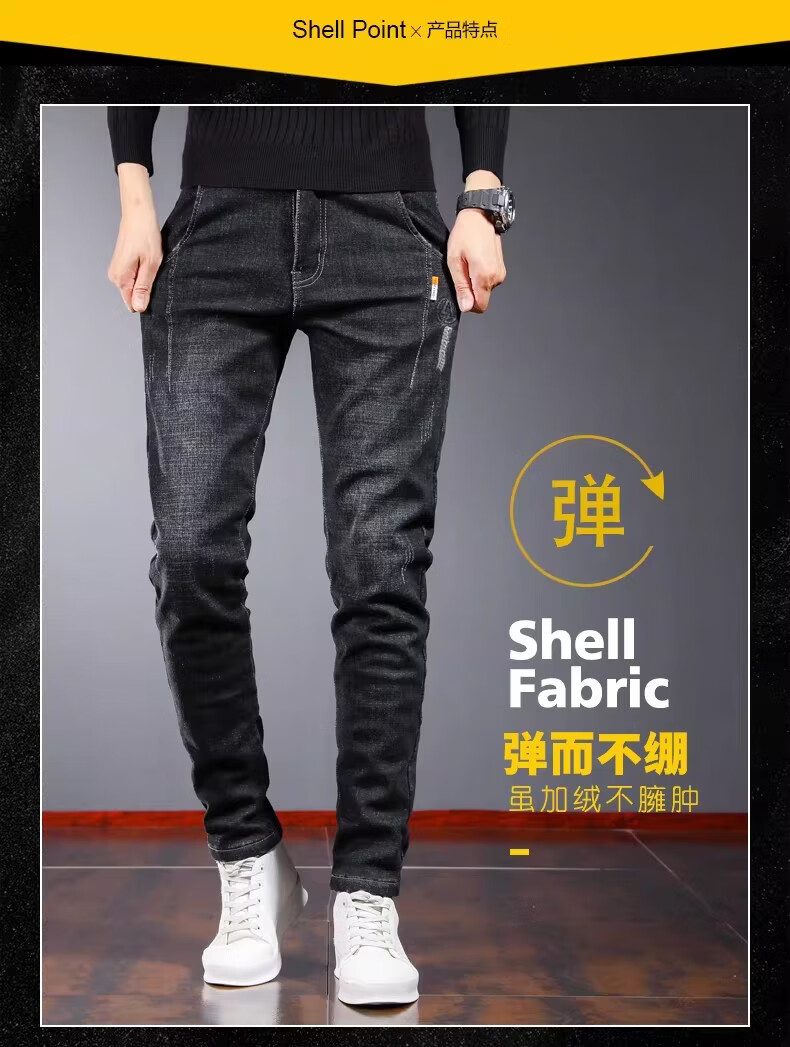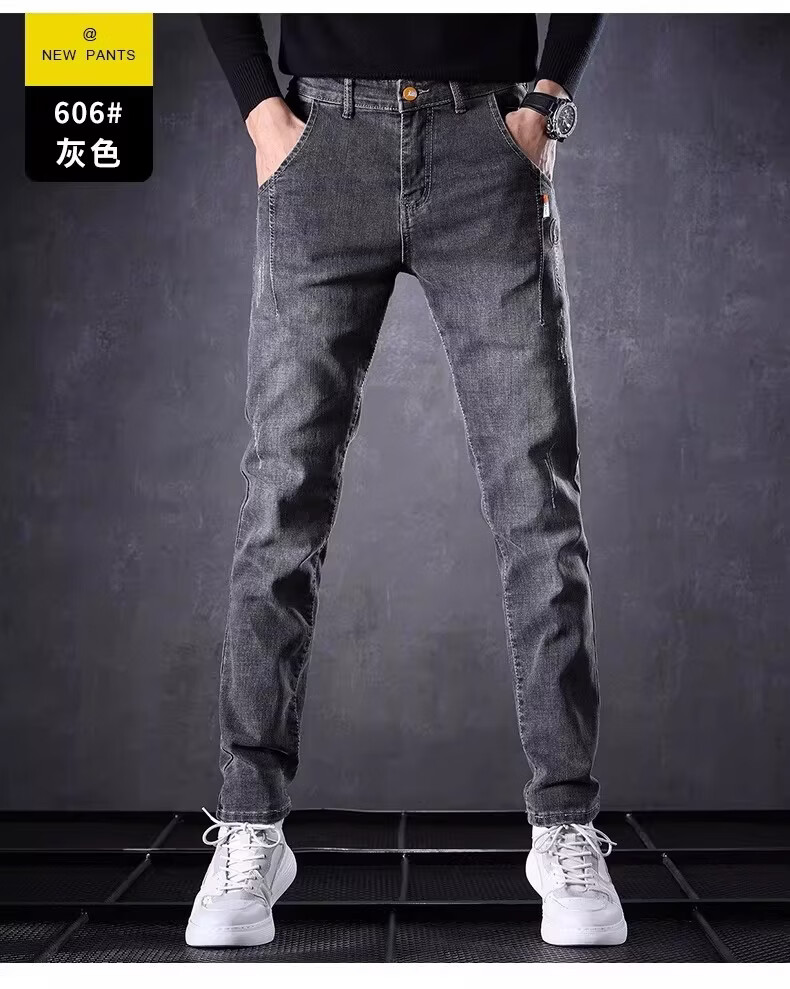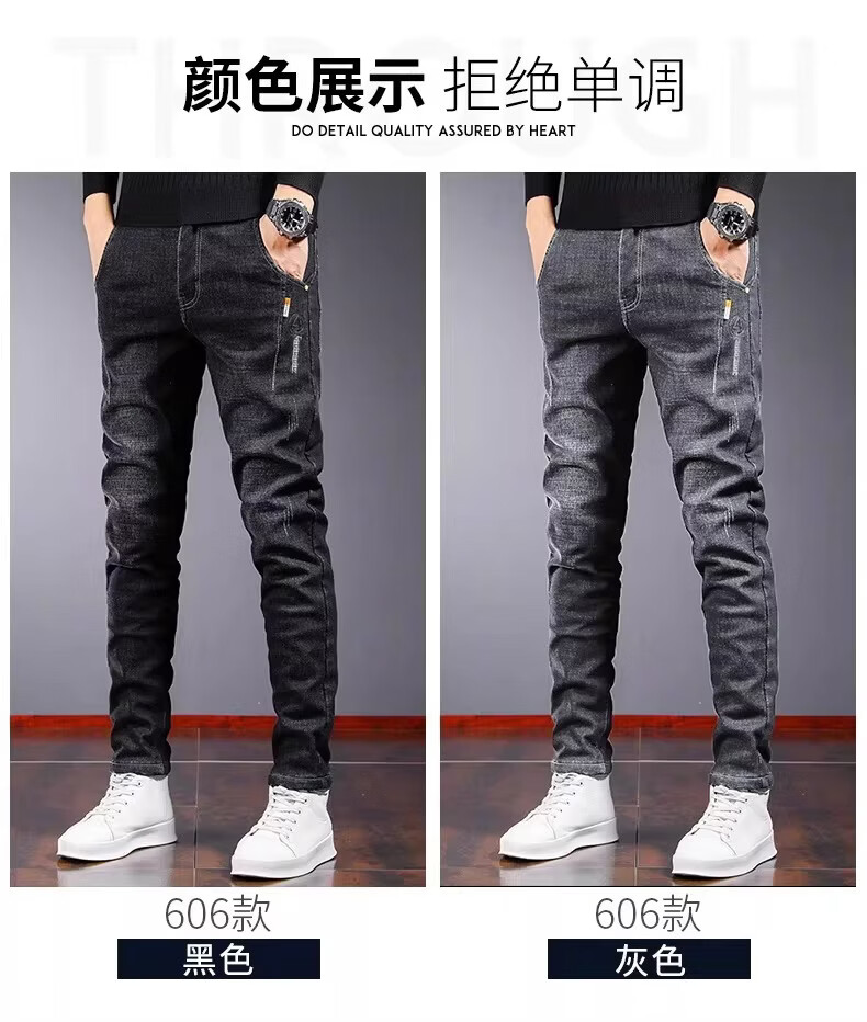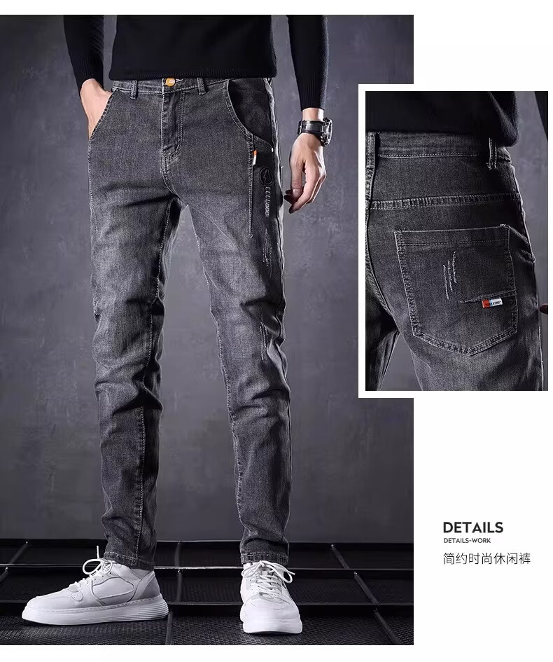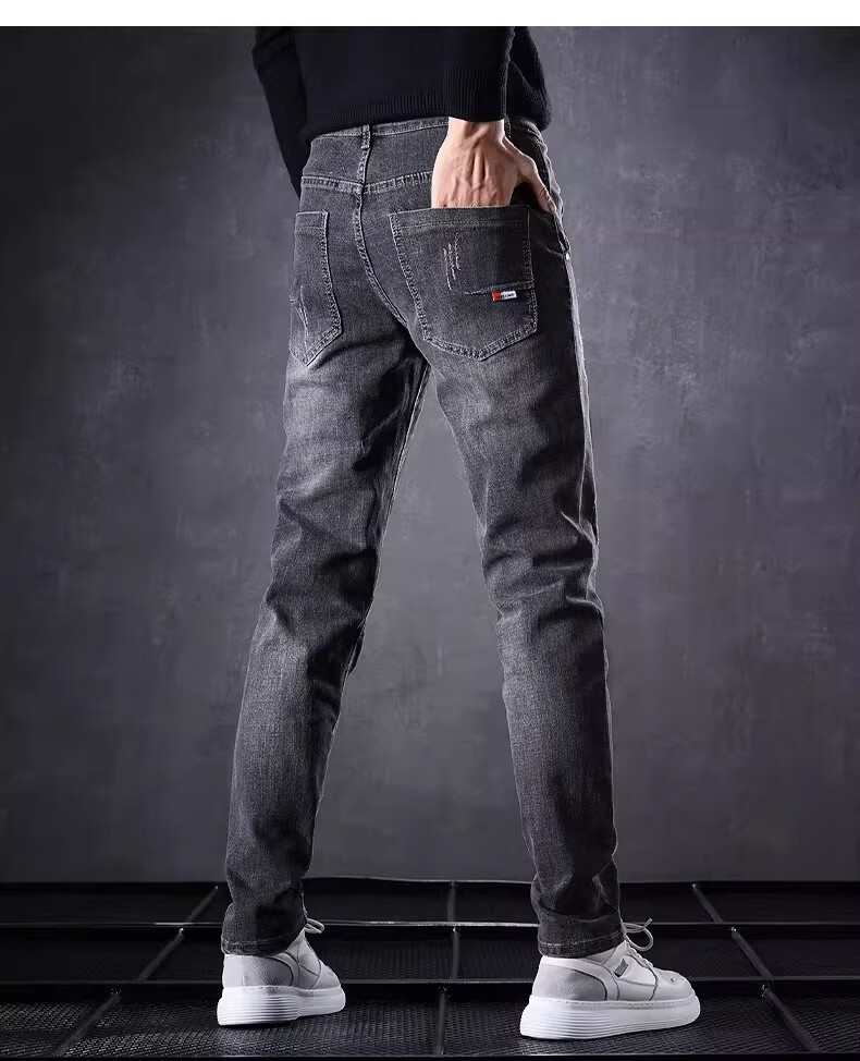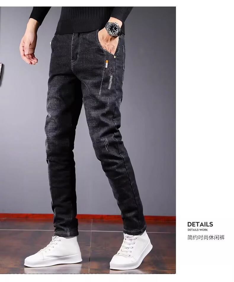 真维斯百搭显高牛仔裤男士修身小脚裤秋季弹力直筒休闲长裤子男潮牌复古 黑色 28