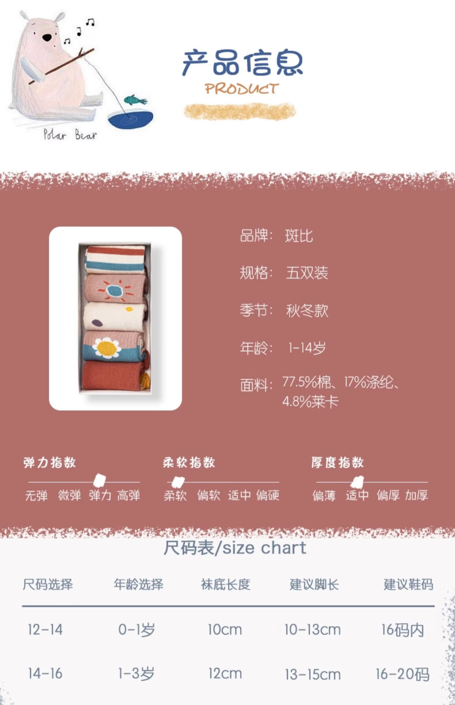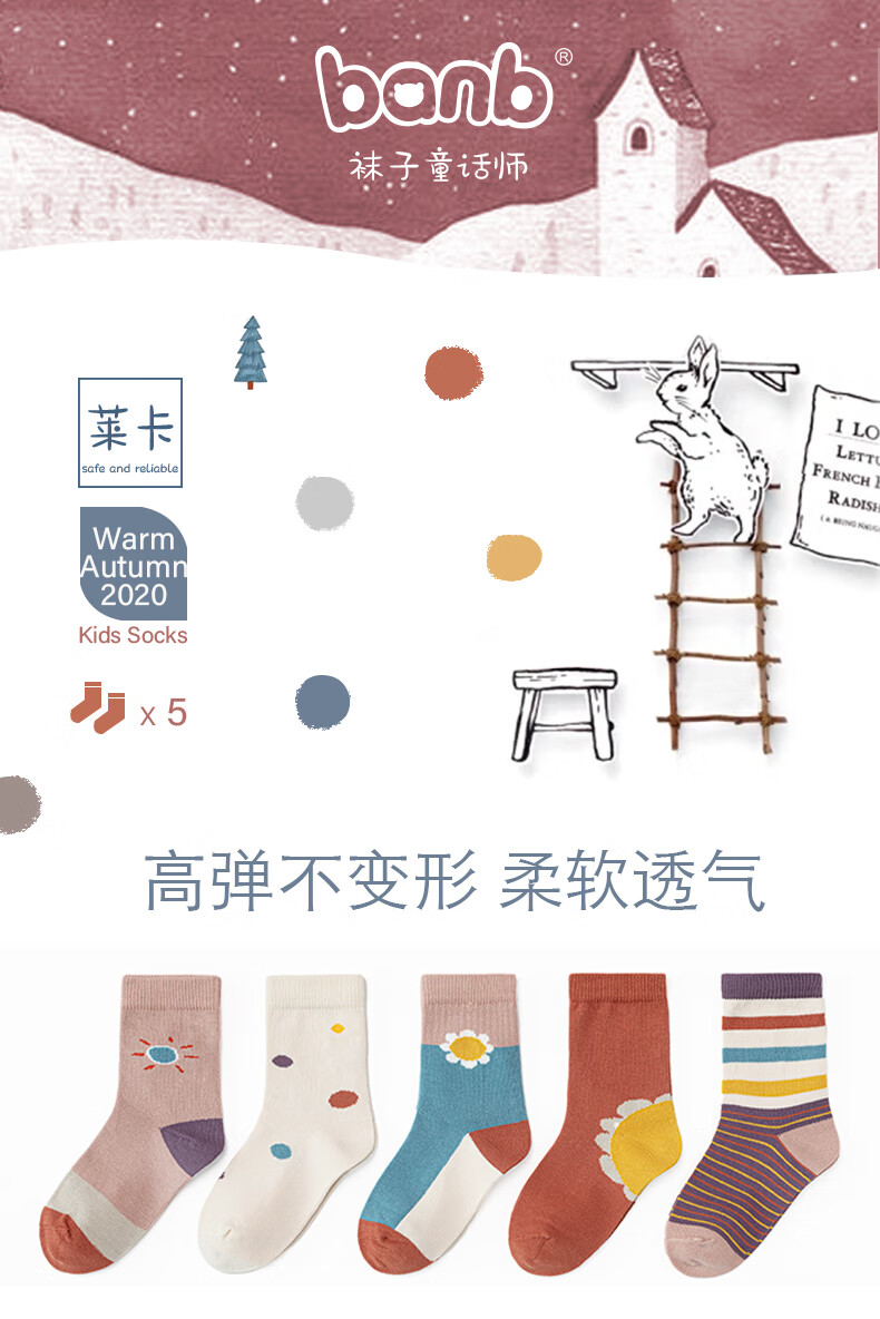斑比童袜儿童袜子秋冬季棉袜1-2岁女宝宝春秋款无骨中筒袜 BB2058 秋冬款儿童袜子 5双 1-2岁 建议脚码16码以内【12-14】