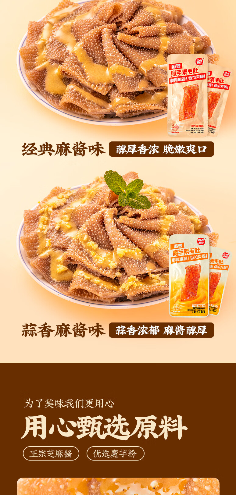 石牌磨房麻酱毛肚素毛肚湖北特产石牌磨房魔芋爽香辣味藤椒休闲辣条办公室 【掌柜力荐】经典味麻酱毛肚*33袋(约310g)