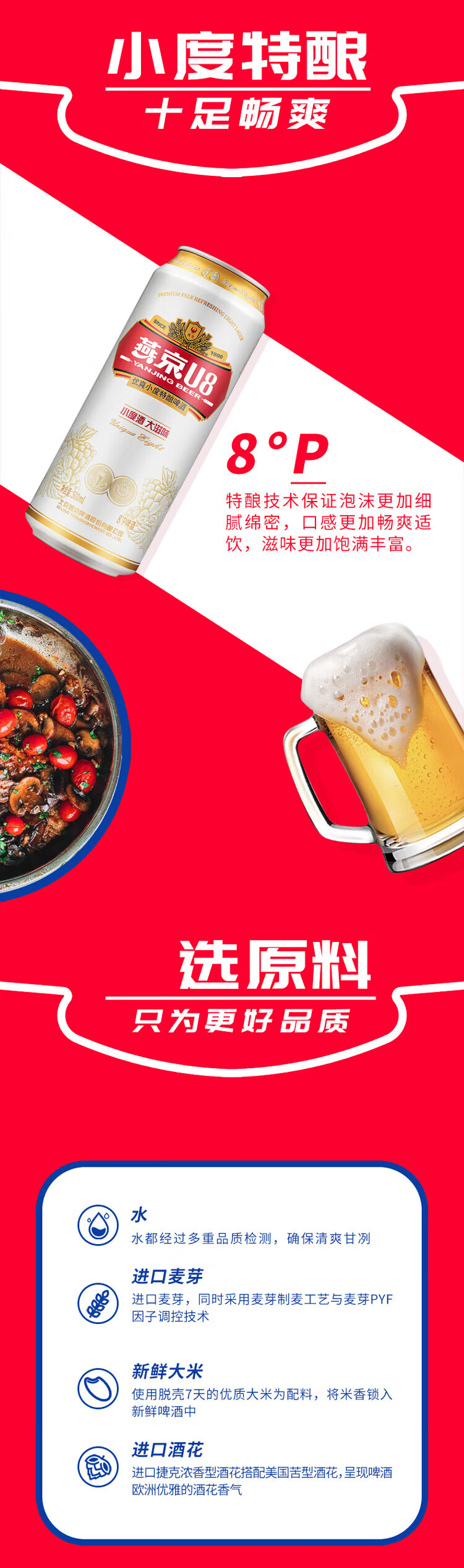 燕京【京东限定】福语罐U8小度啤酒500ml*12听 新老包装混发热卖