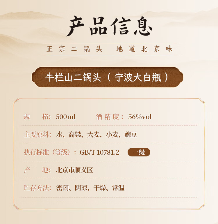 牛栏山 二锅头白酒 白牛二 口粮酒 清香型白酒 56度 500ml*1瓶 单瓶装