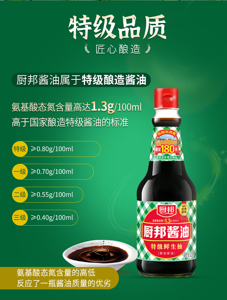厨邦 经典系列 厨邦酱油820ml【特级】 高鲜生抽 酱油 炒菜提鲜调味